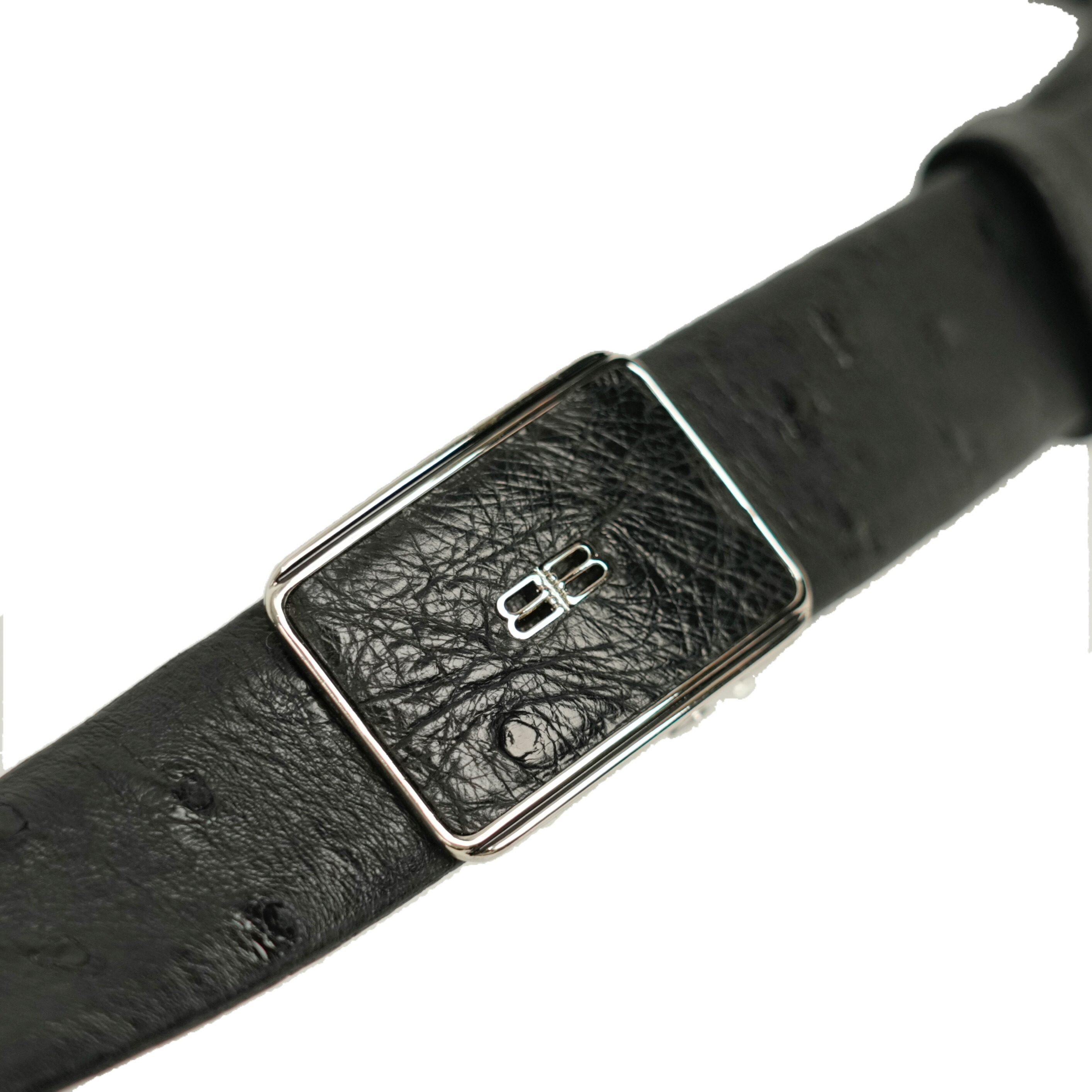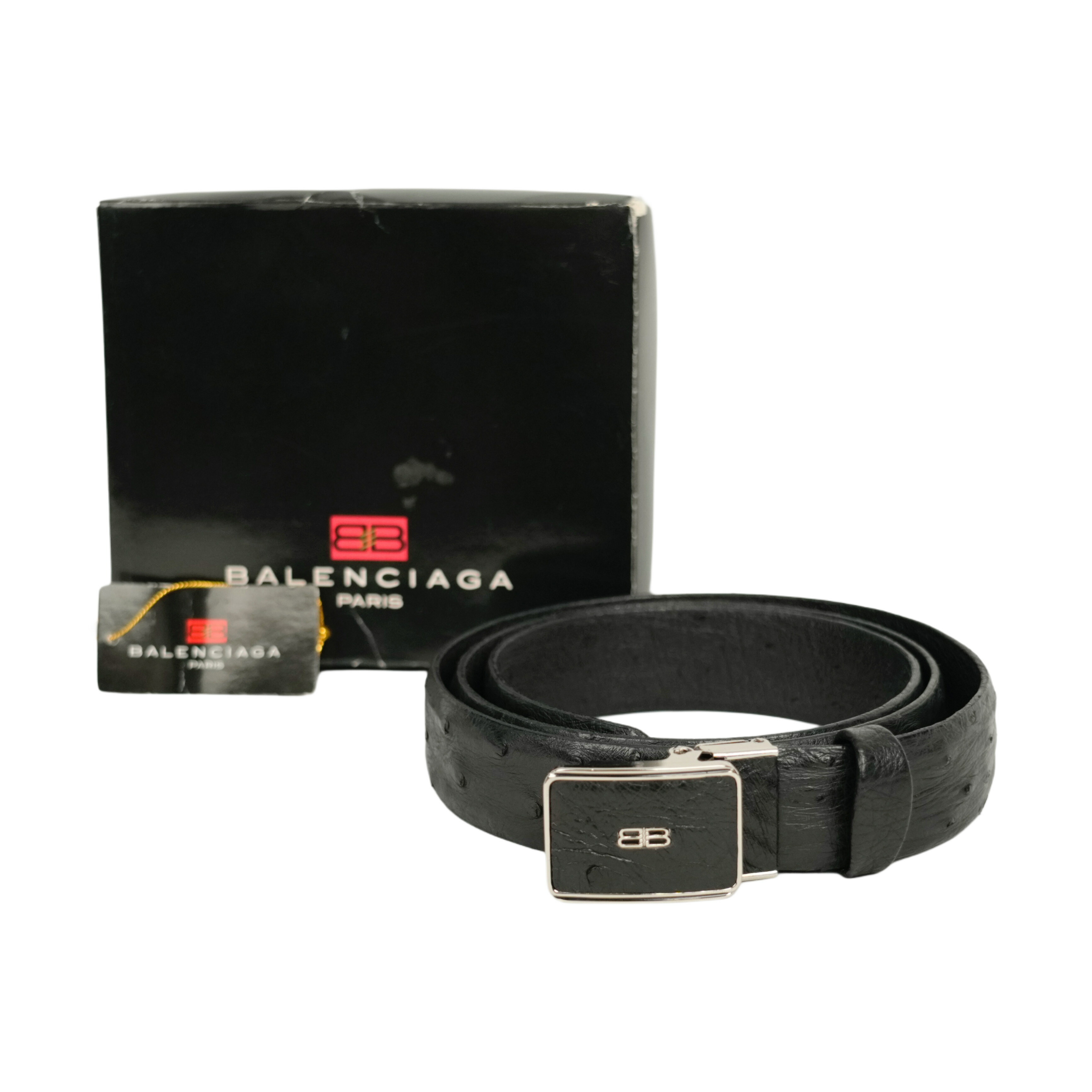 [Pre-owned/VINTAGE] BALENCIAGA Ostrich Belt in Black and Silver