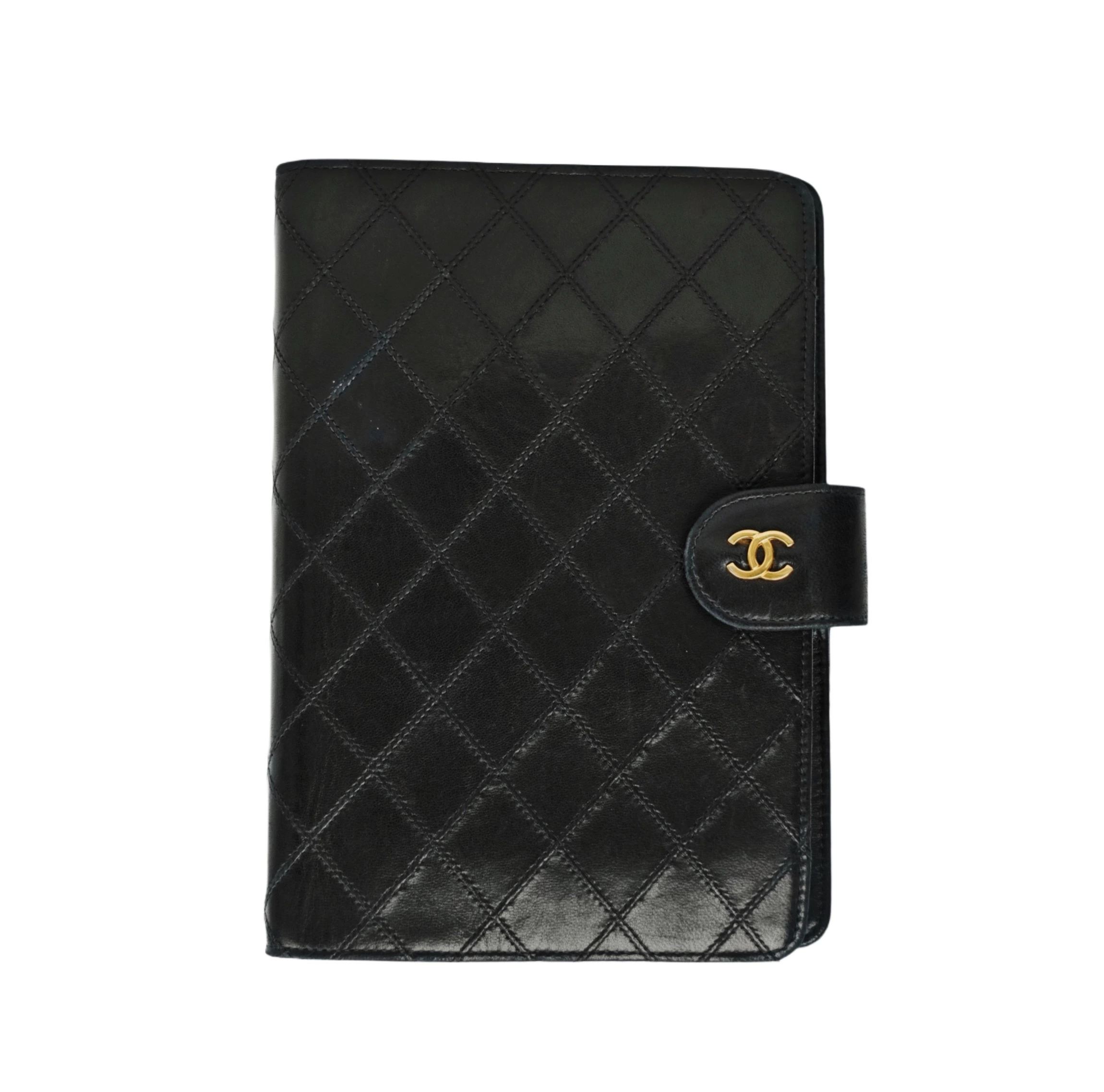 [Pre-owned/VINTAGE] CHANEL 1997-1999 Coco Mark Planner Cover, Black and Gold Leather, Vintage 1997-1999 Coco Mark Planner Cover, Other Accessories