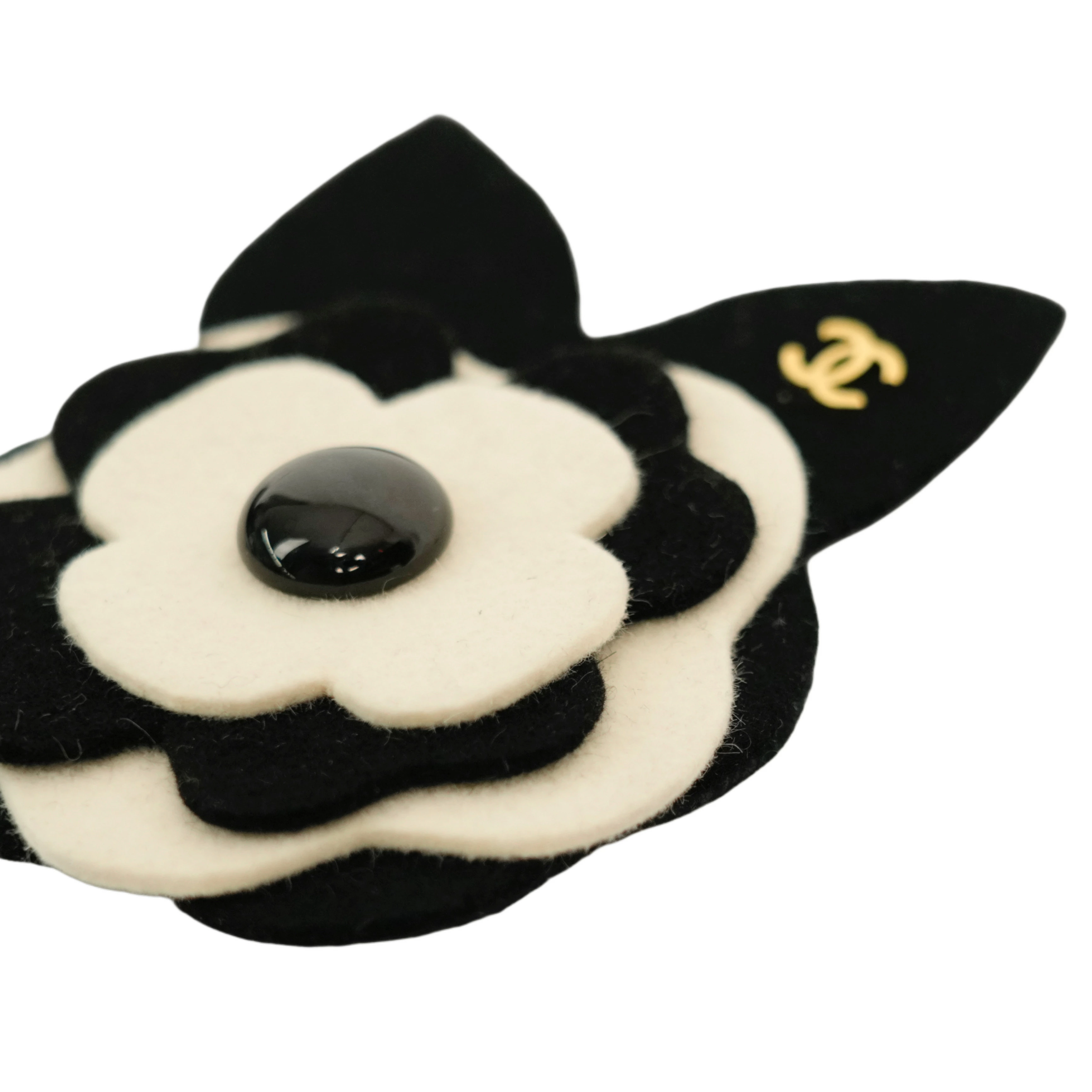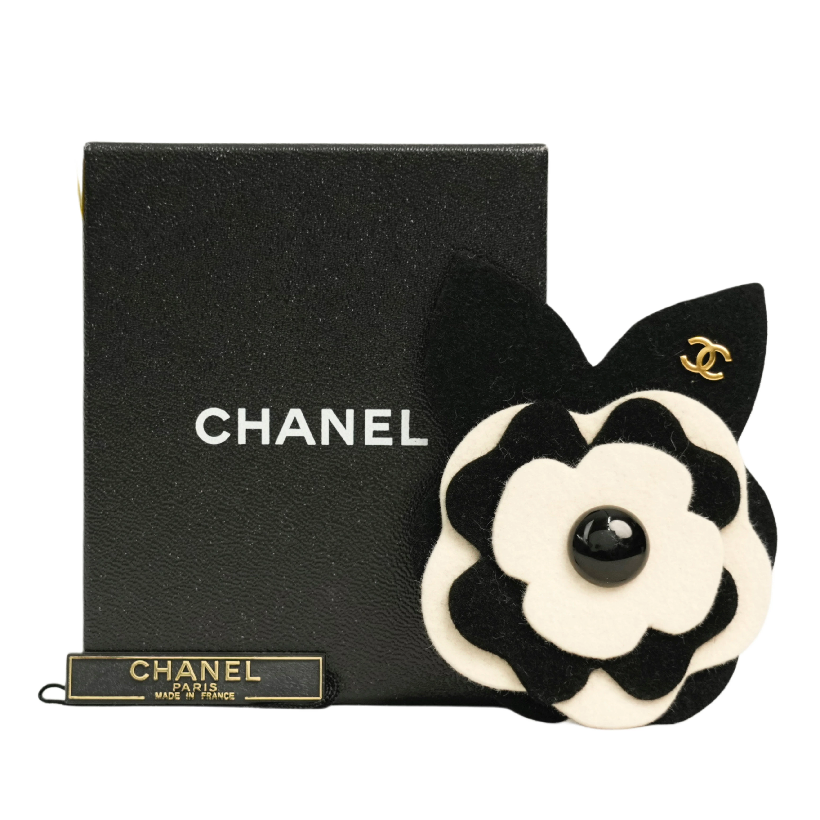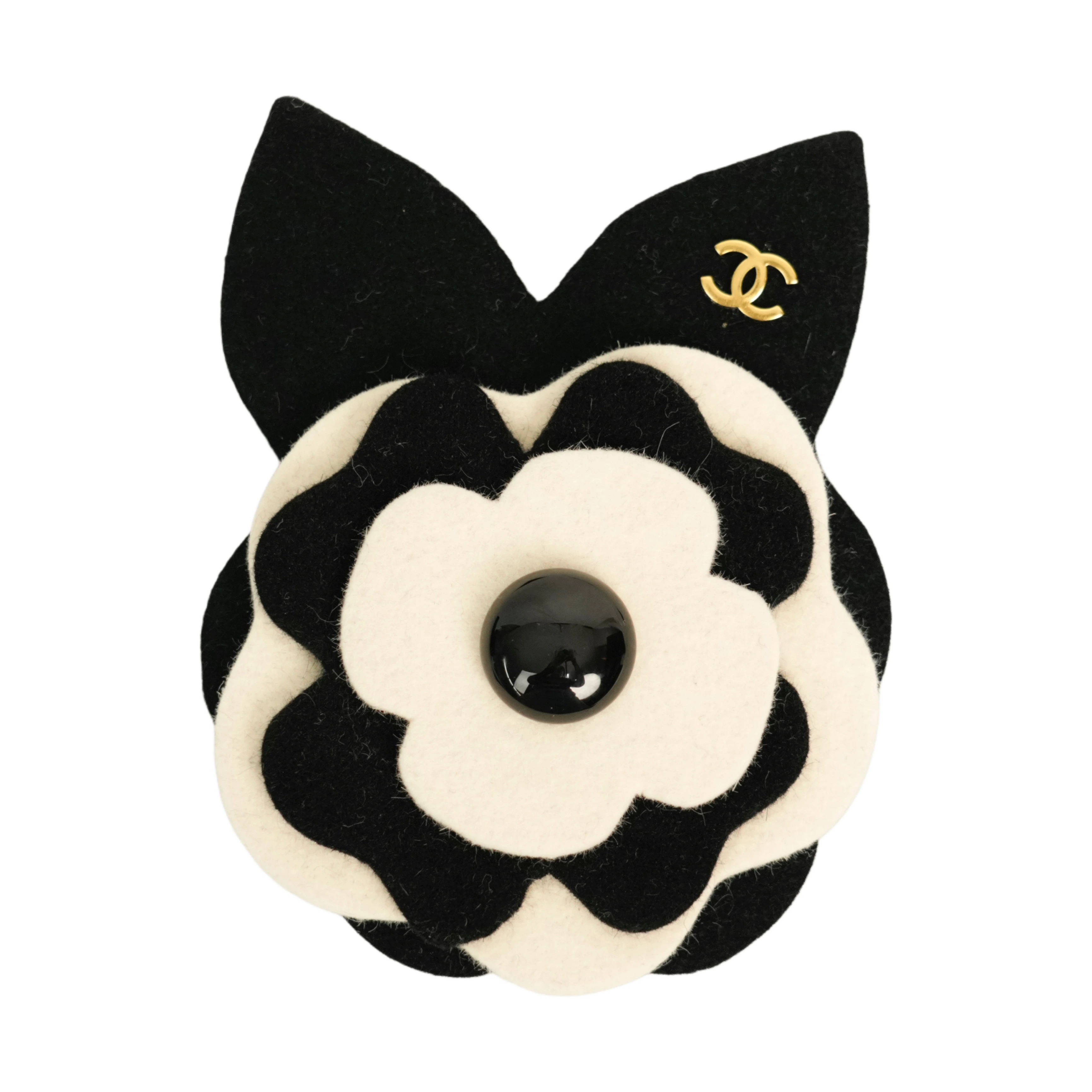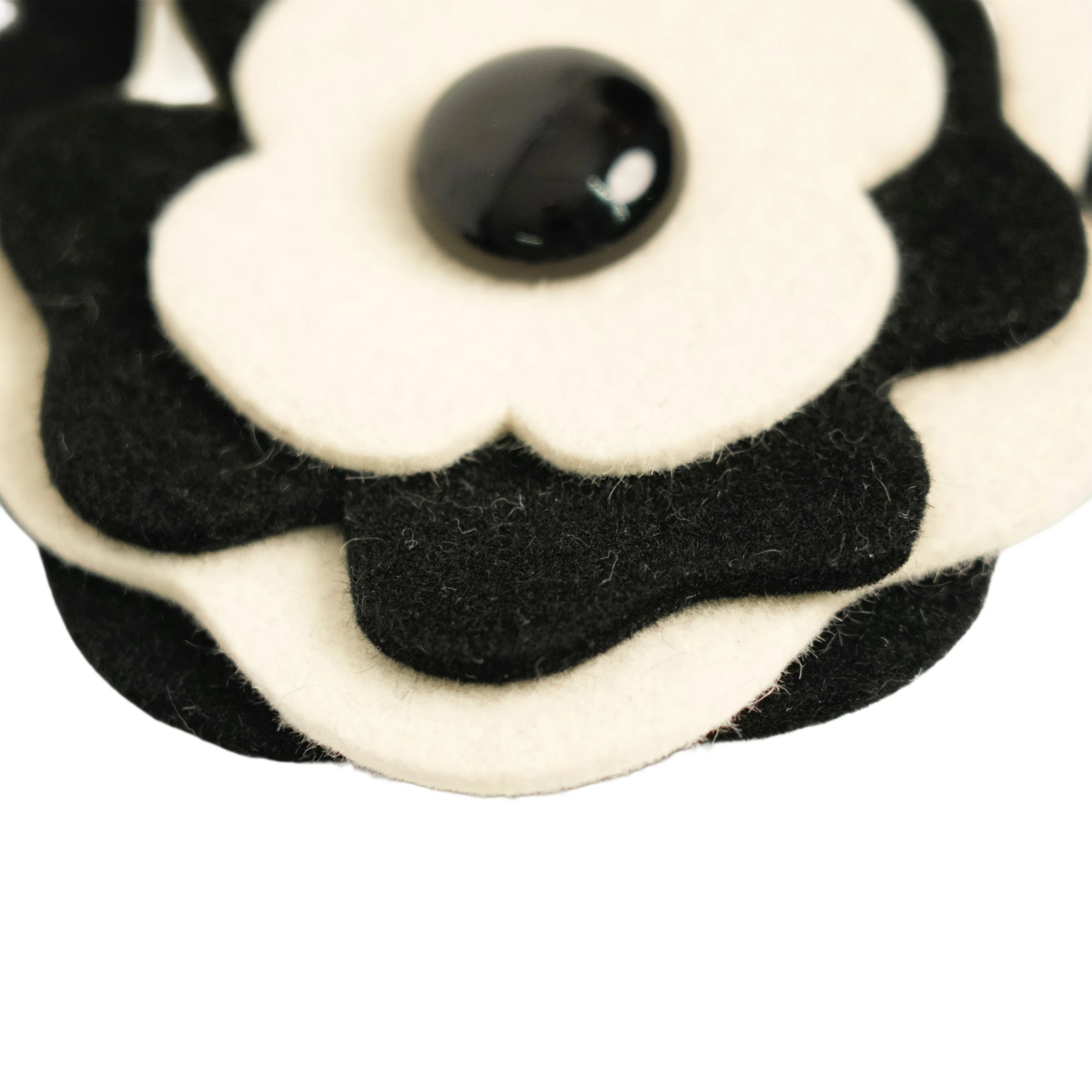 【中古・VINTAGE】CHANEL シャネル カメリア ブローチ ウール ブラック ホワイト ヴィンテージ Camellia Brooch