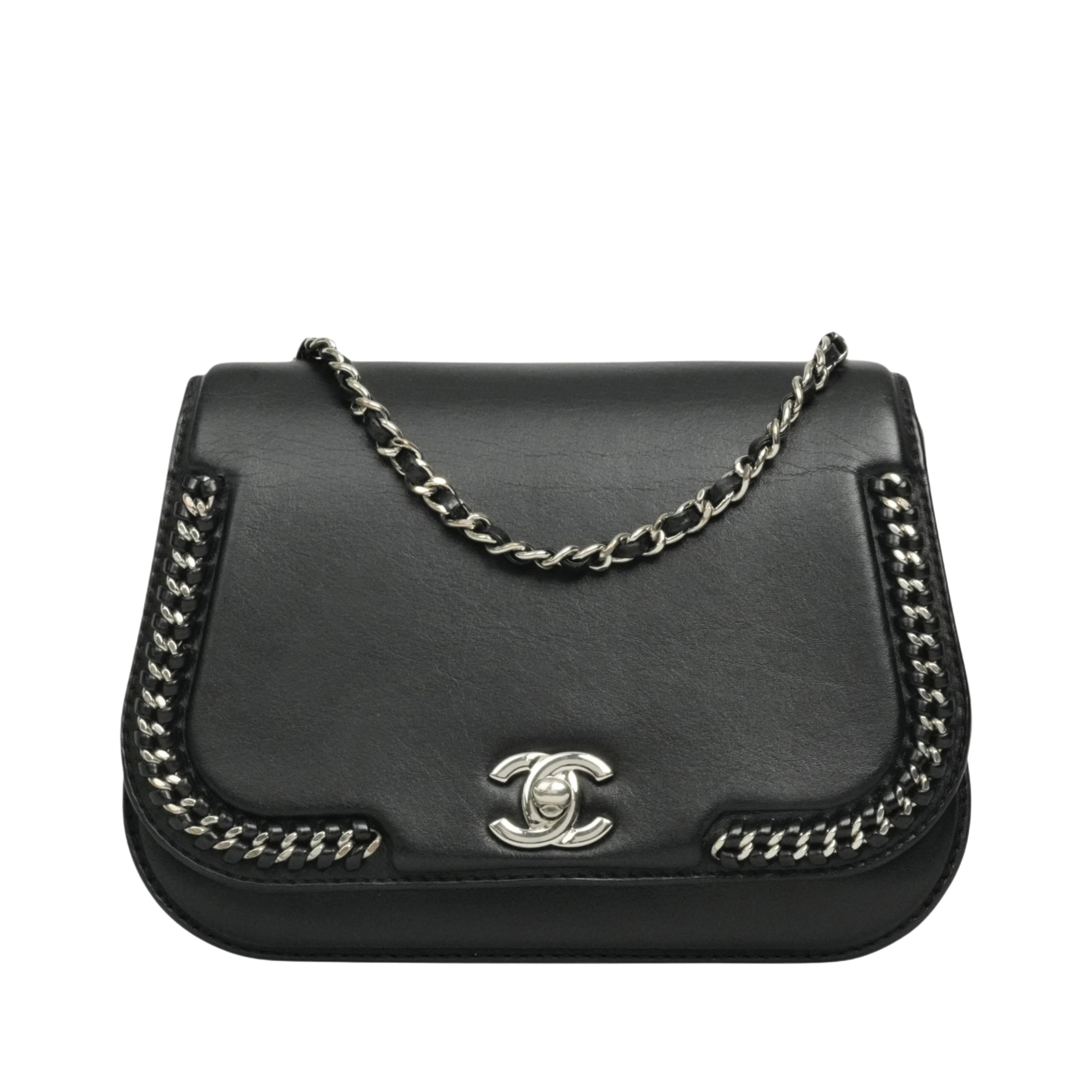 【中古・VINTAGE】 CHANEL シャネル ココマーク チエーン ショルダーバッグ ブラック シルバー レザー ヴィンテージ Coco Mark Chain Shoulder Bag