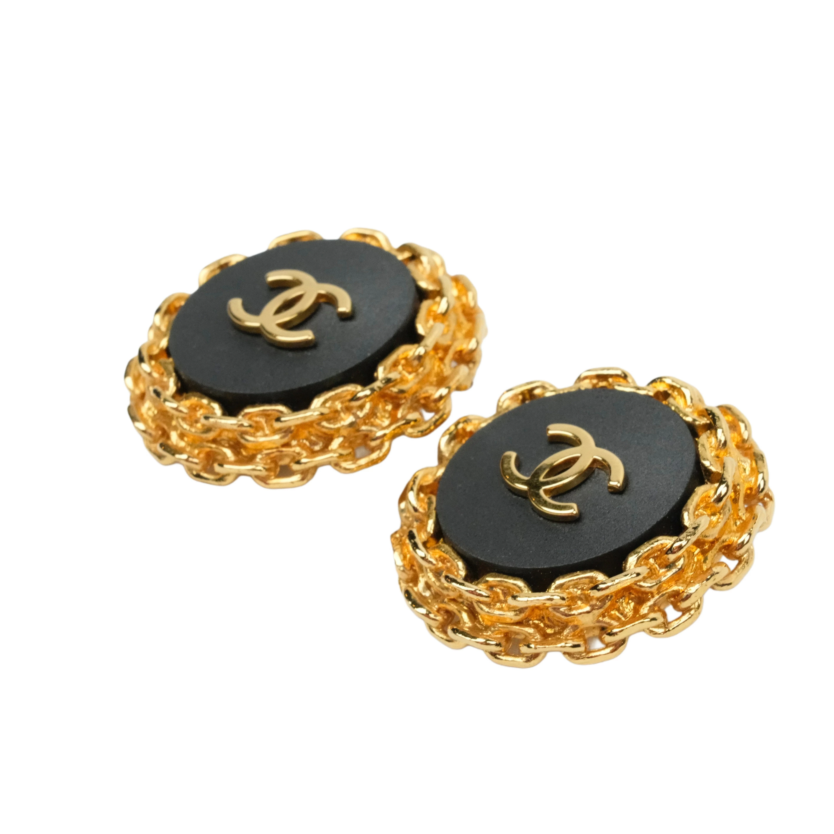 【中古・VINTAGE】CHANEL シャネル ココマーク イヤリング ブラック ゴールド ヴィンテージ Coco Mark Earring