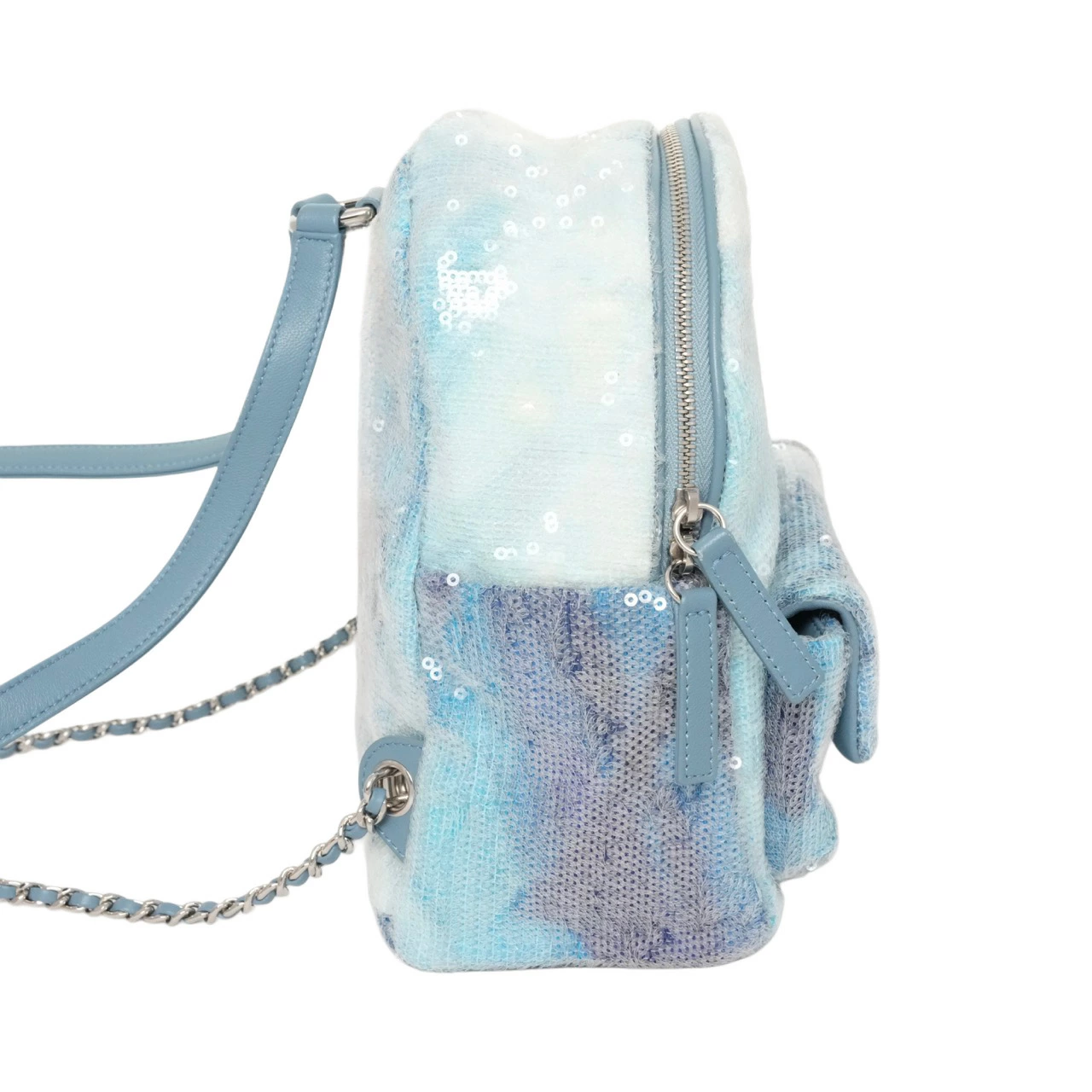 【中古・VINTAGE】CHANEL シャネル ココマーク スパンコール ミニバックパック リュック ライトルブルー シルバー ヴィンテージ Coco Mark Sequin Mini Backpack