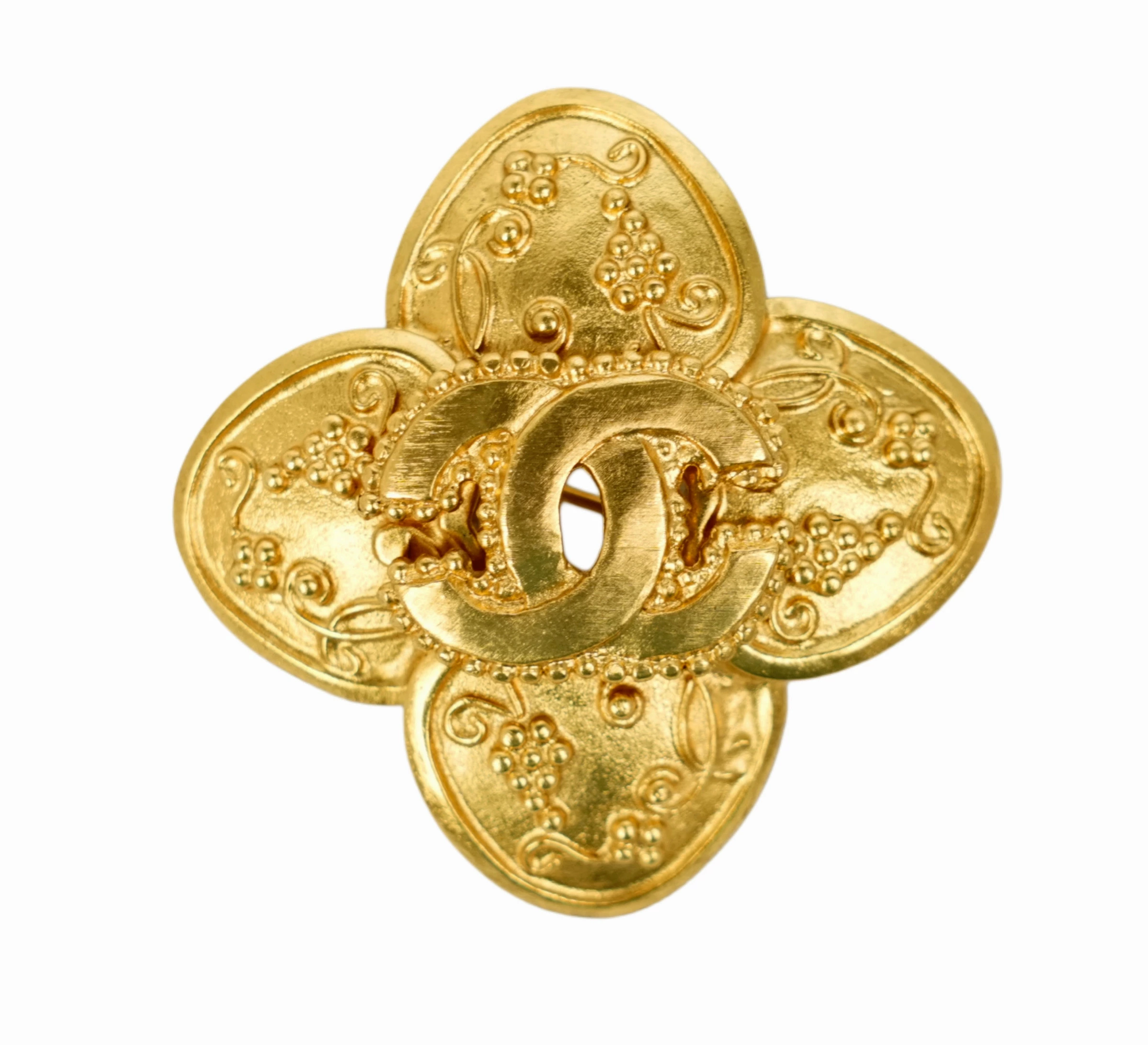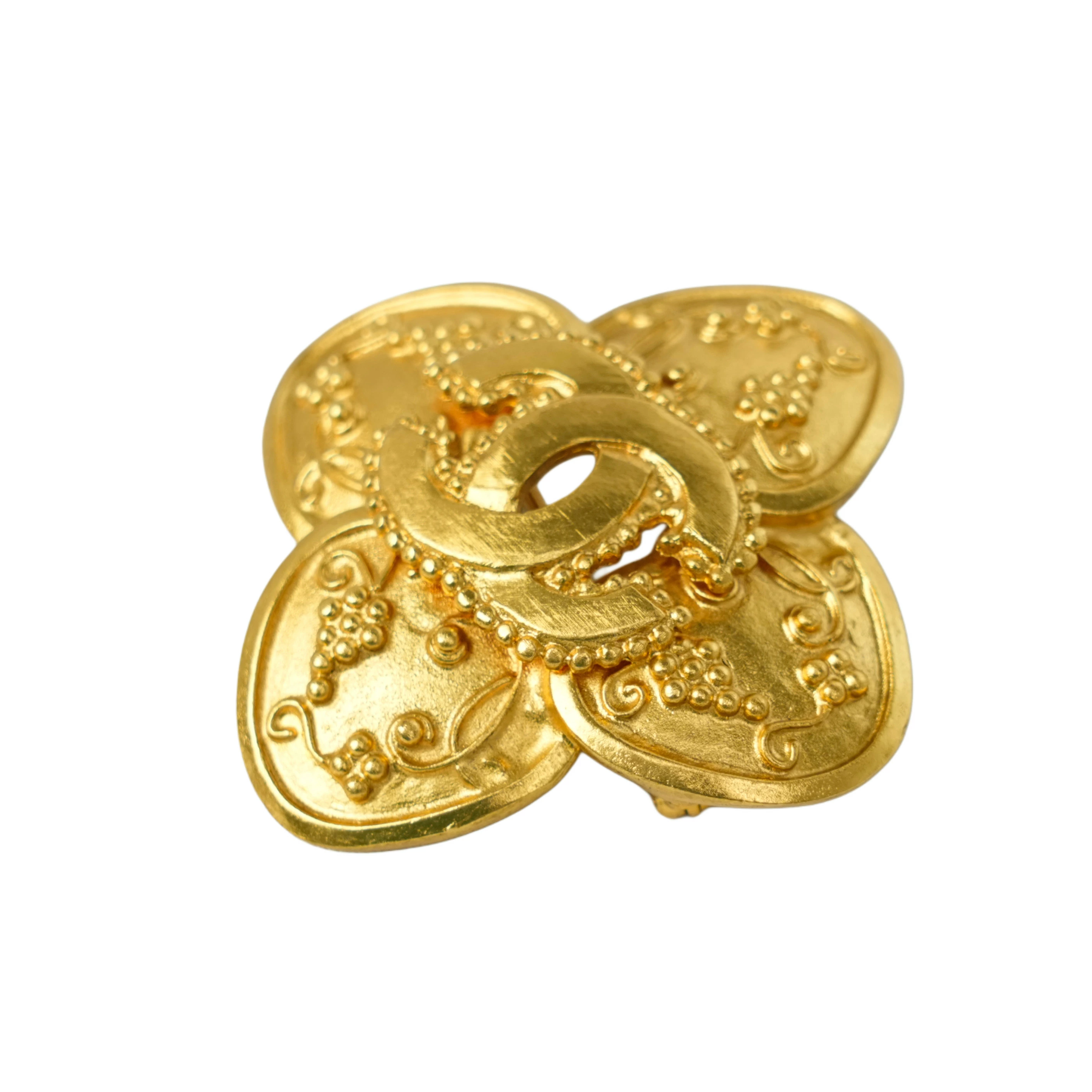 【中古・VINTAGE】 CHANEL シャネル フラワーモチーフ ココマーク ブローチ ゴールド Flower Motif Coco Mark Brooch