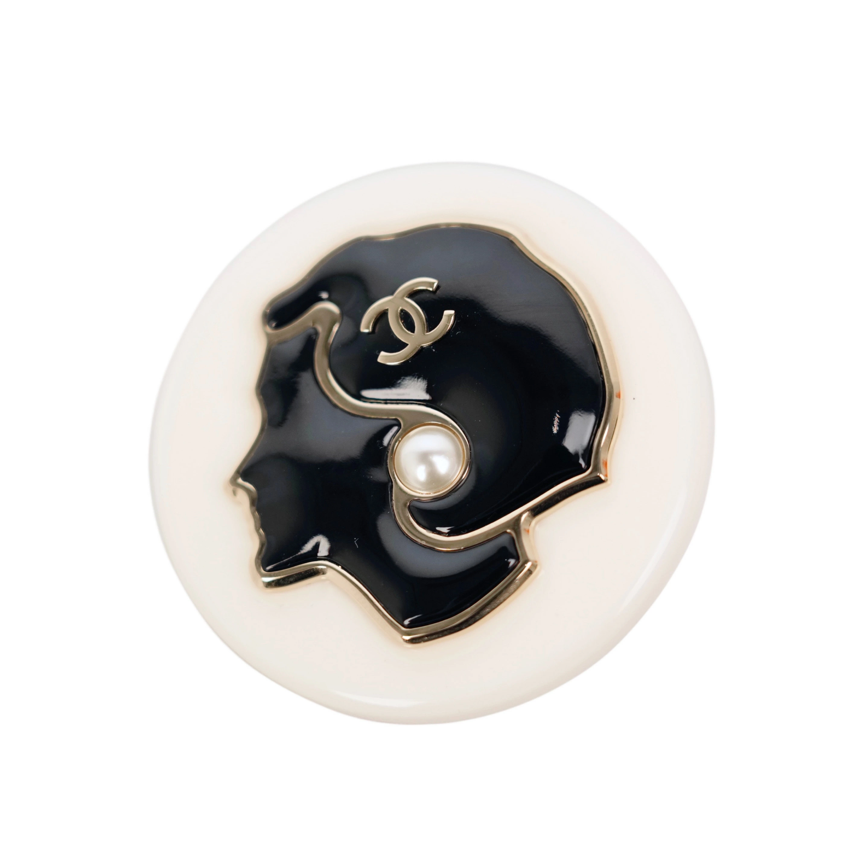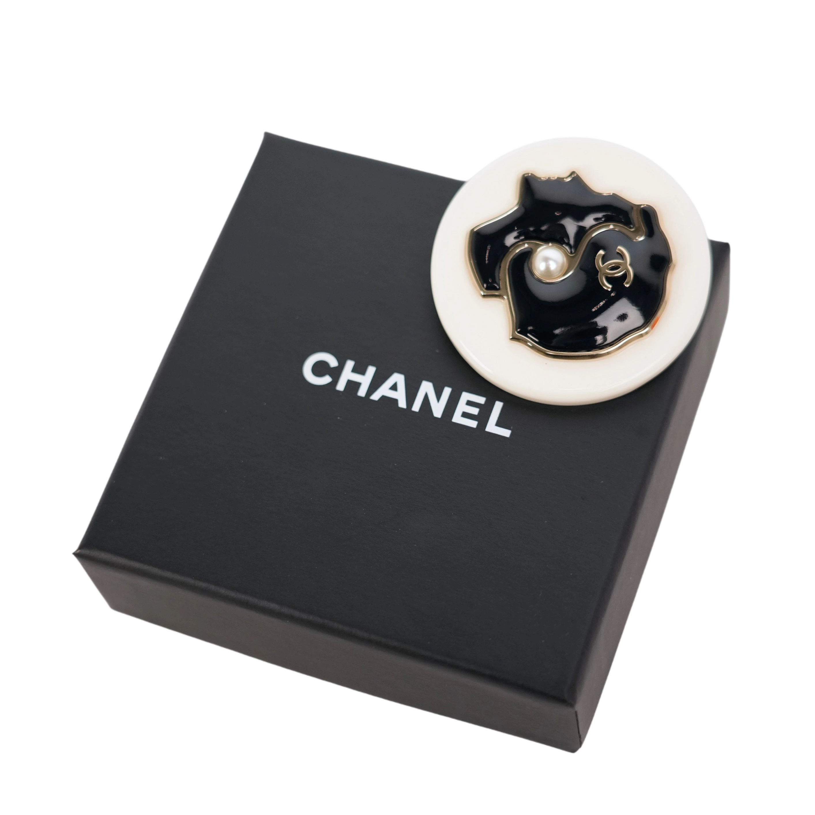 [Pre-owned/VINTAGE] CHANEL Mademoiselle Brooch in Black and White with Pearls, Women's Vintage Mademoiselle Brooch