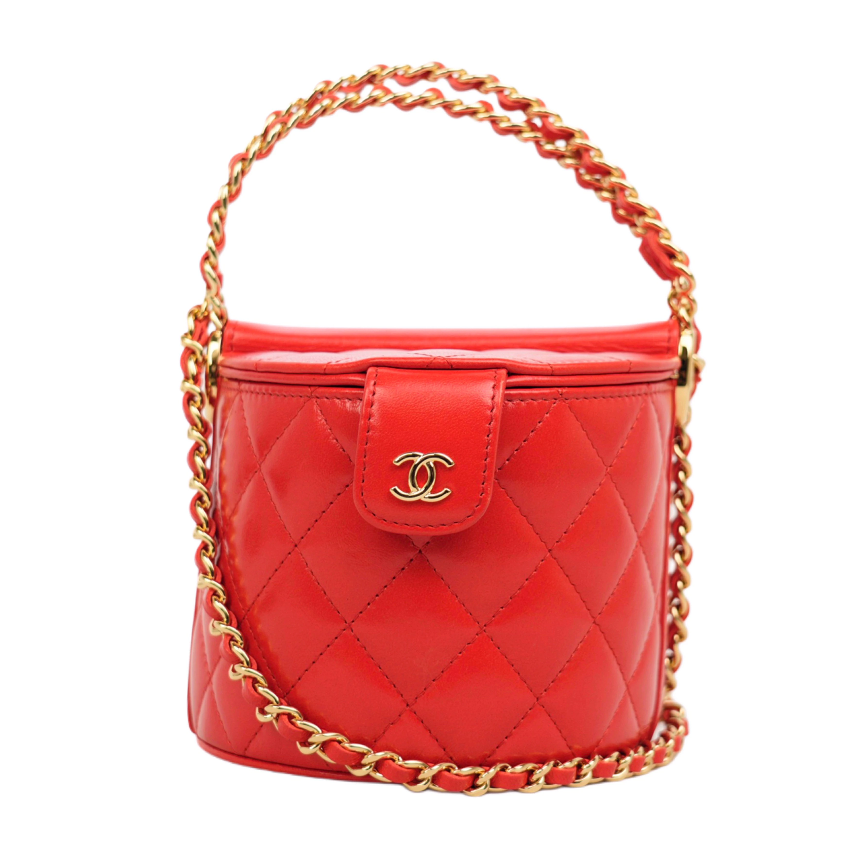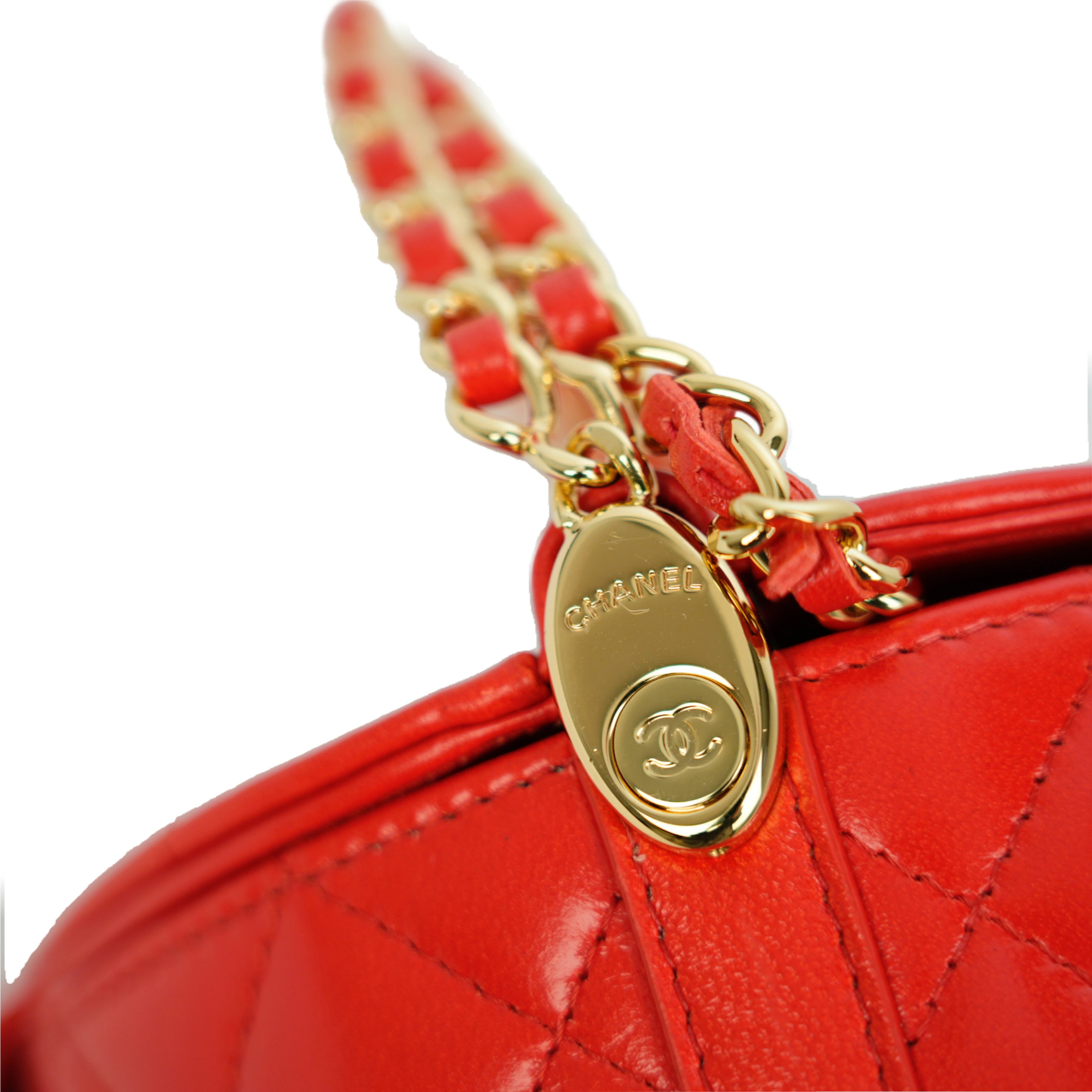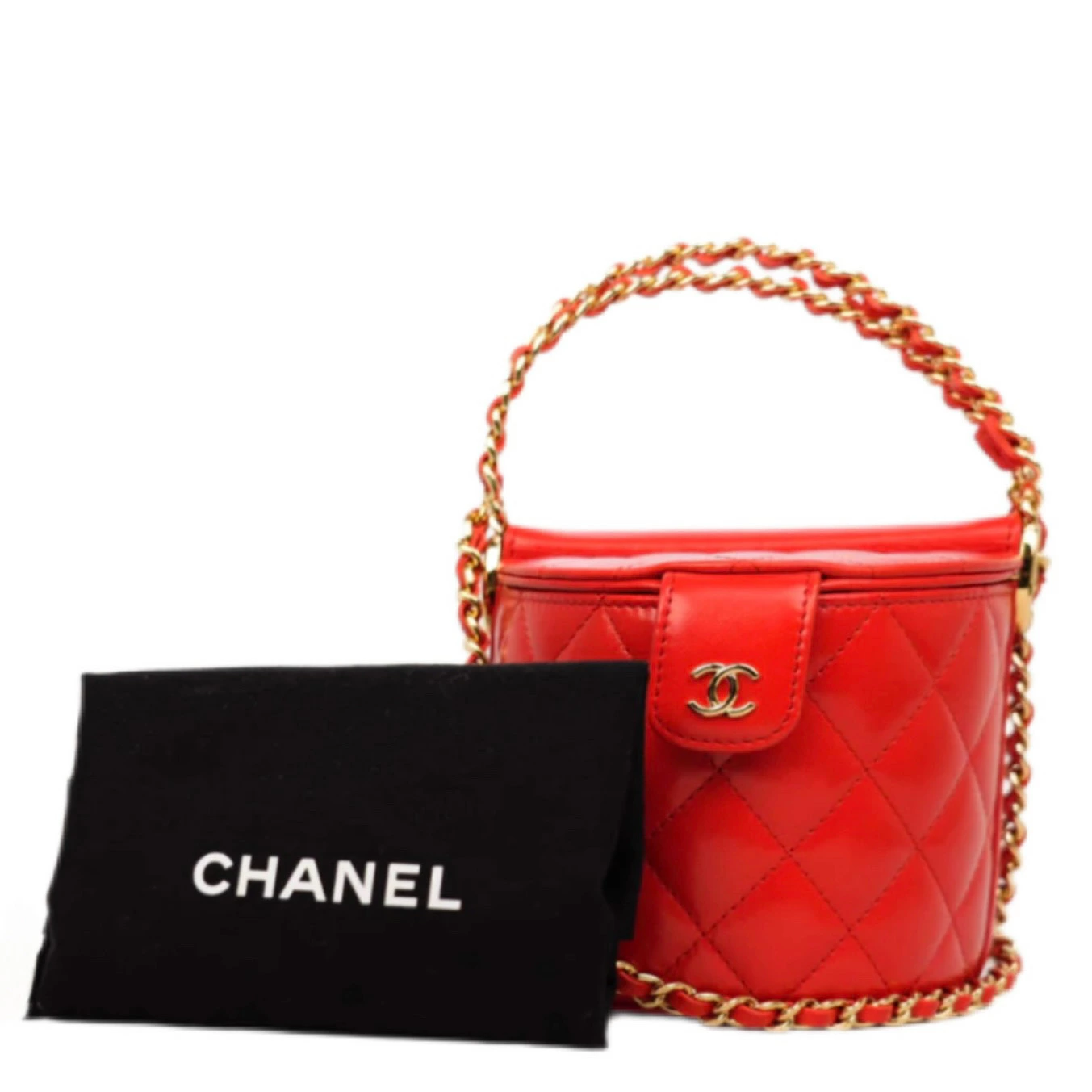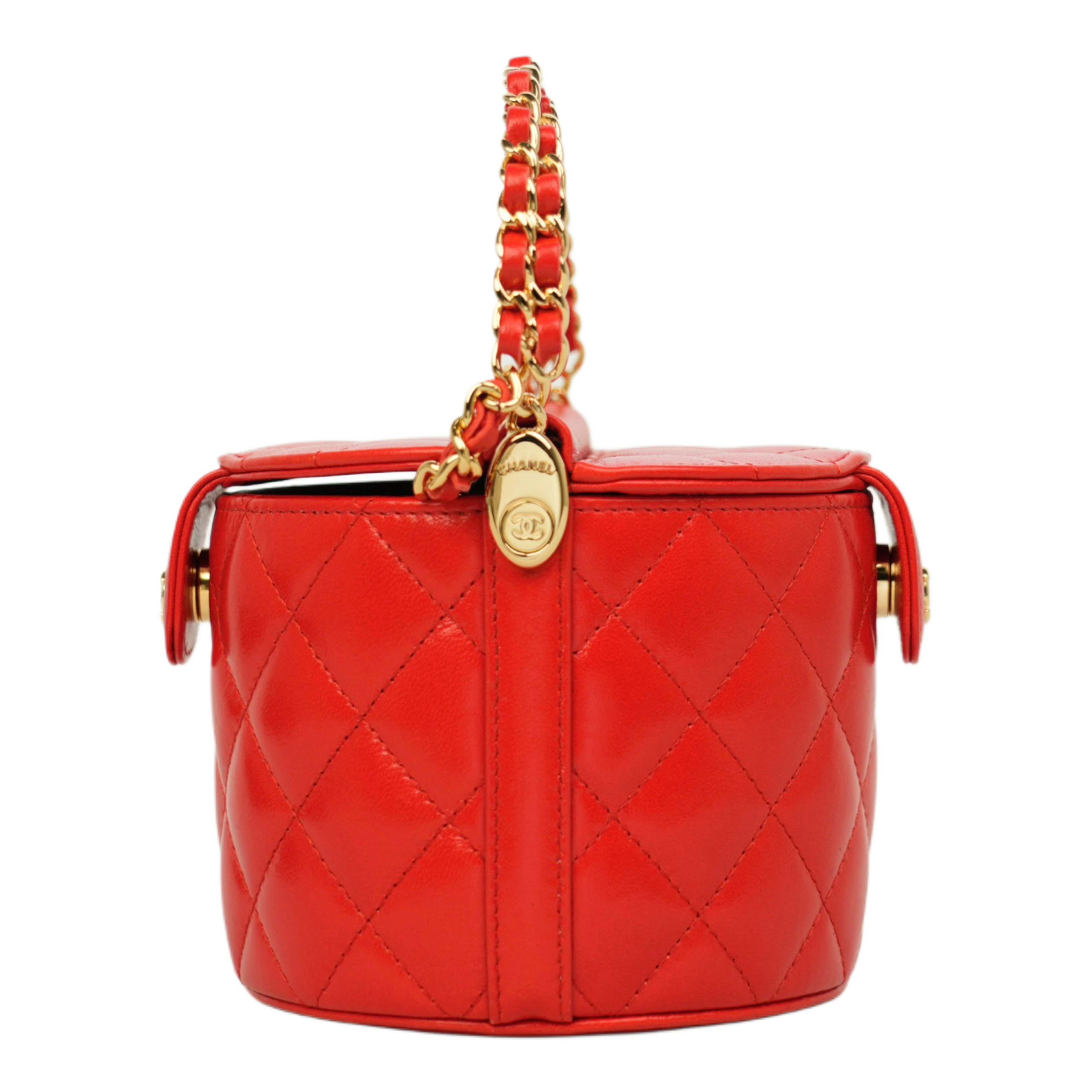 【中古・VINTAGE】 CHANEL シャネル マトラッセ ラムスキン バニティバッグ ハンドバッグ/ショルダーバッグ レッド ゴールド ヴィンテージ Matelass? Vanity Handbag/Shoulder Bag 2-Way