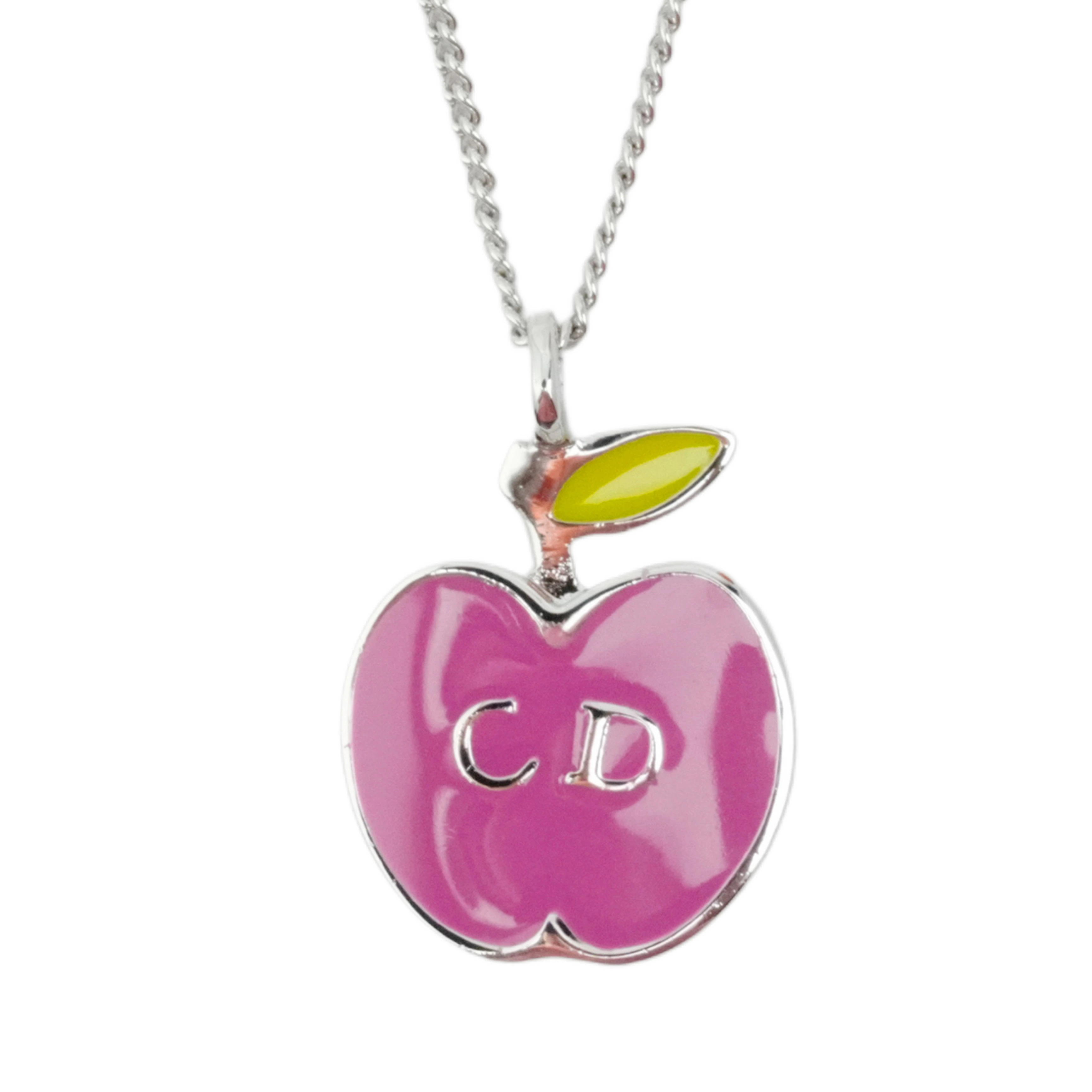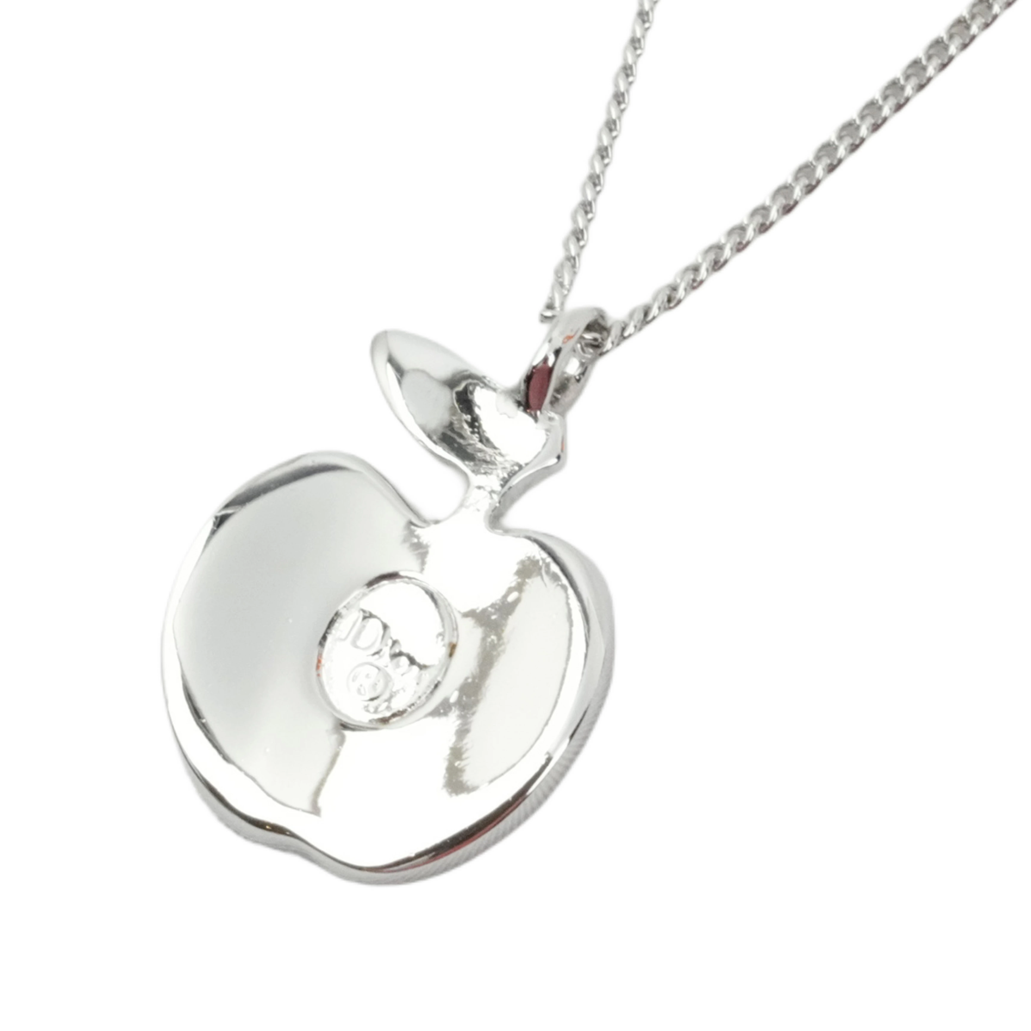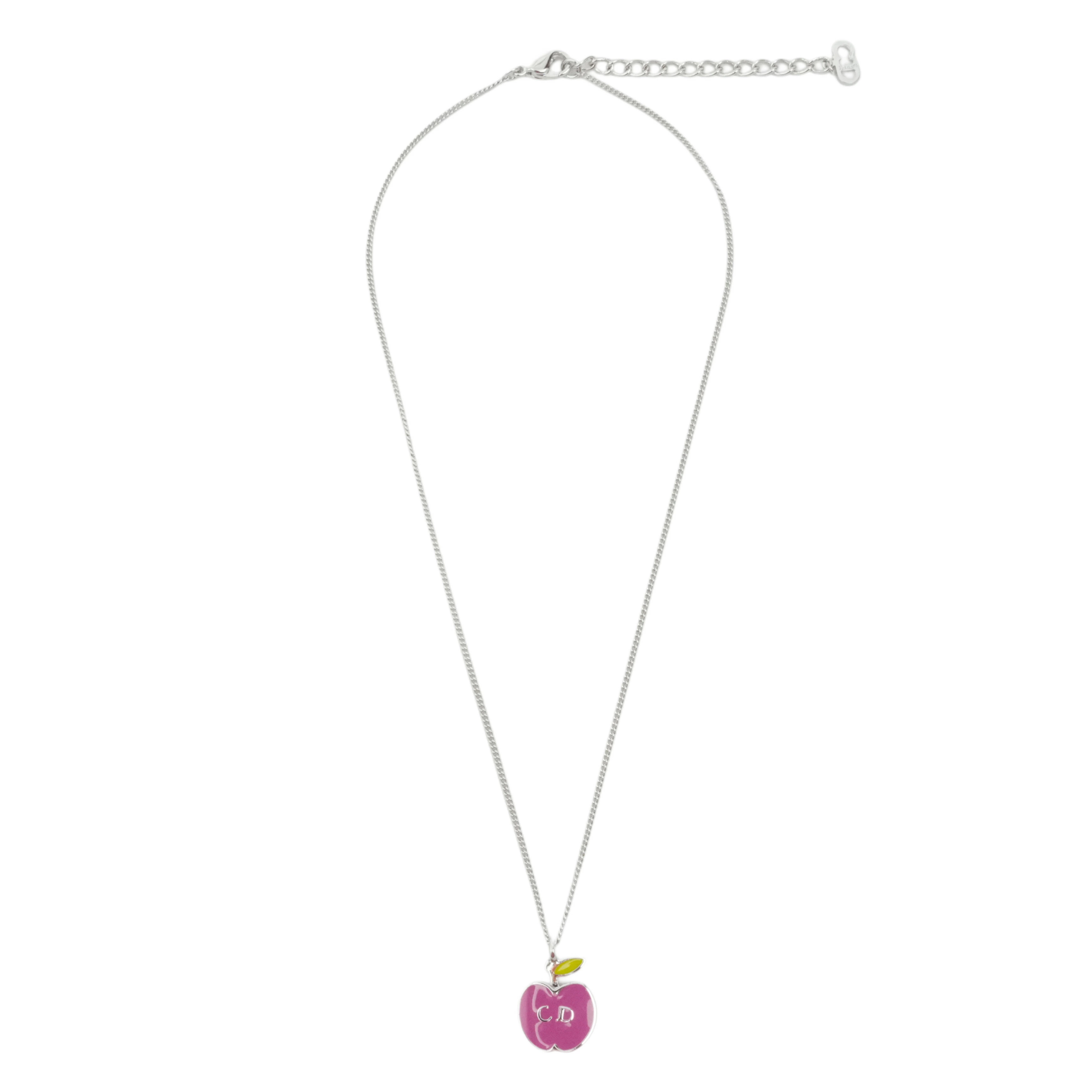 【中古・VINTAGE】CHRISTIAN DIOR クリスチャンディオール アップルモチーフ ネックレス エナメル メタル ピンク グリーン シルバー ヴィンテージ Apple Motif Necklace