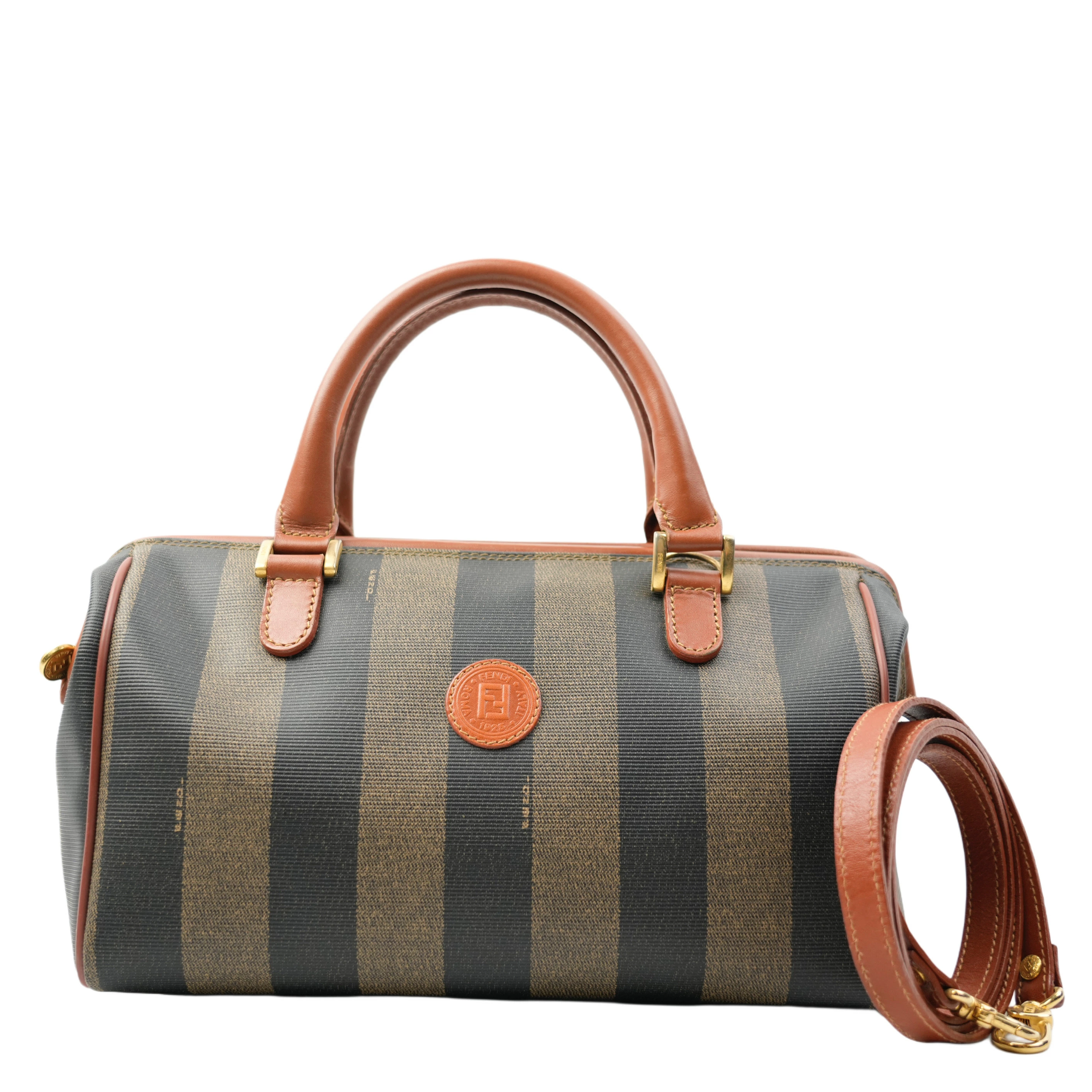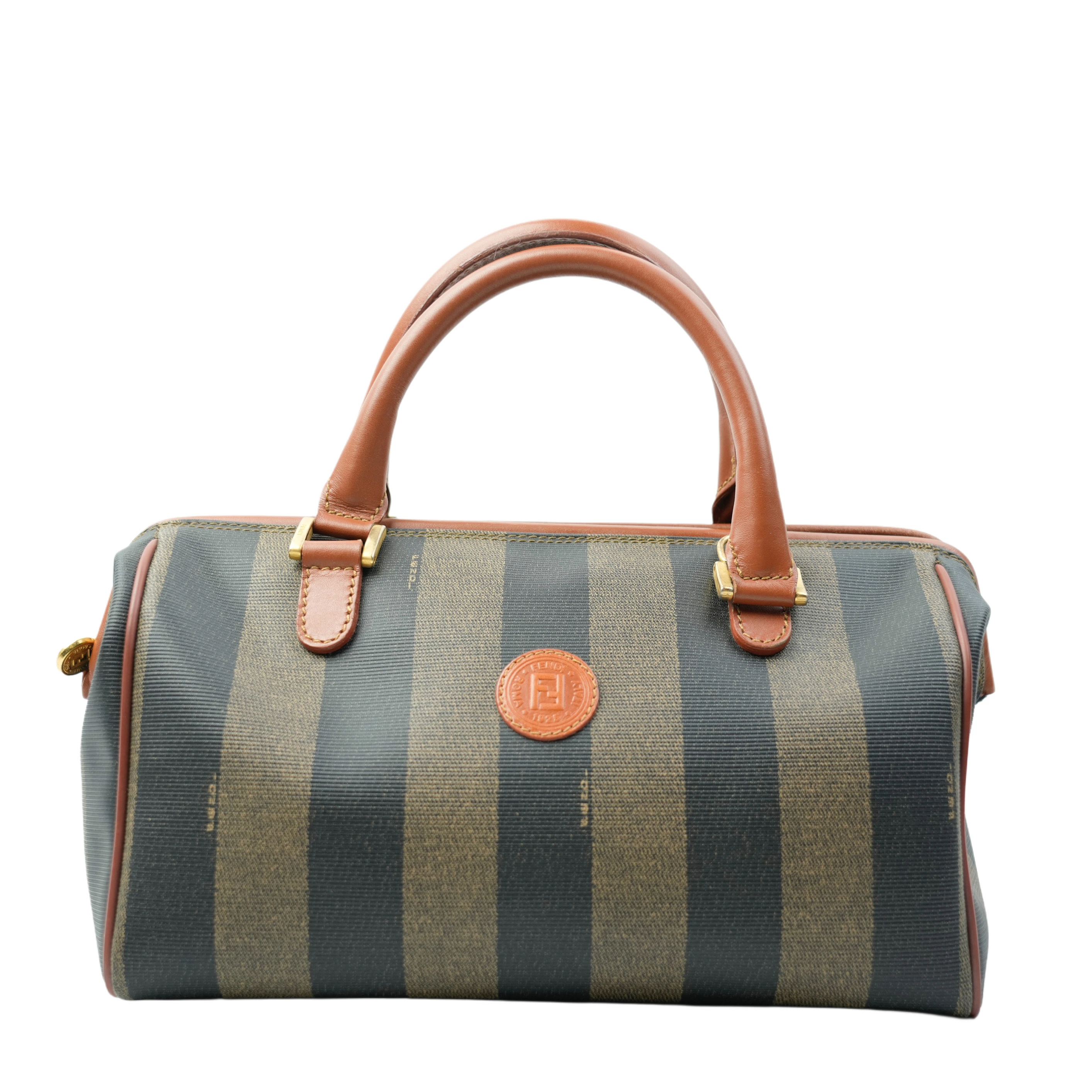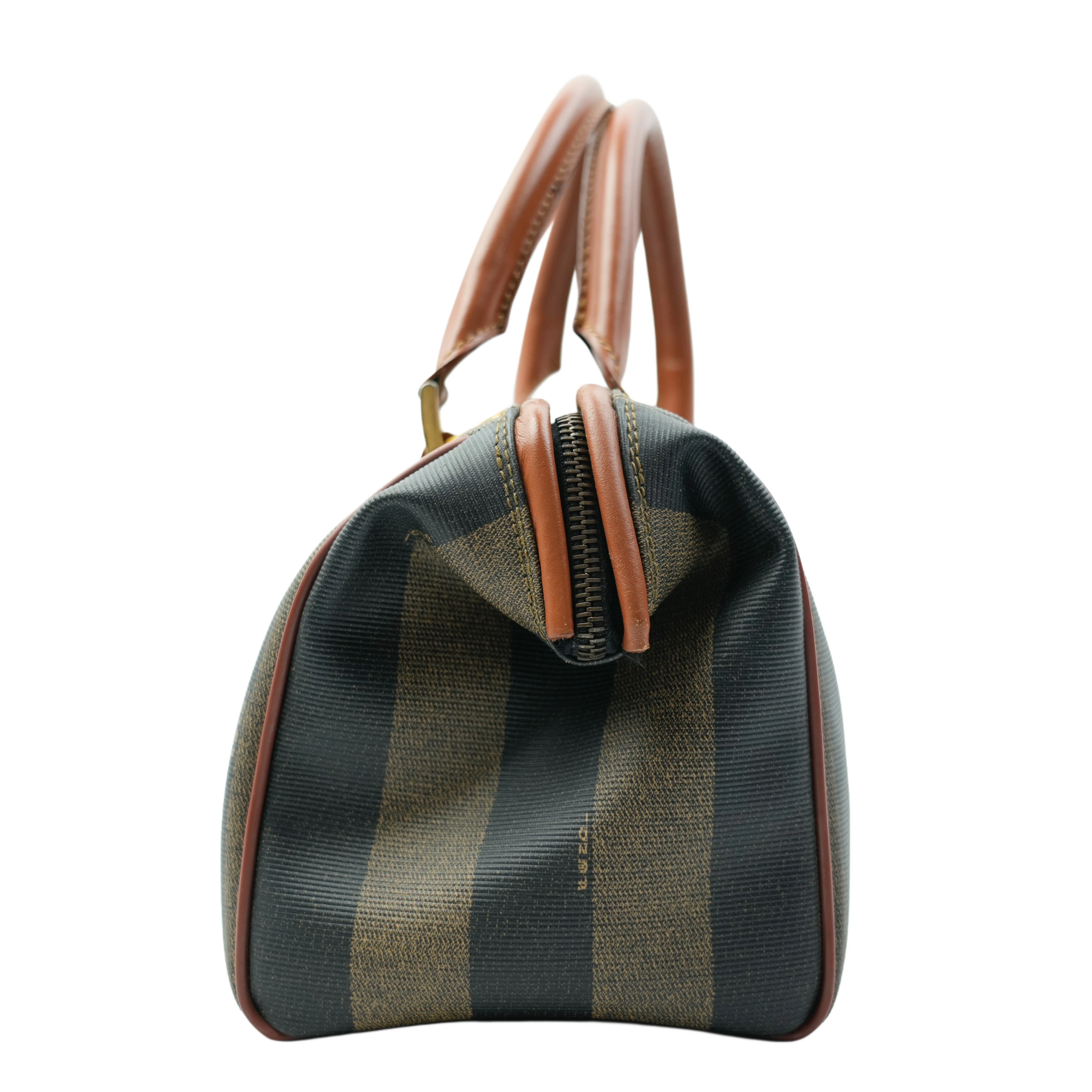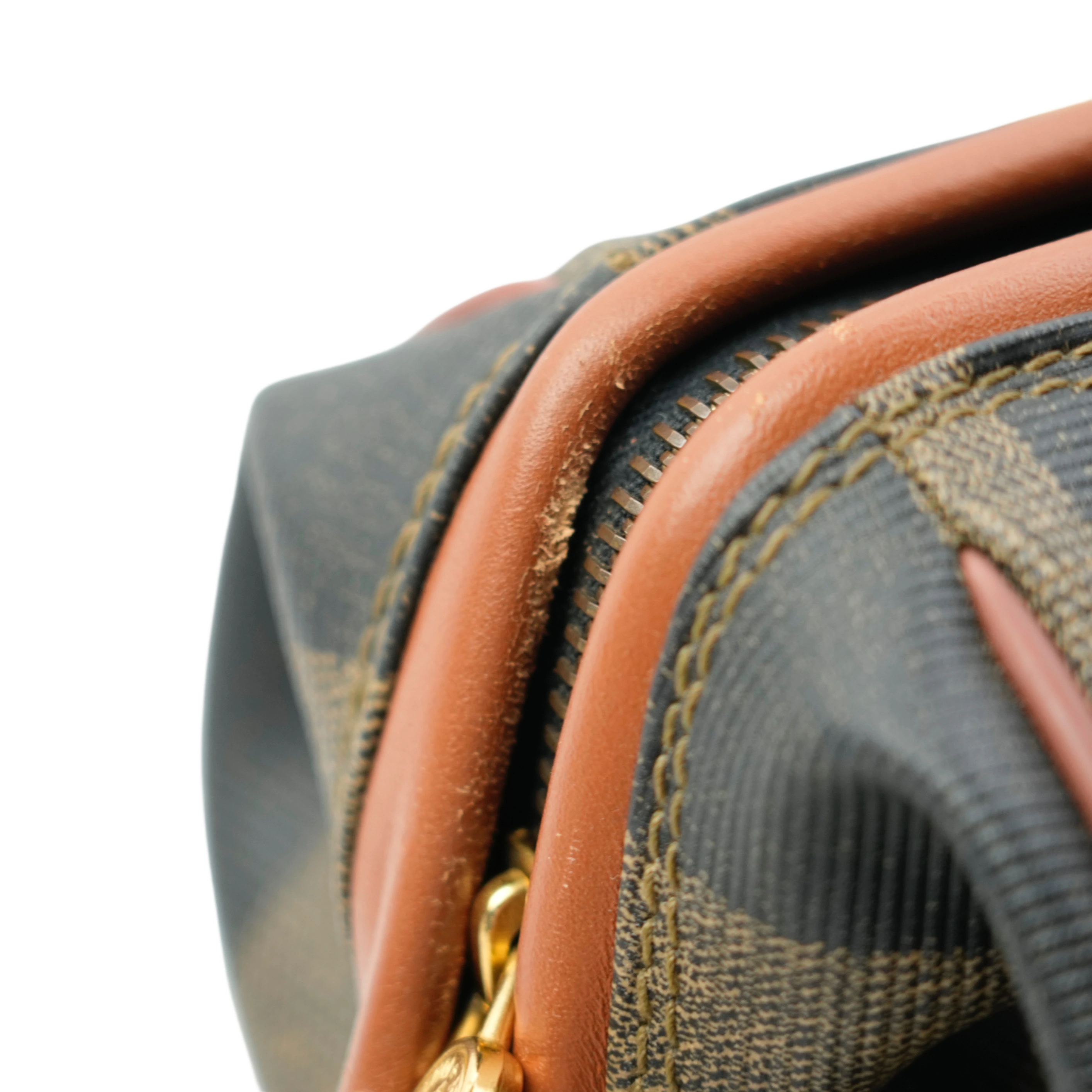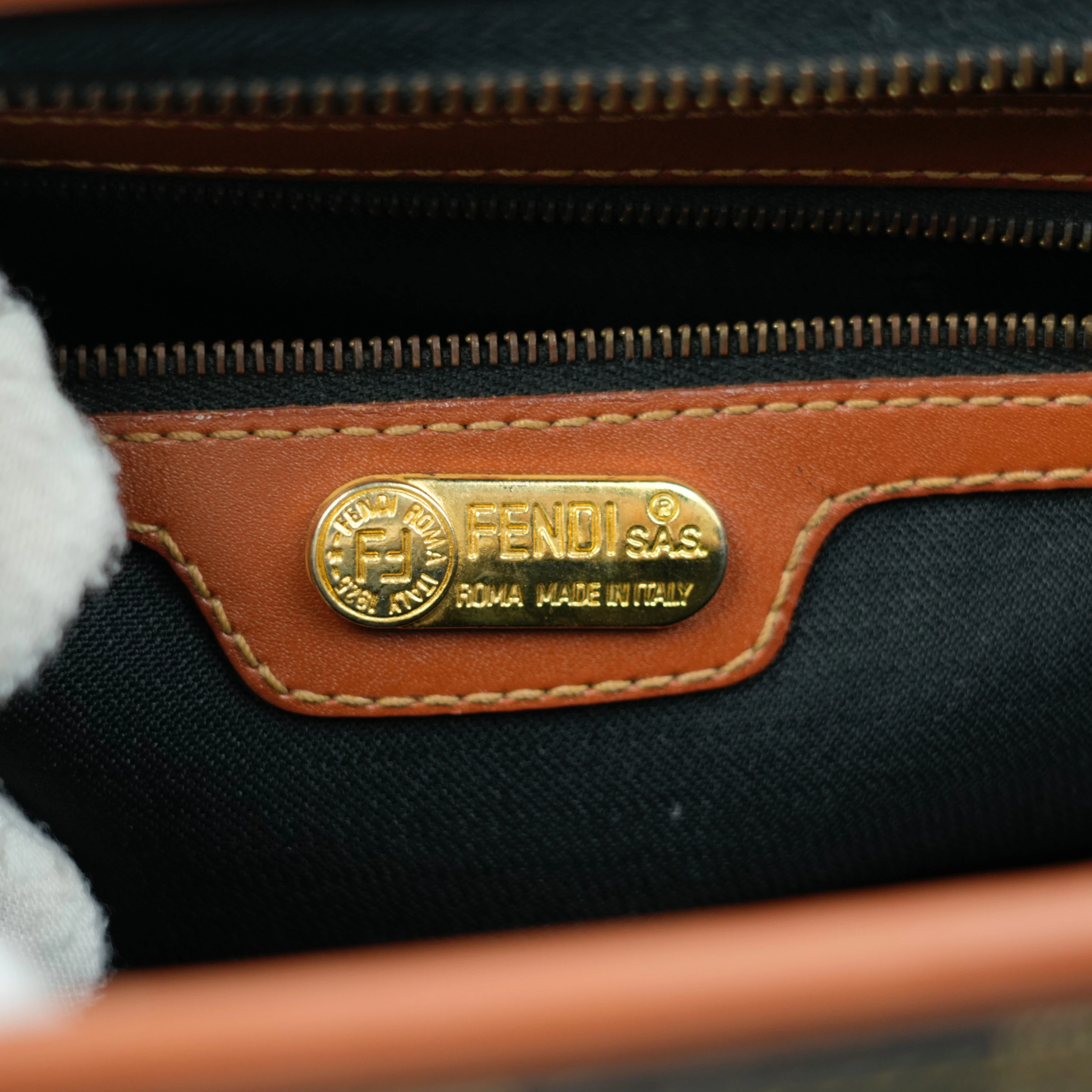 【中古・VINTAGE】 FENDI フェンディ ハンドバッグ ペカン柄 ブラウン カーキ ブラック ヴィンテージ Pebbled Pattern Handbag