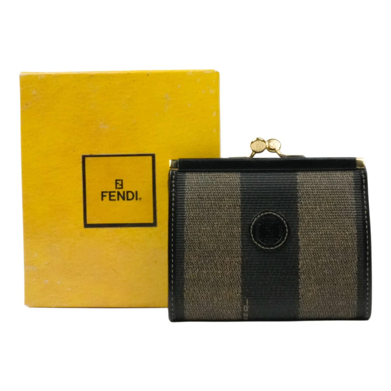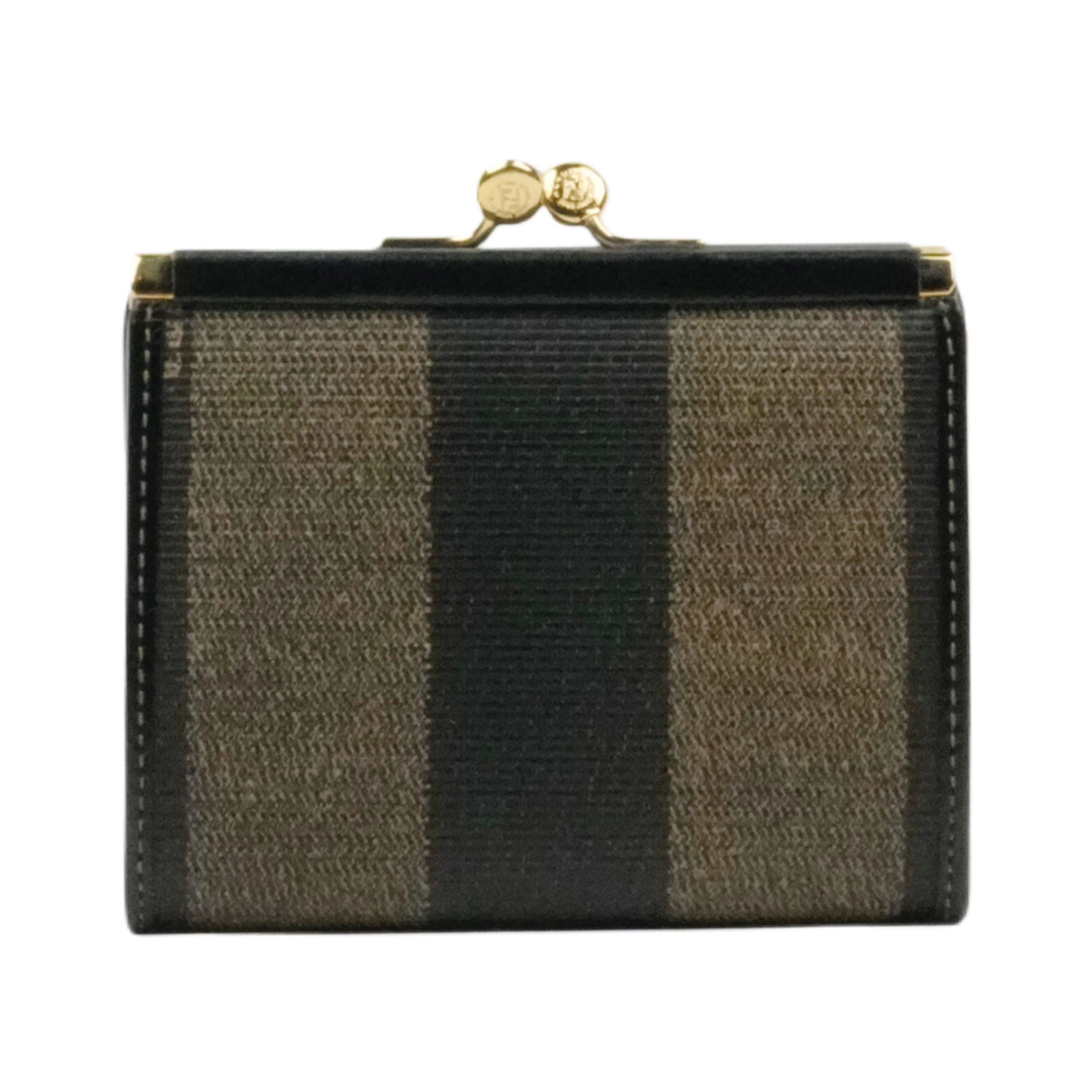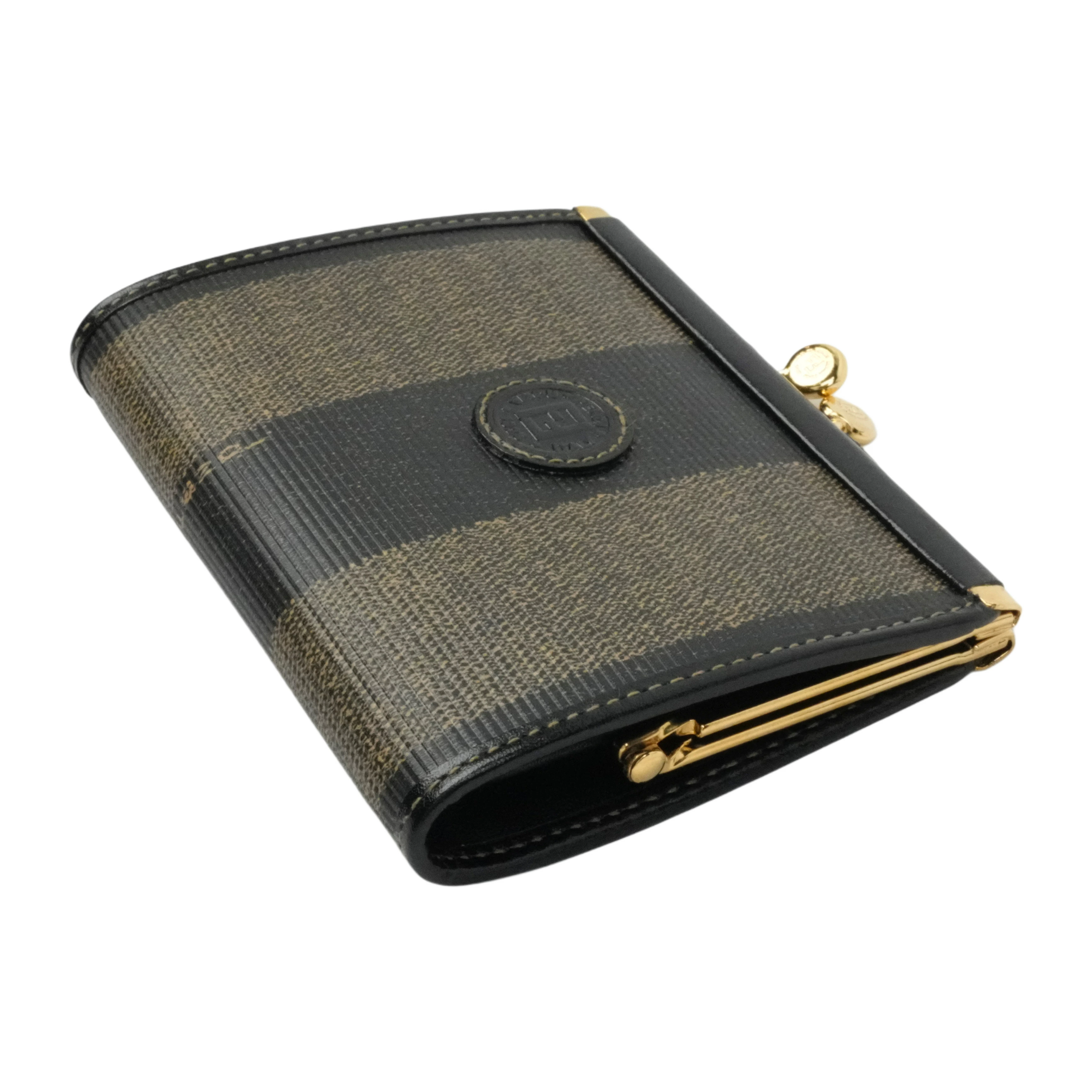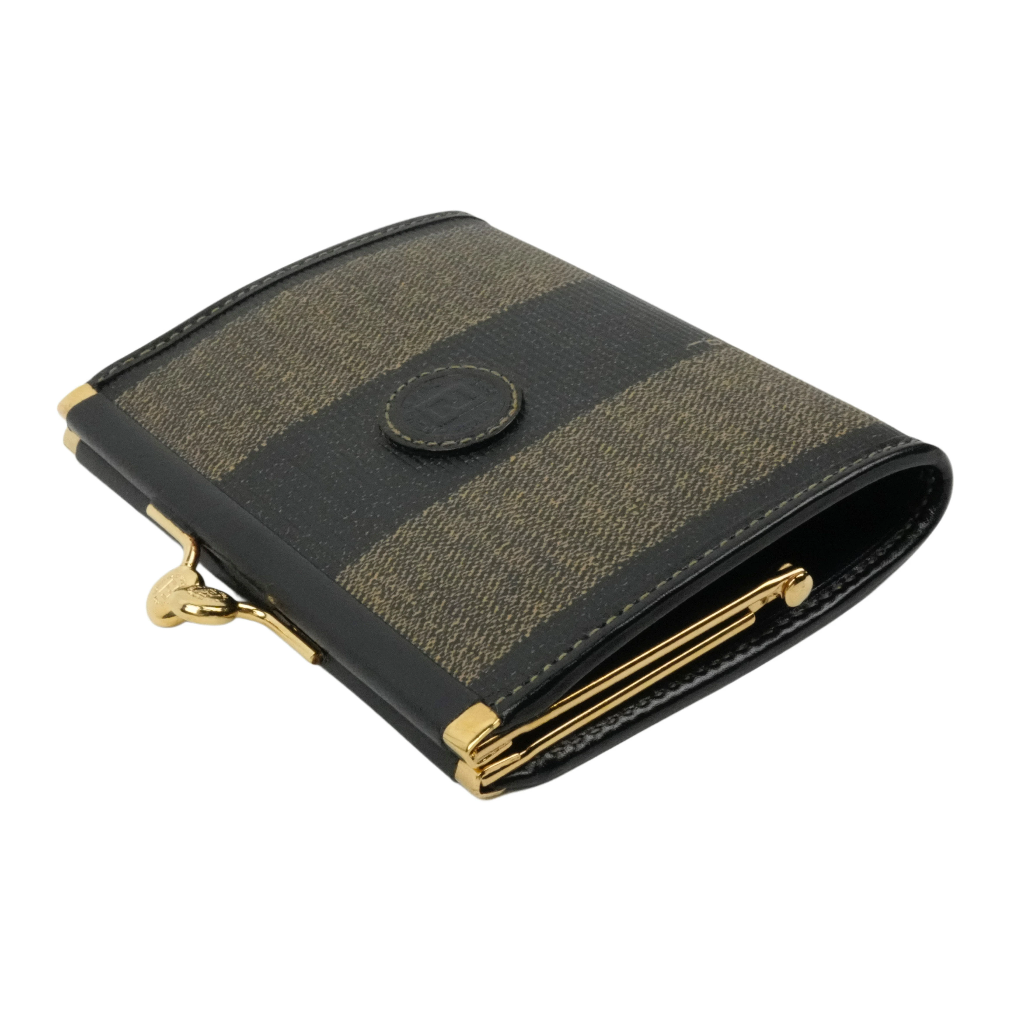 【中古・VINTAGE】FENDI フェンディ ペカン コインケース ブラック ブラウン ゴールド ヴィンテージ Pecan Coin Case
