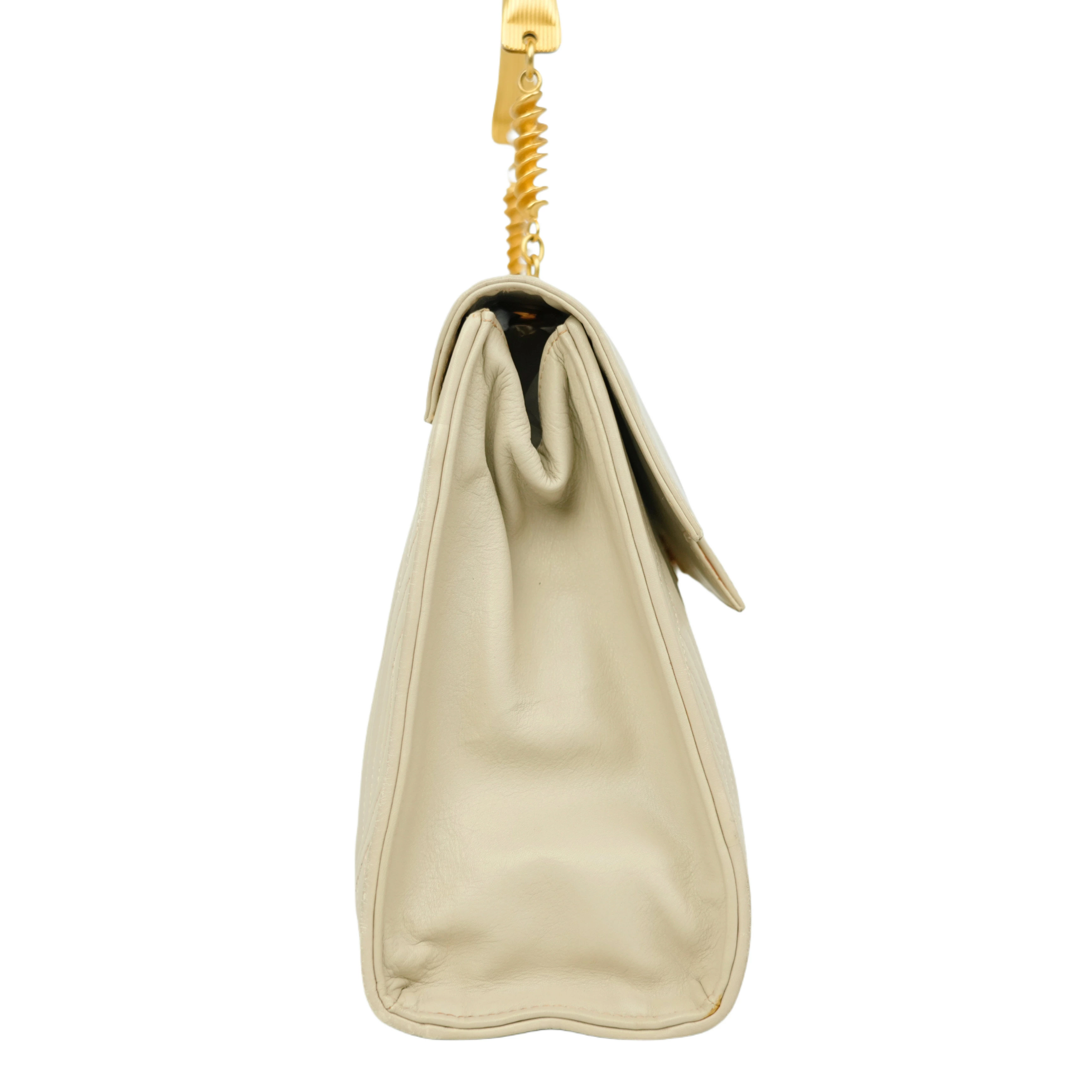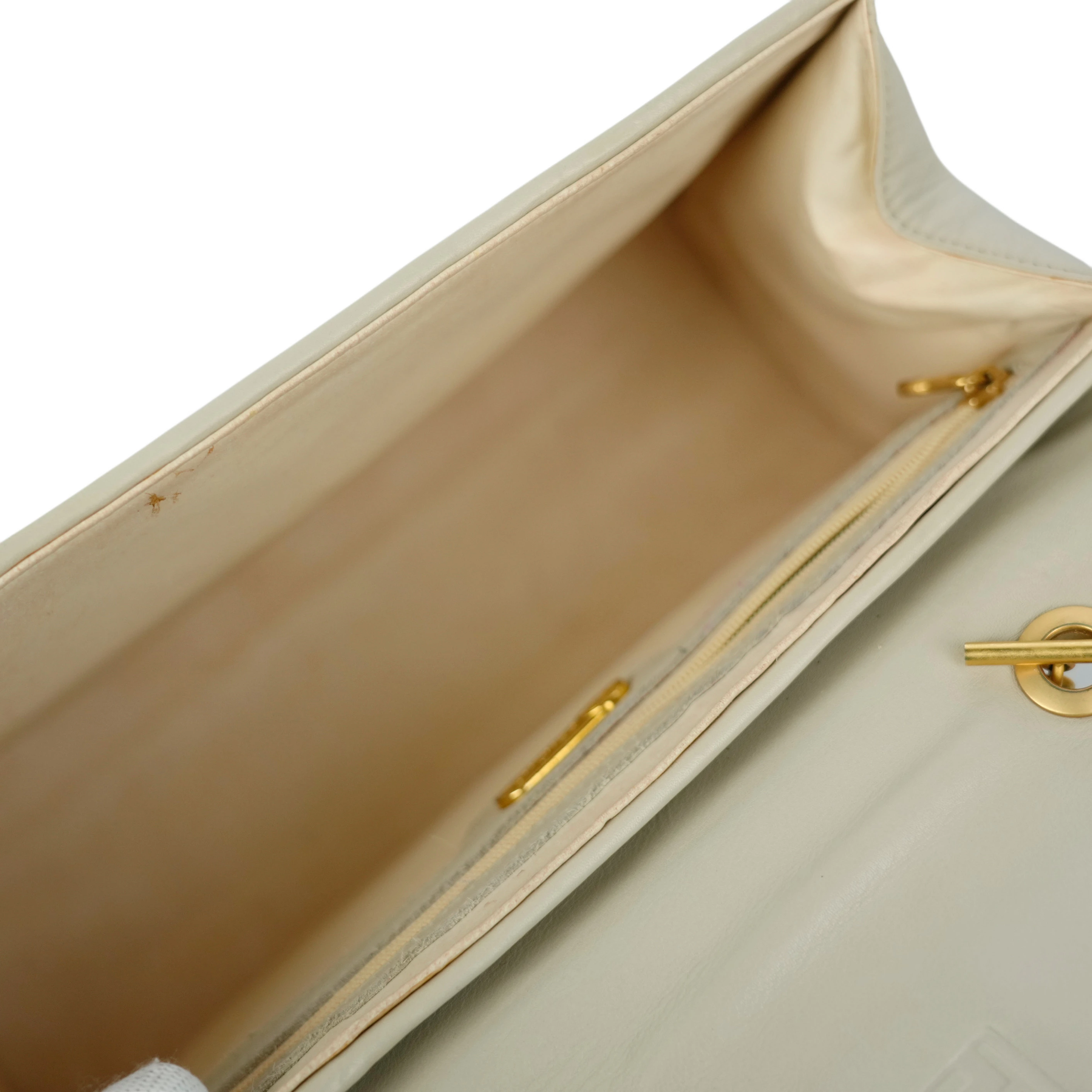 【中古・VINTAGE】FENDI フェンディ ハンドバッグ レザー ホワイト ヴィンテージ Handbag