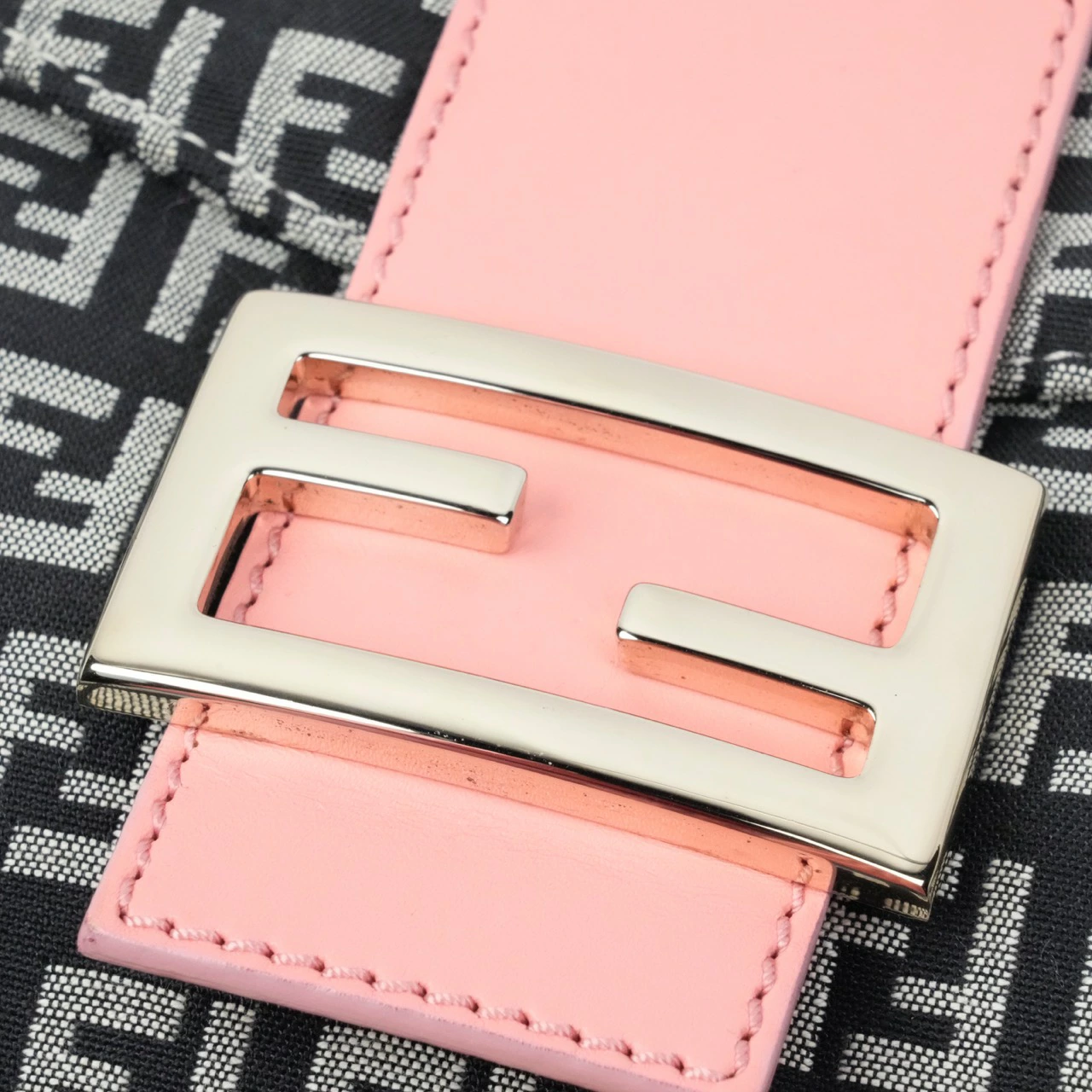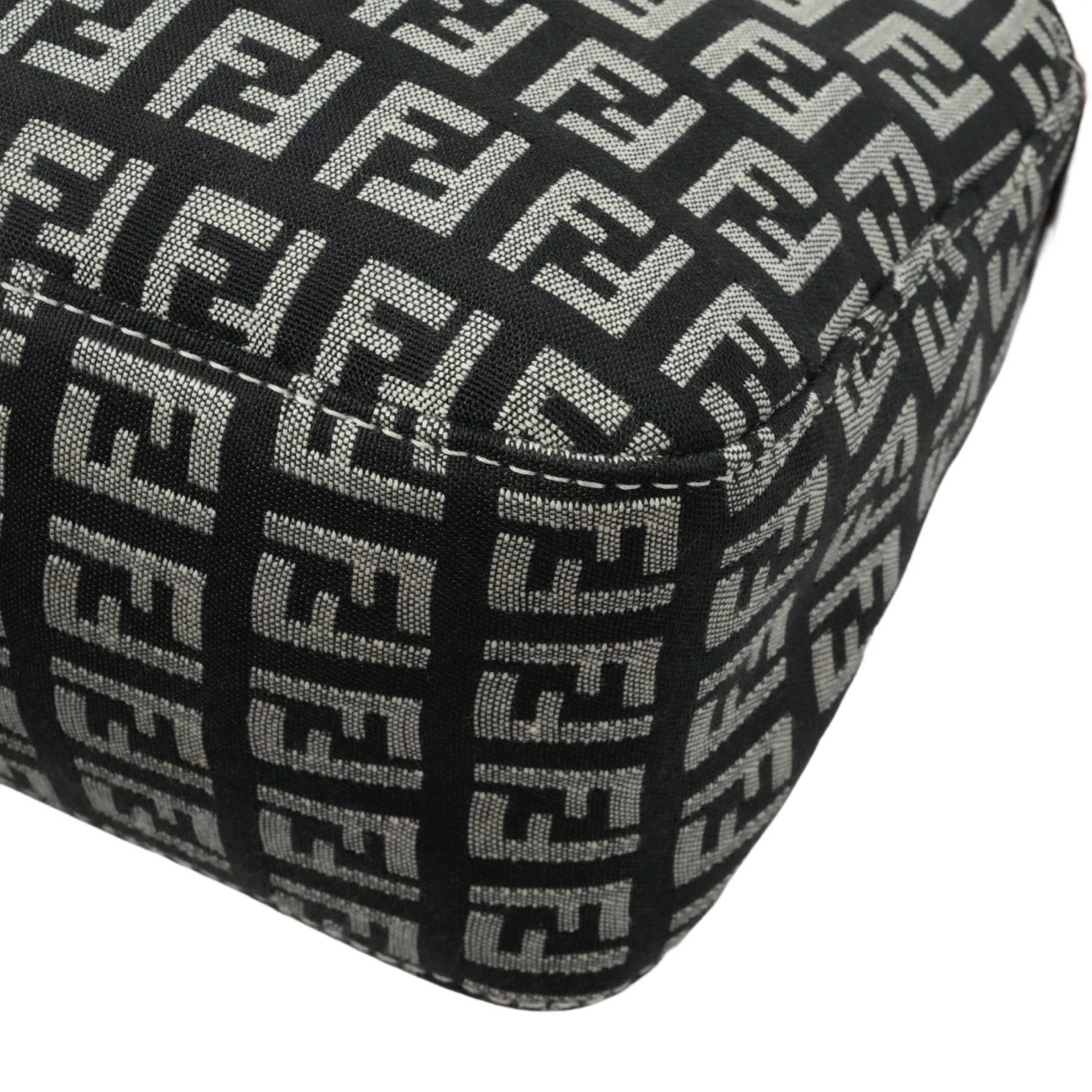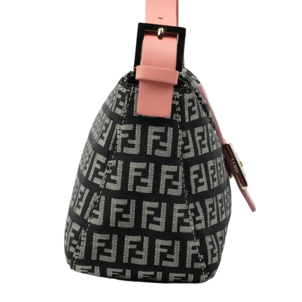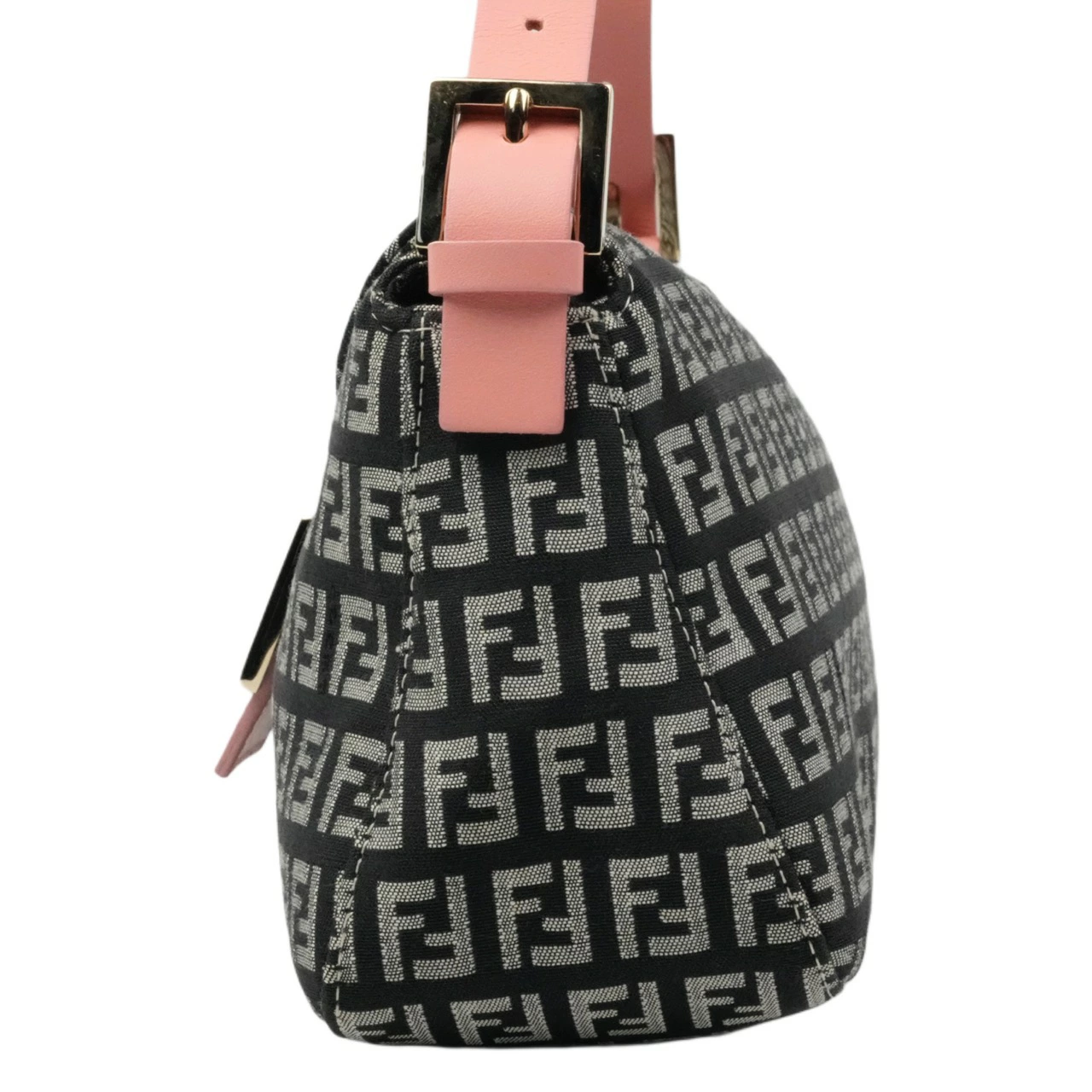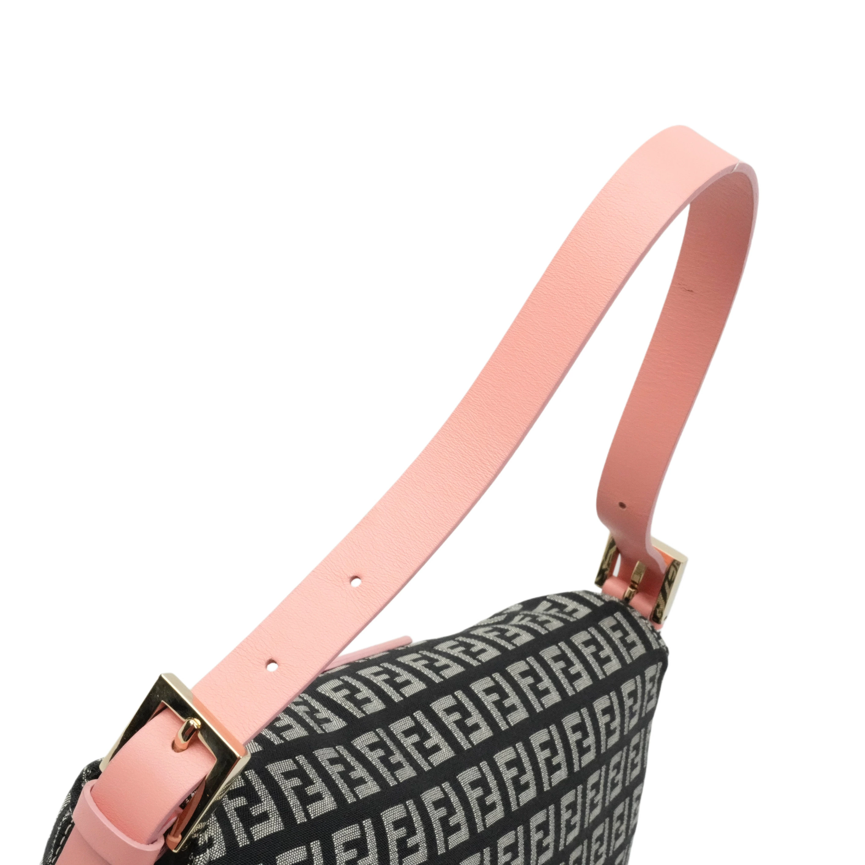 【中古・VINTAGE】FENDI フェンディ ズッキーノ ショルダーバッグ ジャカードキャンバス レザー ブラック グレー ピンク ゴールド ヴィンテージ Zucchetto Shoulder Bag