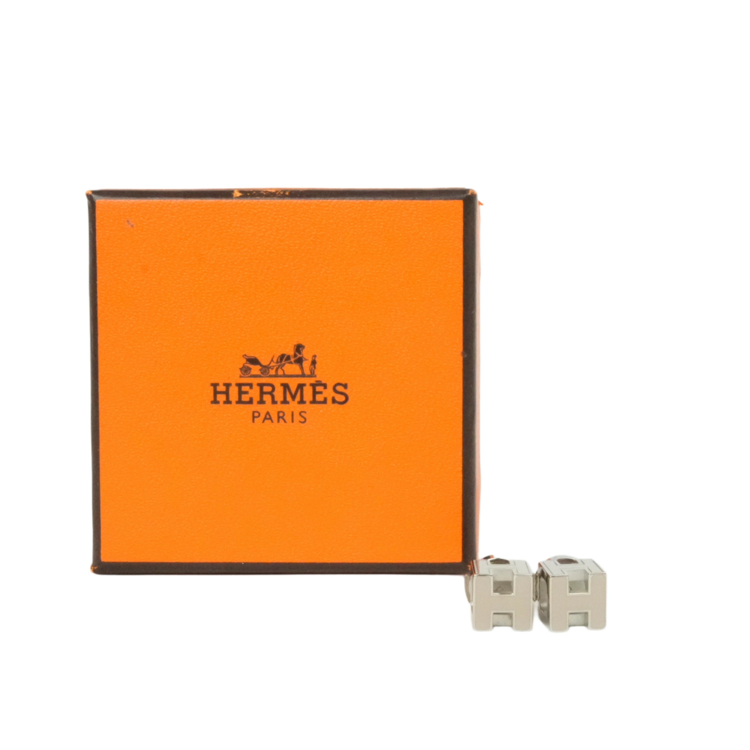 【中古・VINTAGE】エルメス カージュドアッシュ ピアス ラッカーメタル パラディウム クリーム シルバー ヴィンテージ HERMES Cage d'Ash Earrings