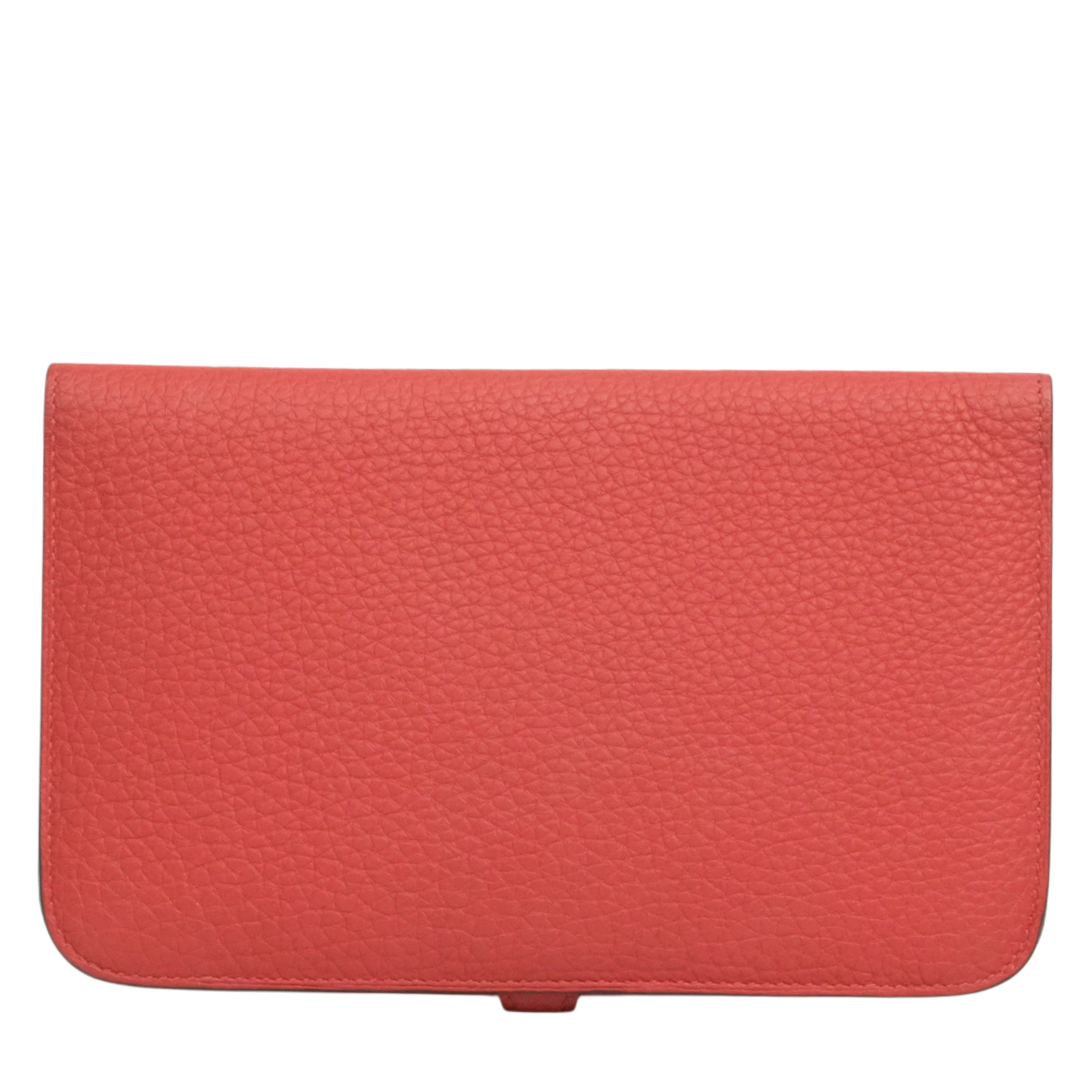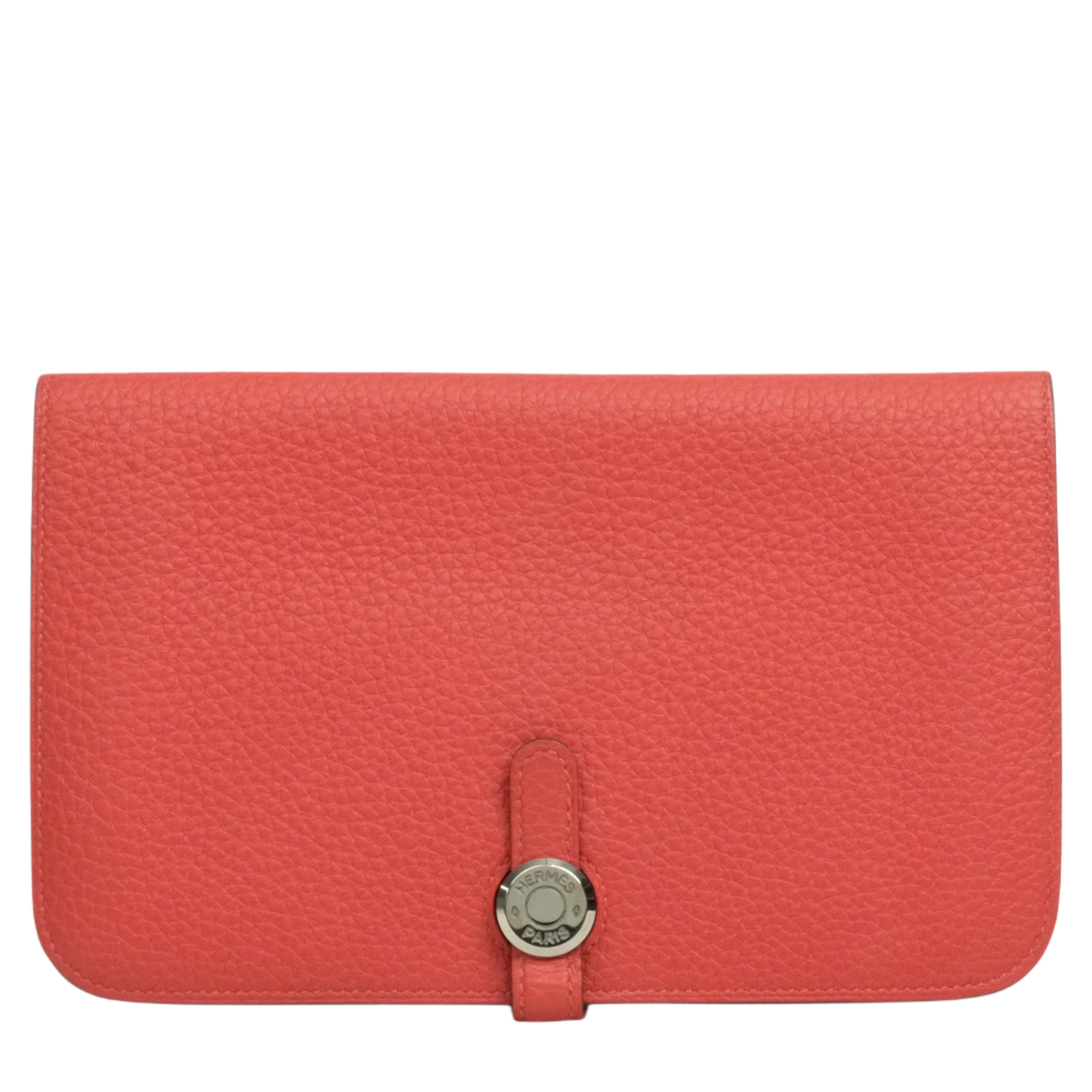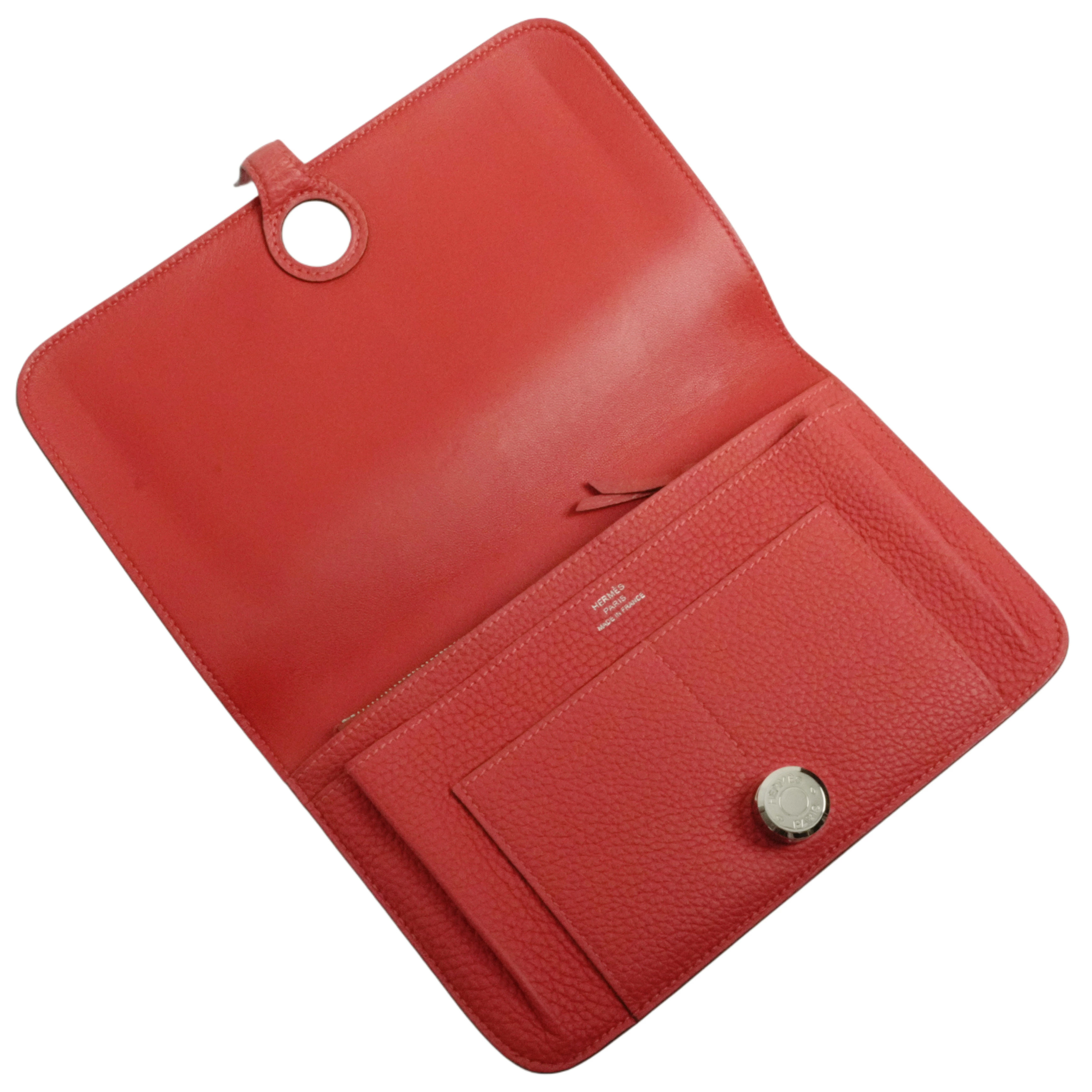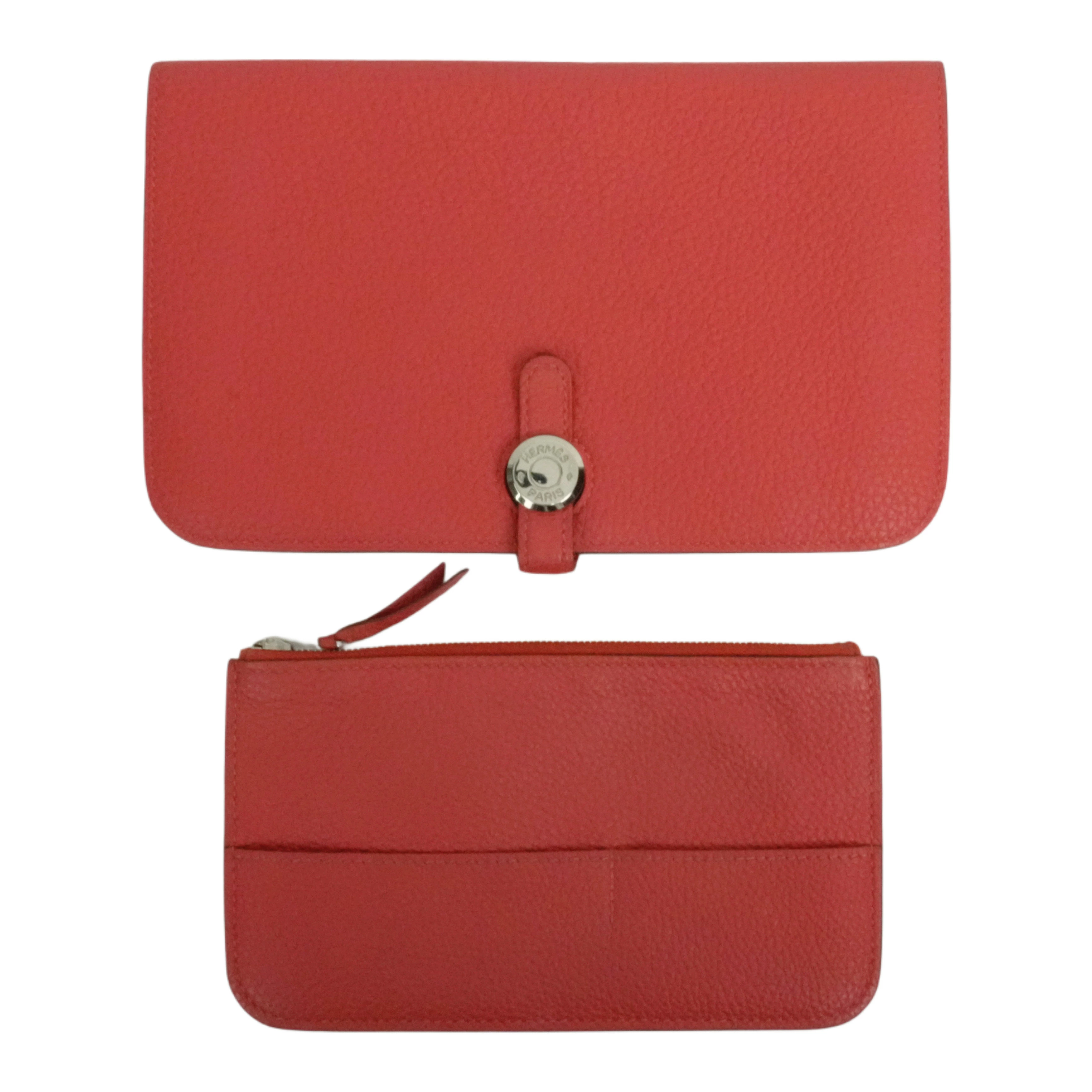 【中古・VINTAGE】HERMES エルメス ドゴンGM トリヨンクレマンス 財布 レッド シルバー レザー ヴィンテージ Dogon GM Taurillon Clemence Wallet