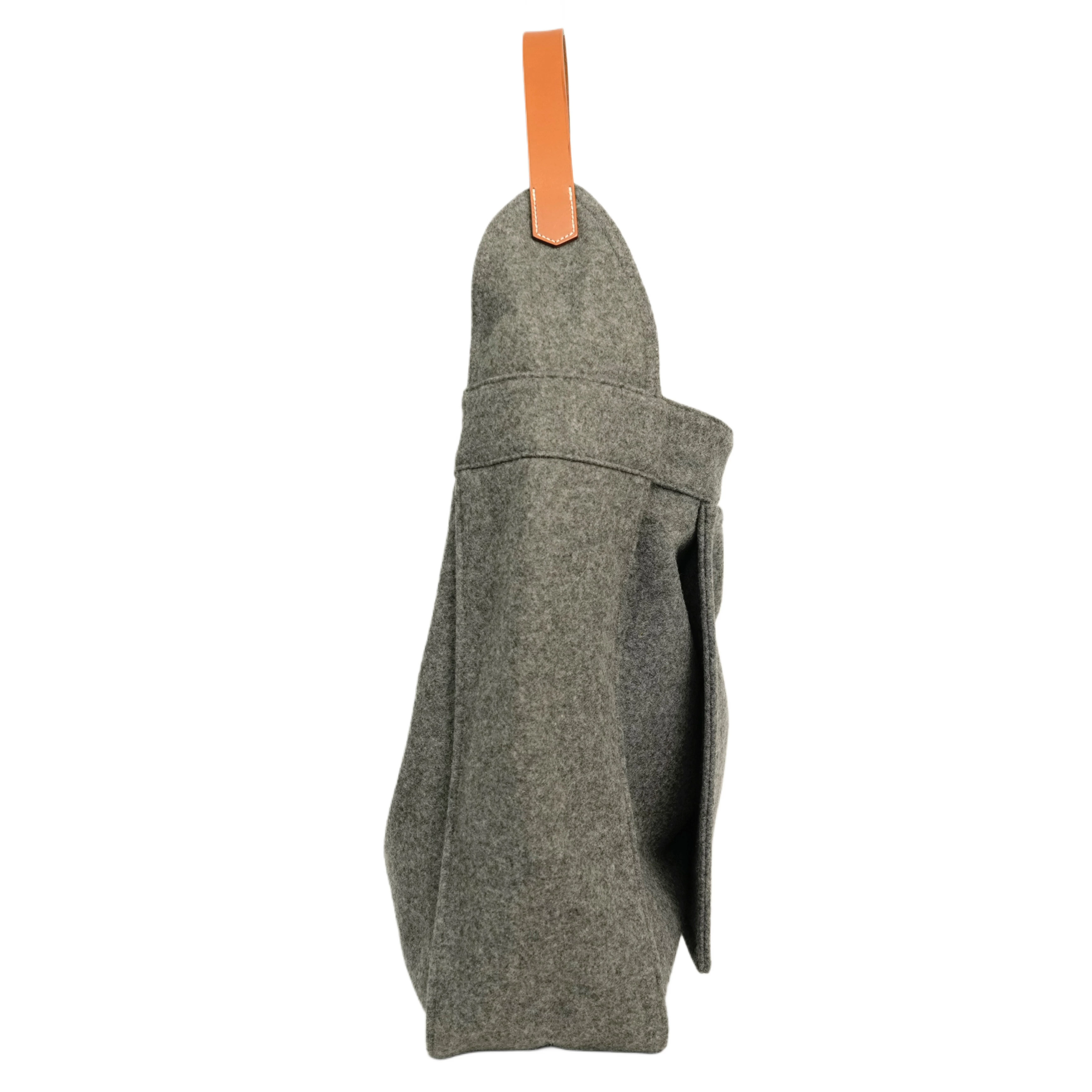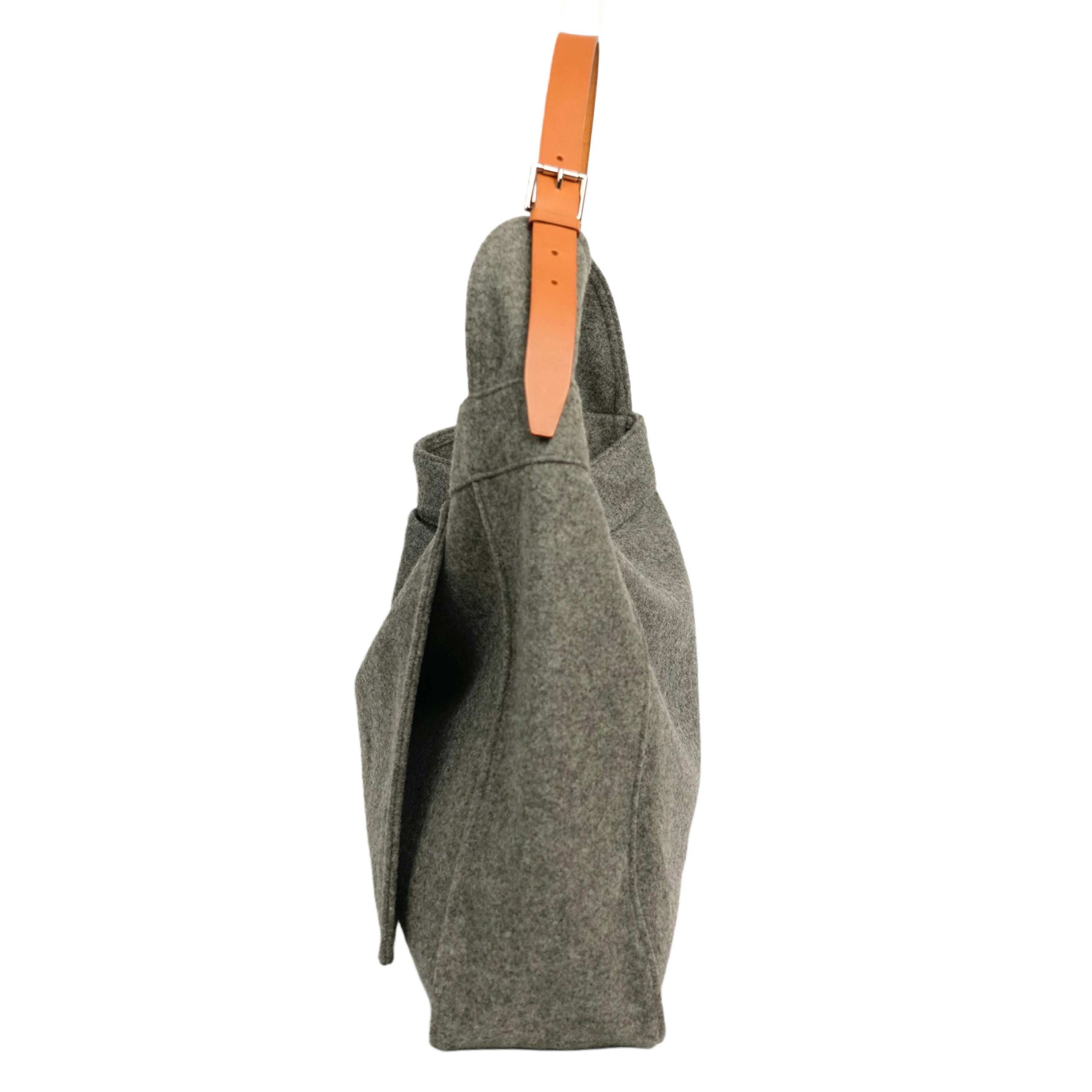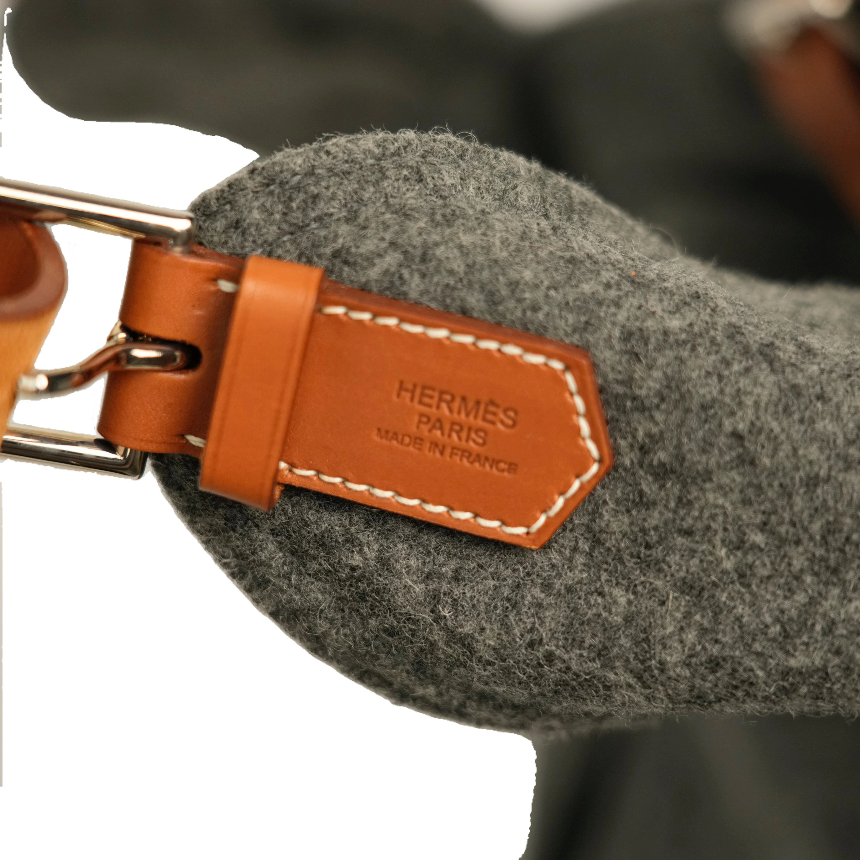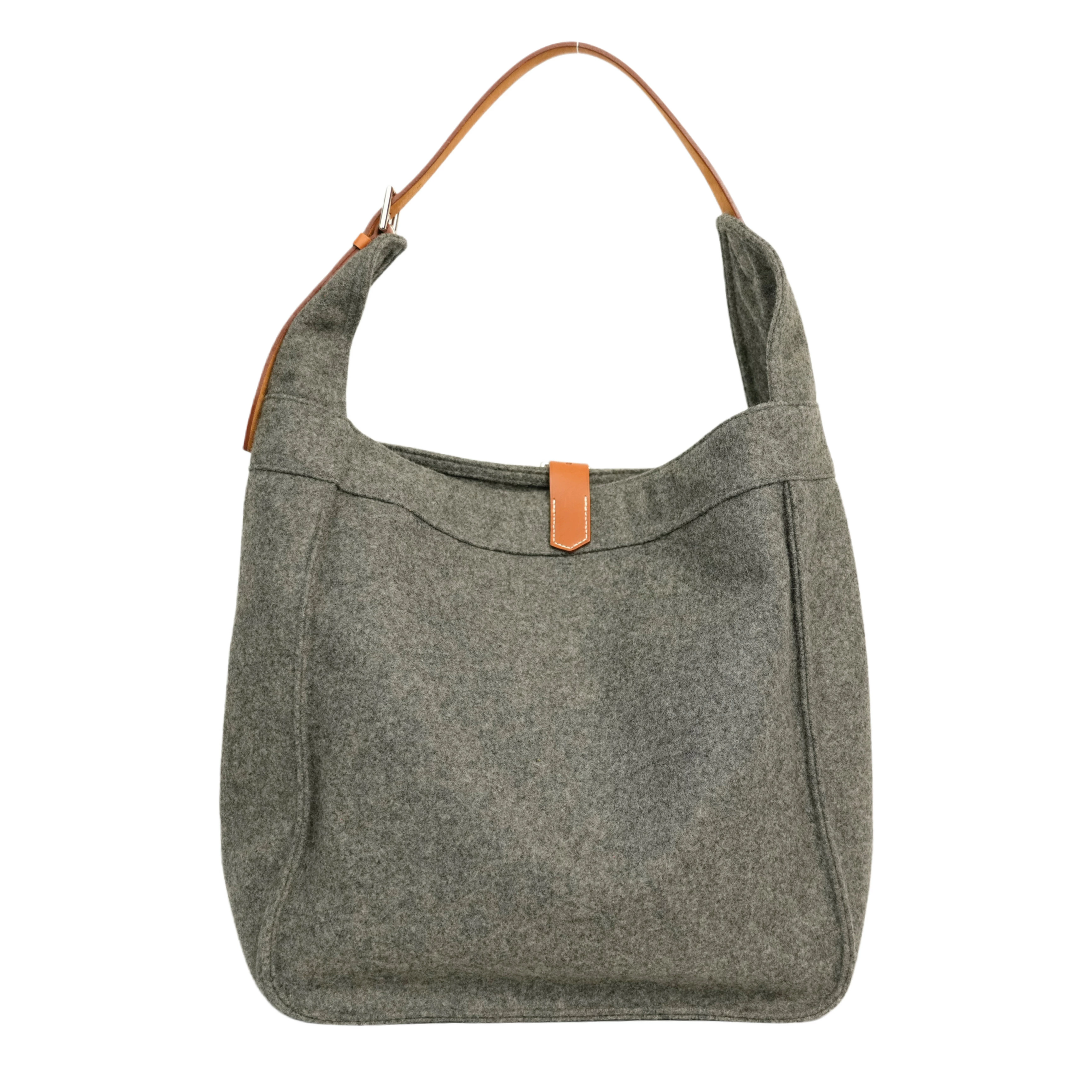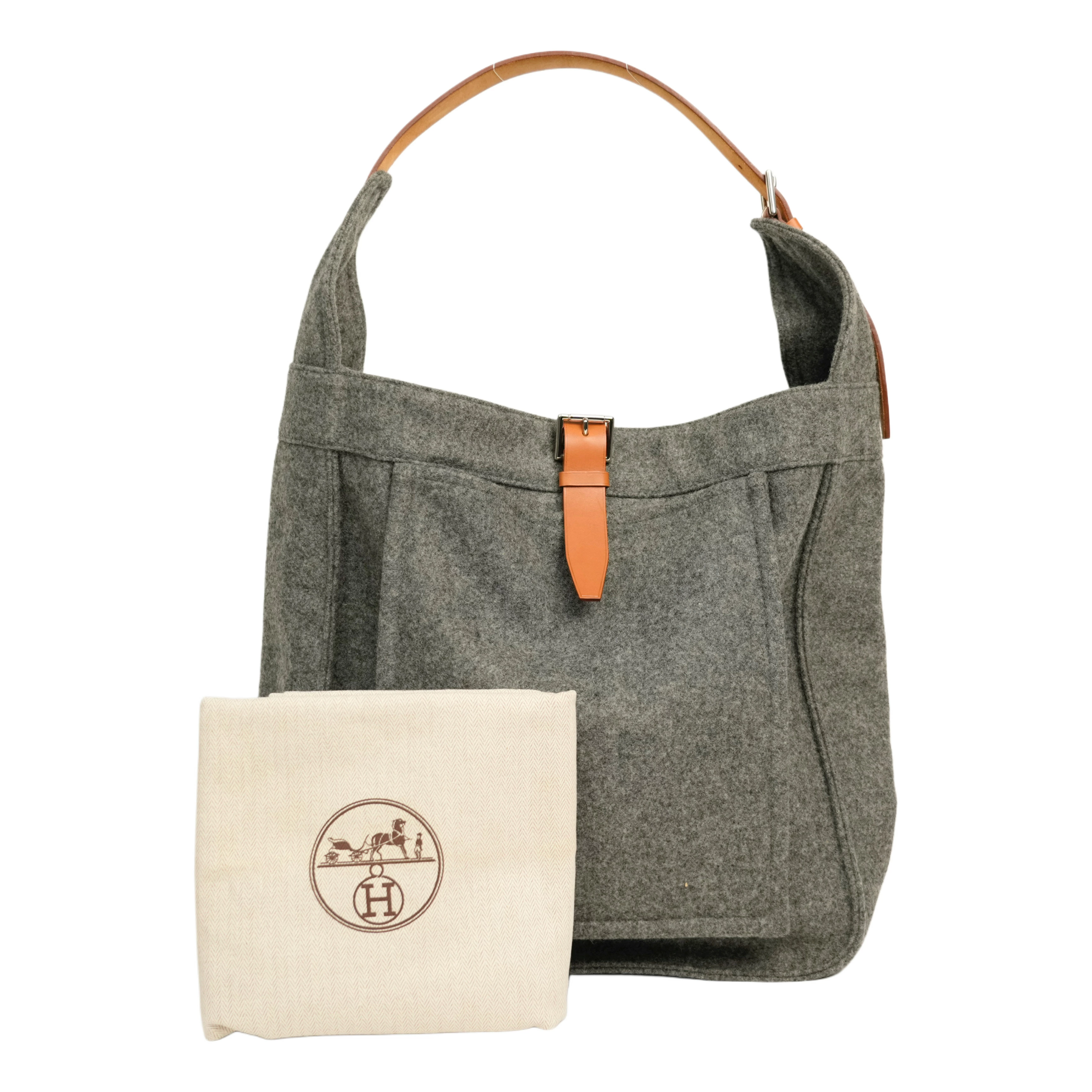 【中古・VINTAGE】HERMES マルワリGM トートバッグ/ショルダーバッグ 2Way レザー ウール グレー ブラウン シルバー ヴィンテージ Marwari GM Tote Bag/Shoulder Bag 2Way