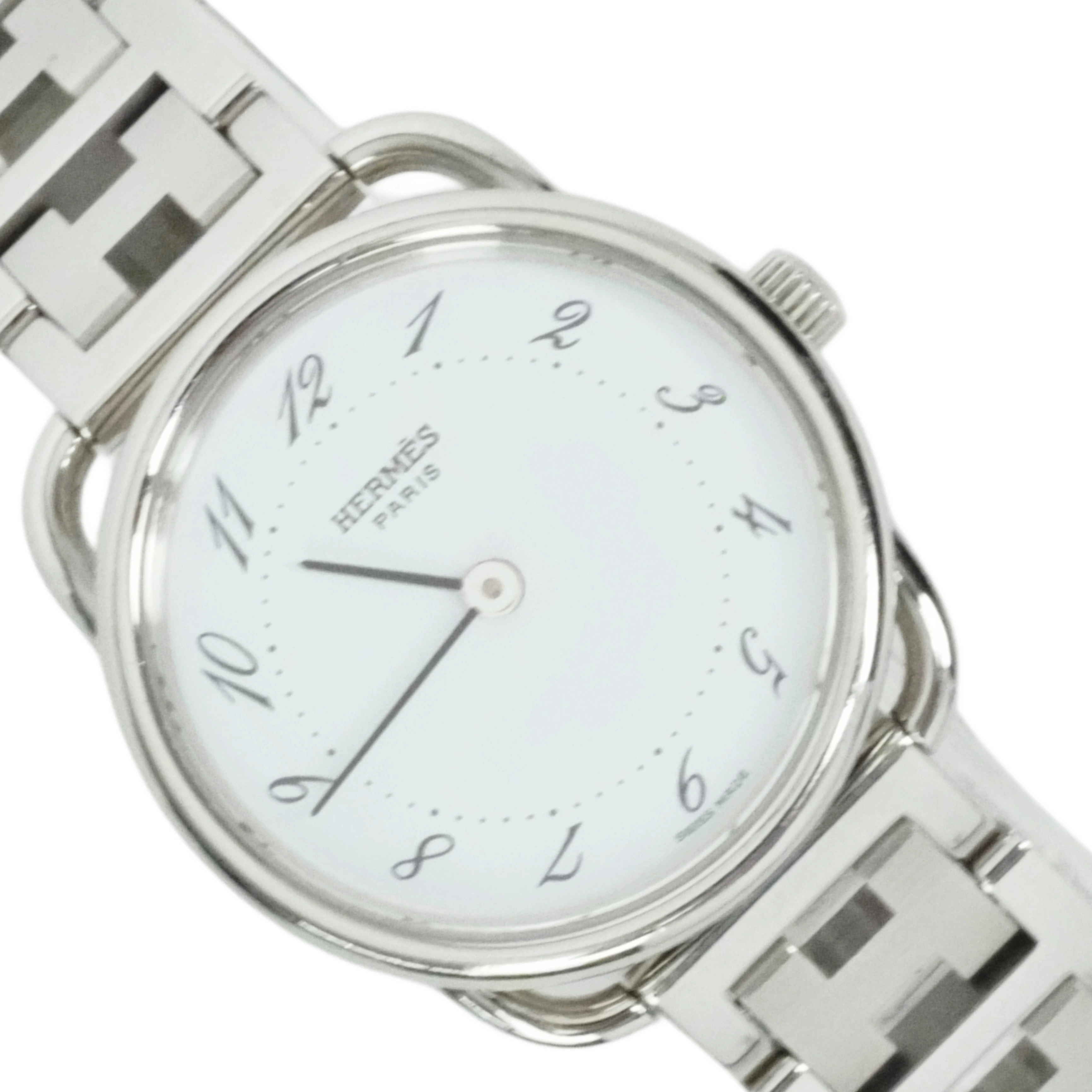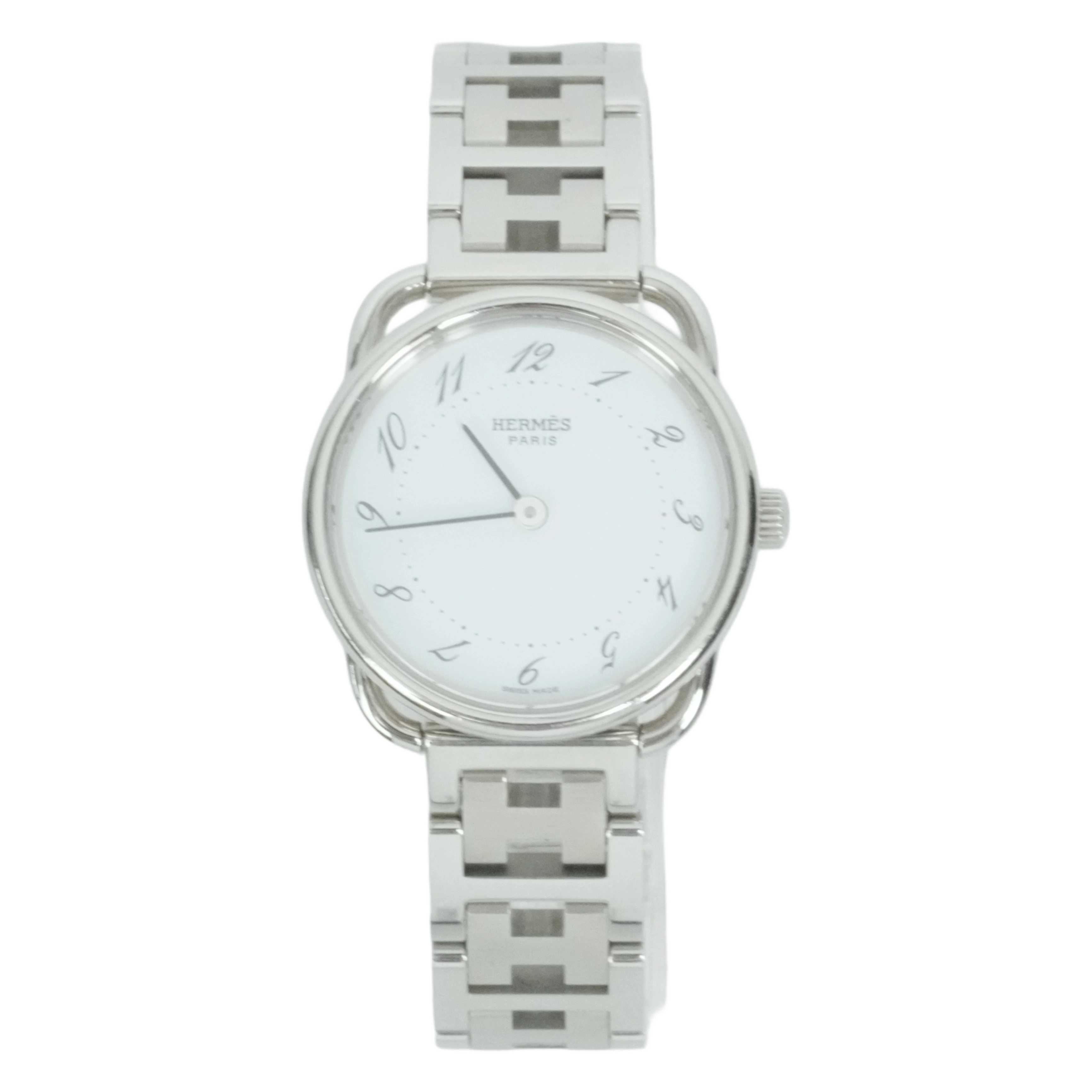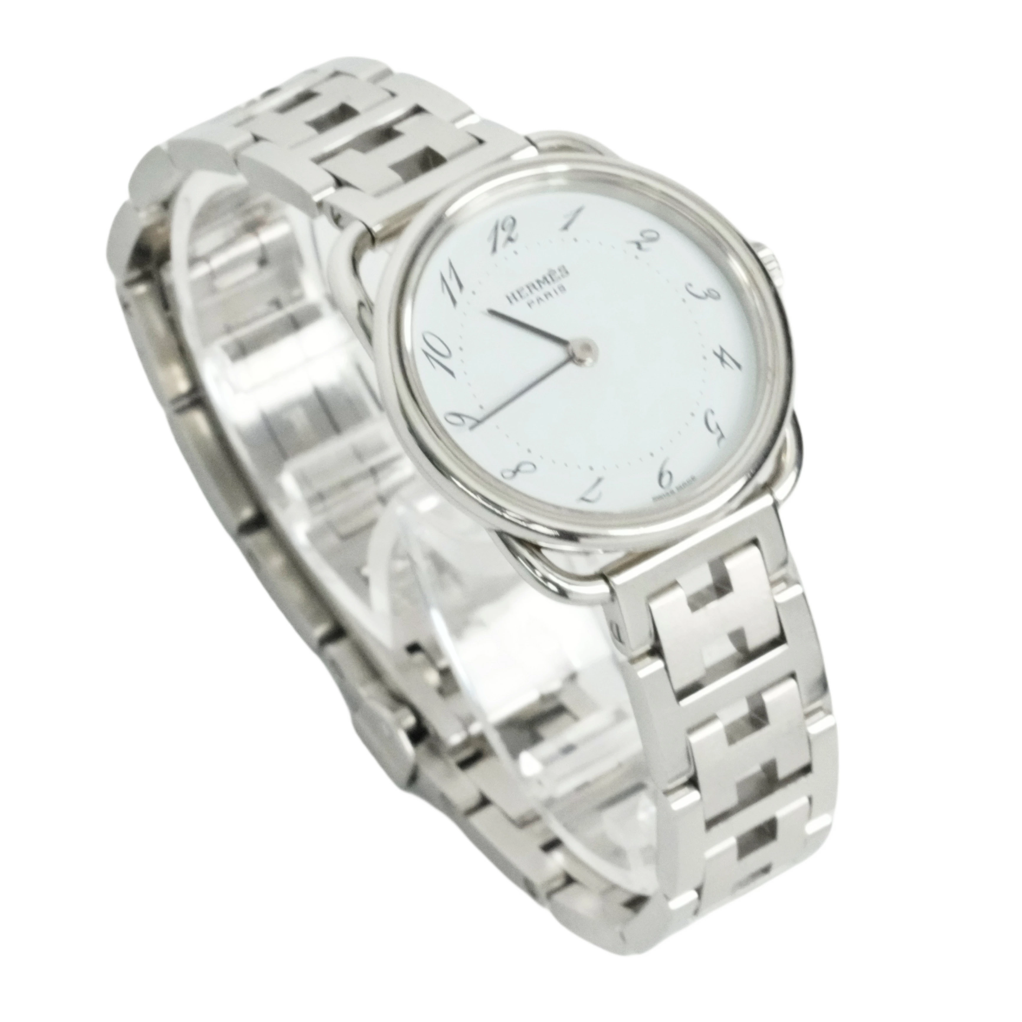 【中古・VINTAGE】 HERMES エルメス アルソー 時計 シルバー ホワイト レザー ヴィンテージ