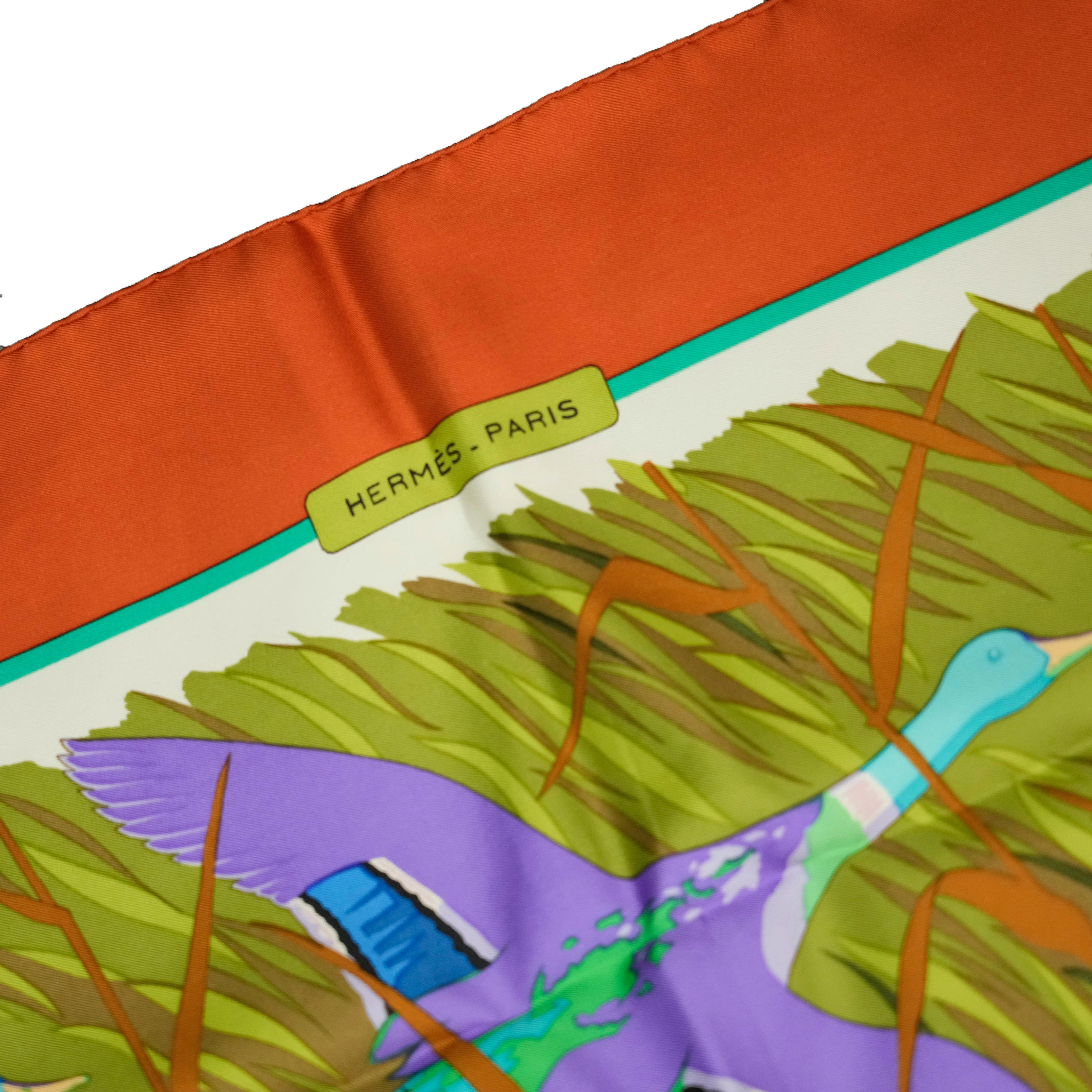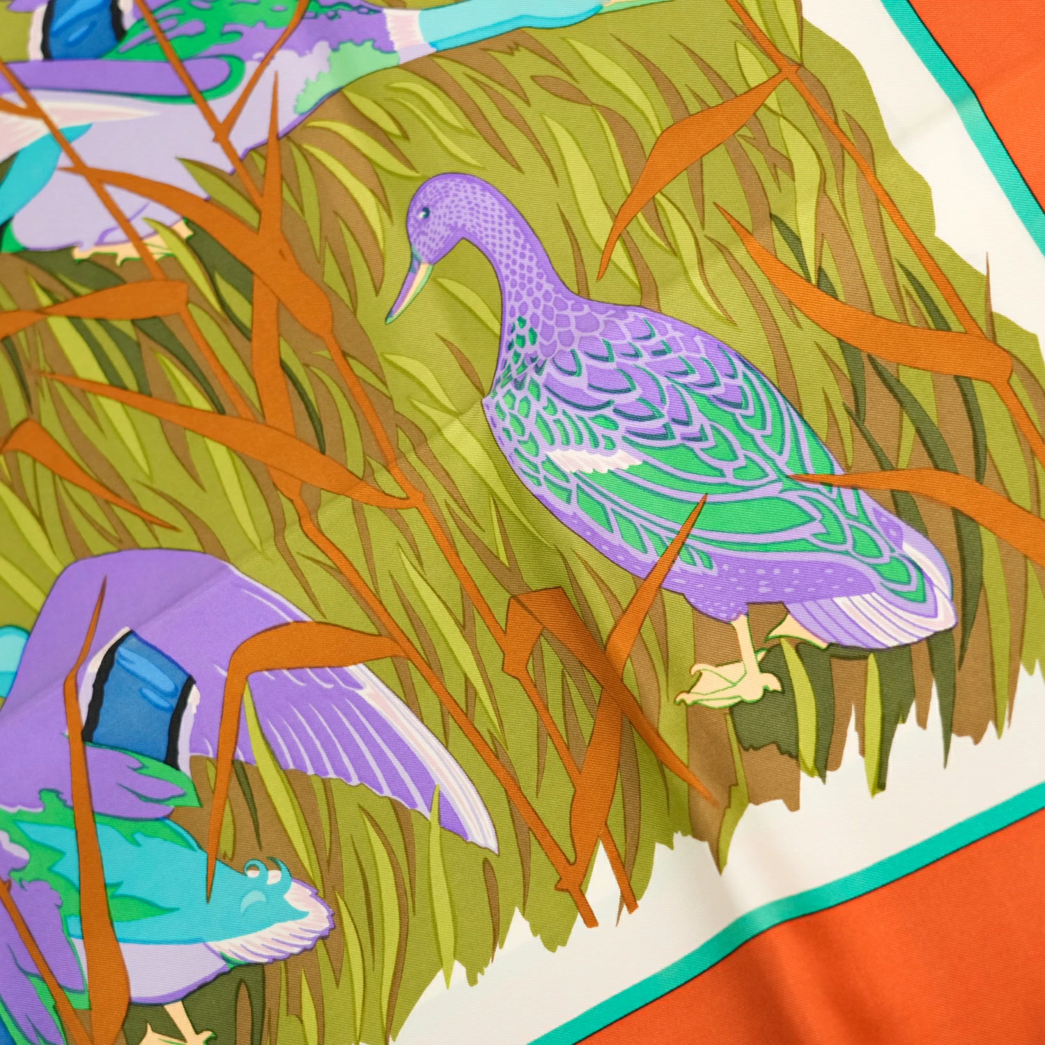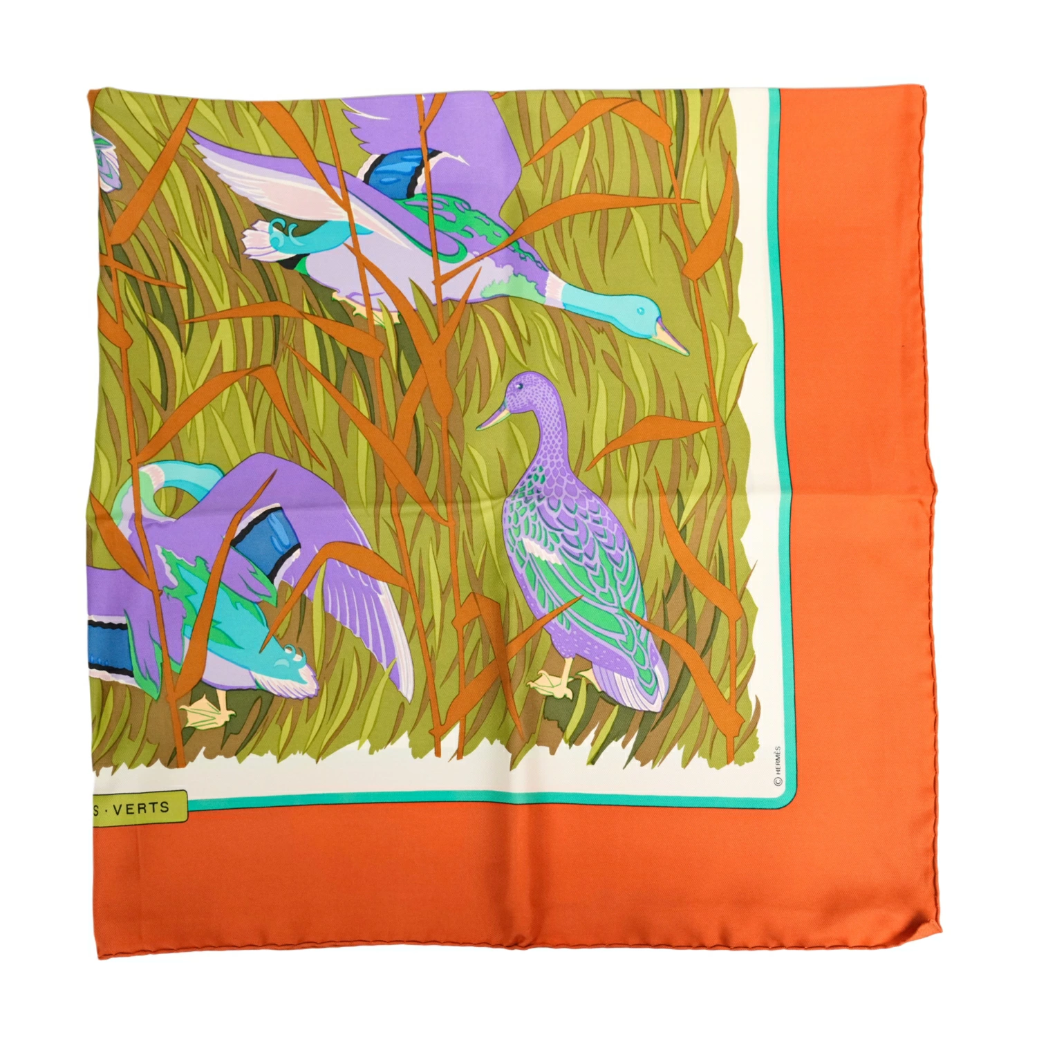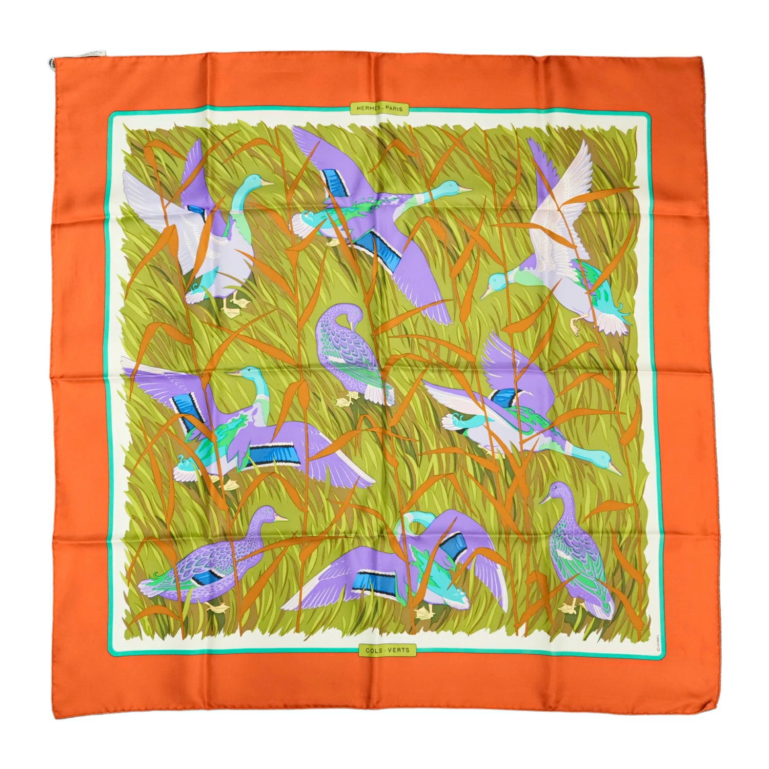 【中古・VINTAGE】HERMES エルメス カレ90 COLS VERTS マガモ スカーフ シルク テラコッタ グリーン マルチカラーヴィンテージ Carre 90 Cols Verts Mallard Scarf