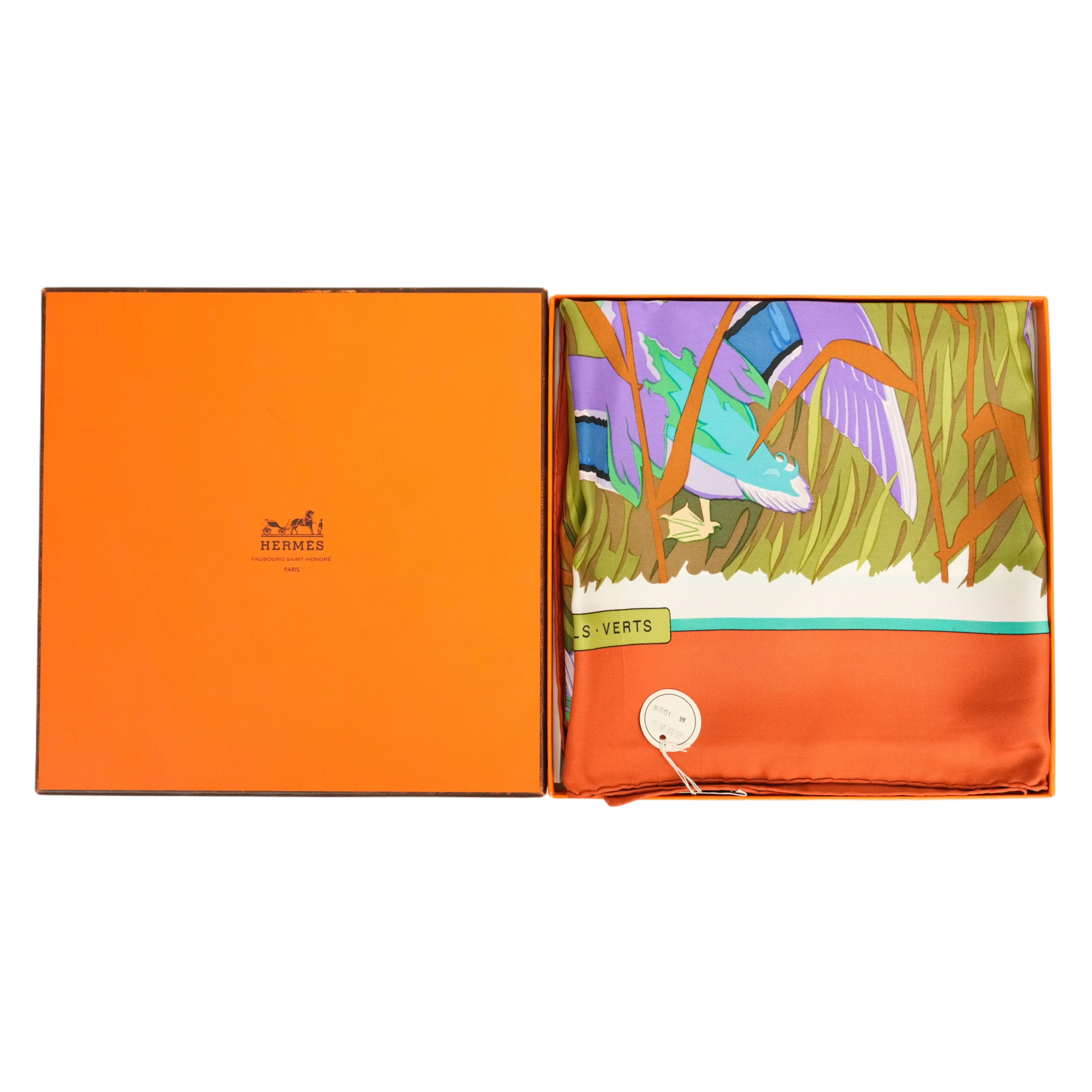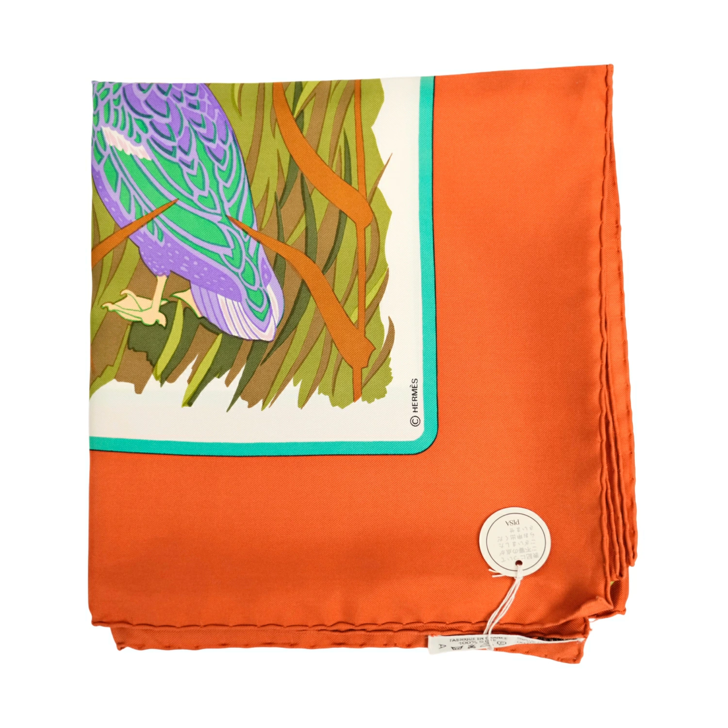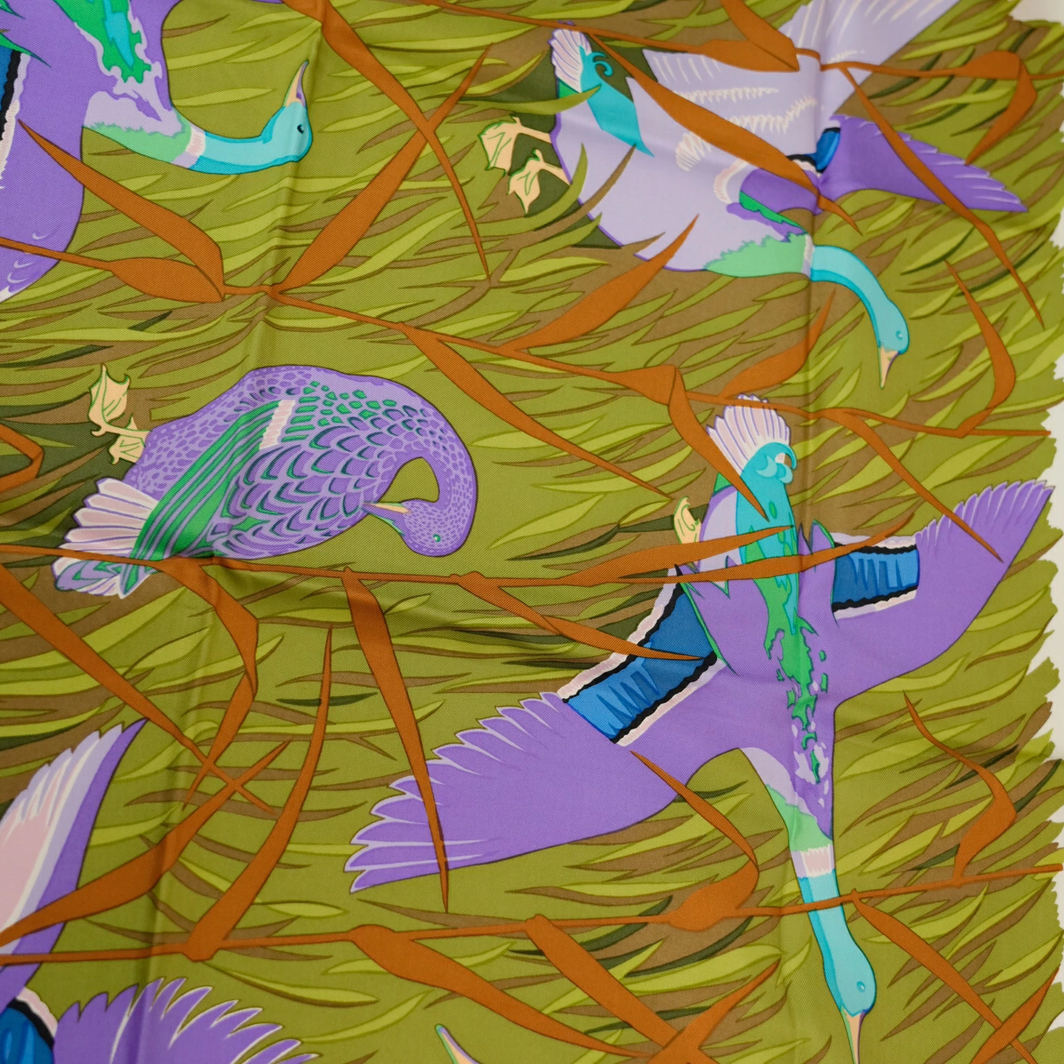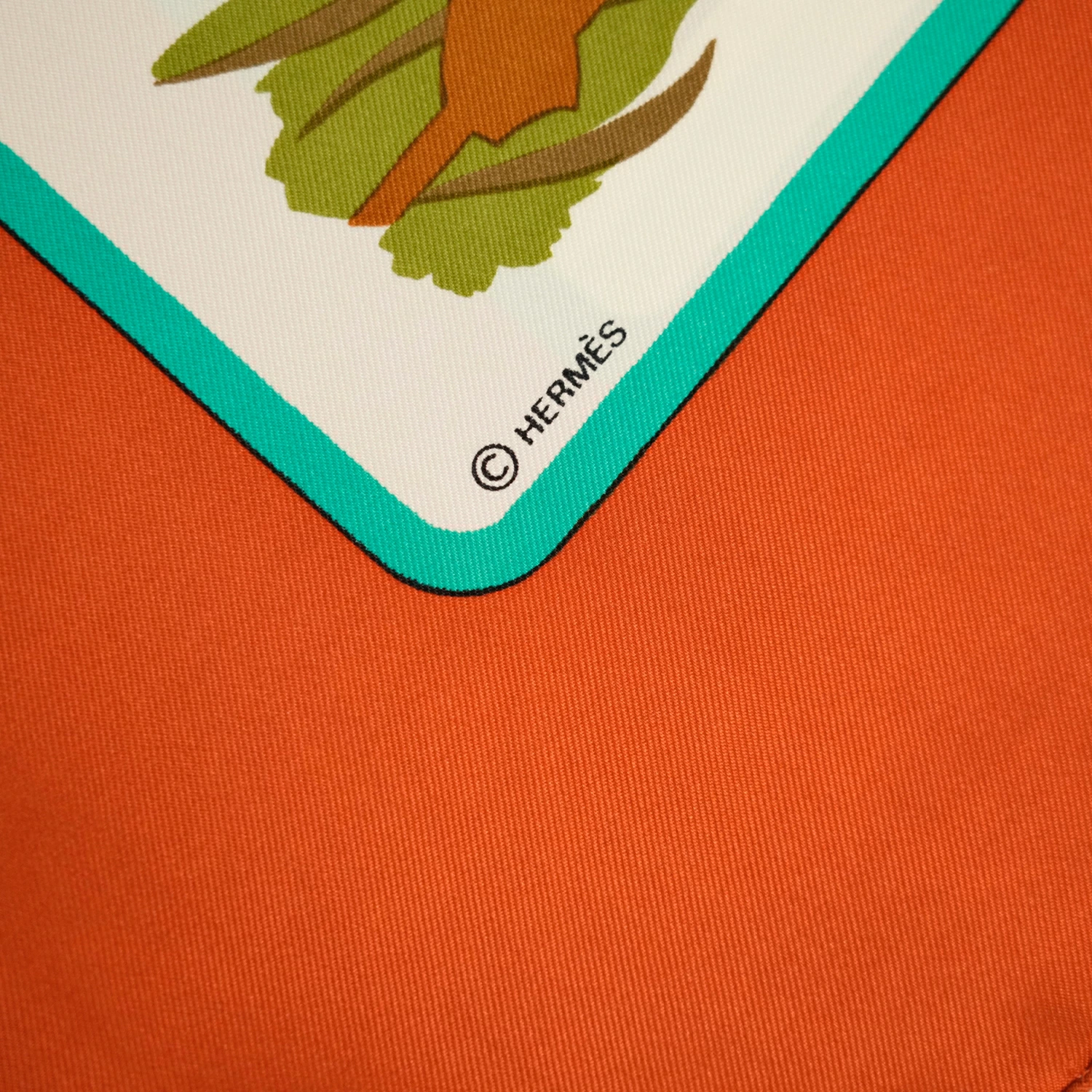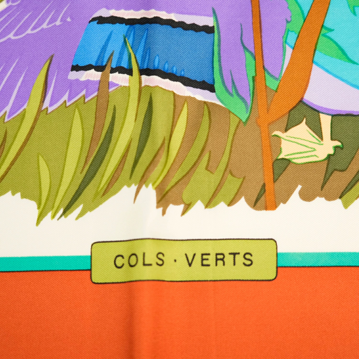 【中古・VINTAGE】HERMES エルメス カレ90 COLS VERTS マガモ スカーフ シルク テラコッタ グリーン マルチカラーヴィンテージ Carre 90 Cols Verts Mallard Scarf