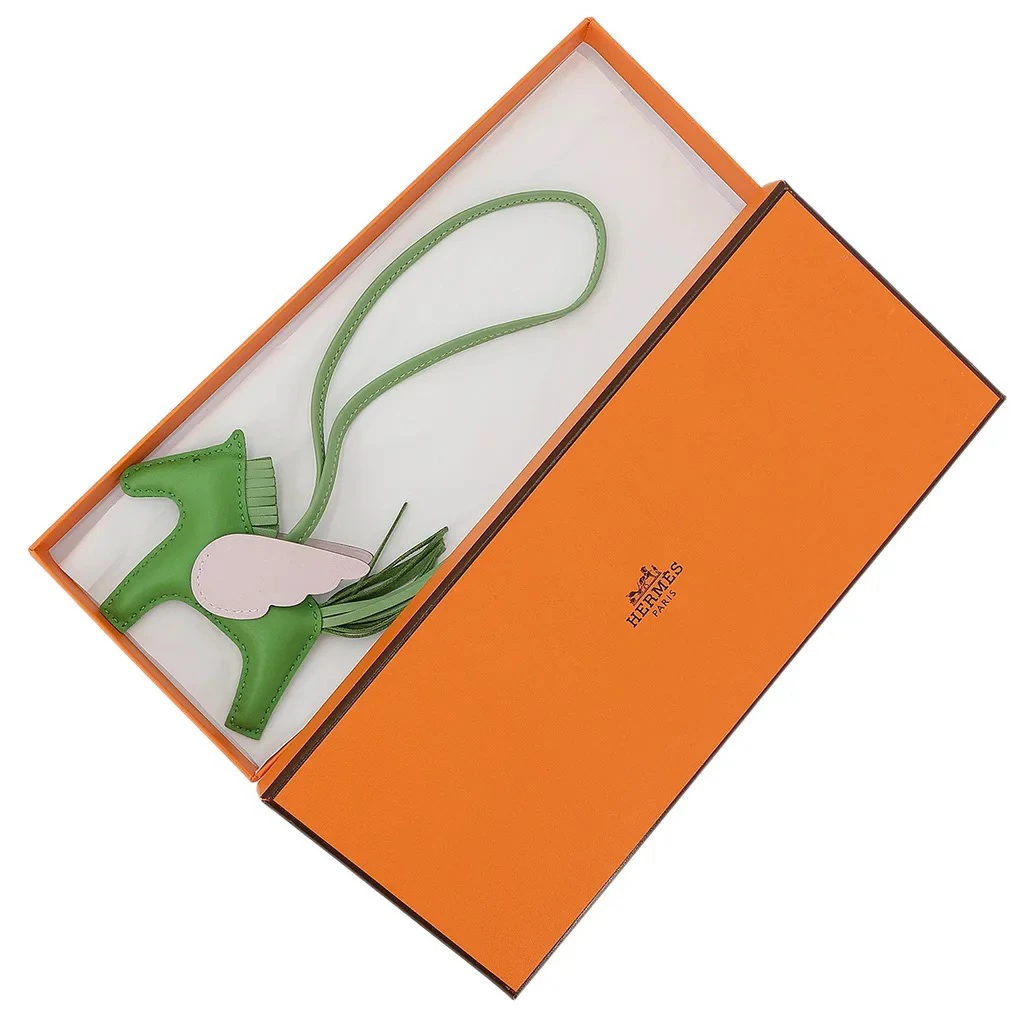 【中古・VINTAGE】 HERMES エルメス 馬 チャーム グリーン ライトピンクグレー レザー ヴィンテージ Horse Charm