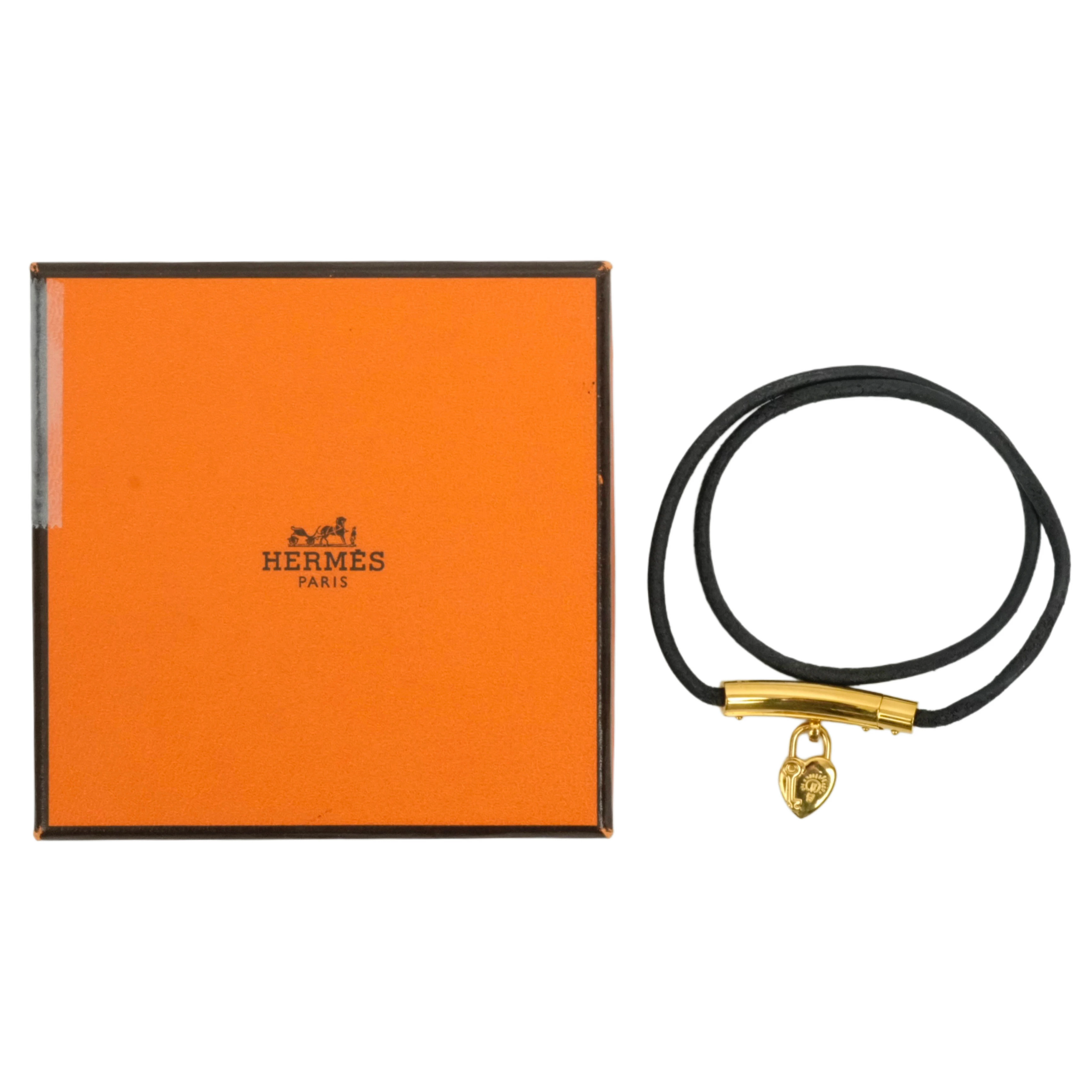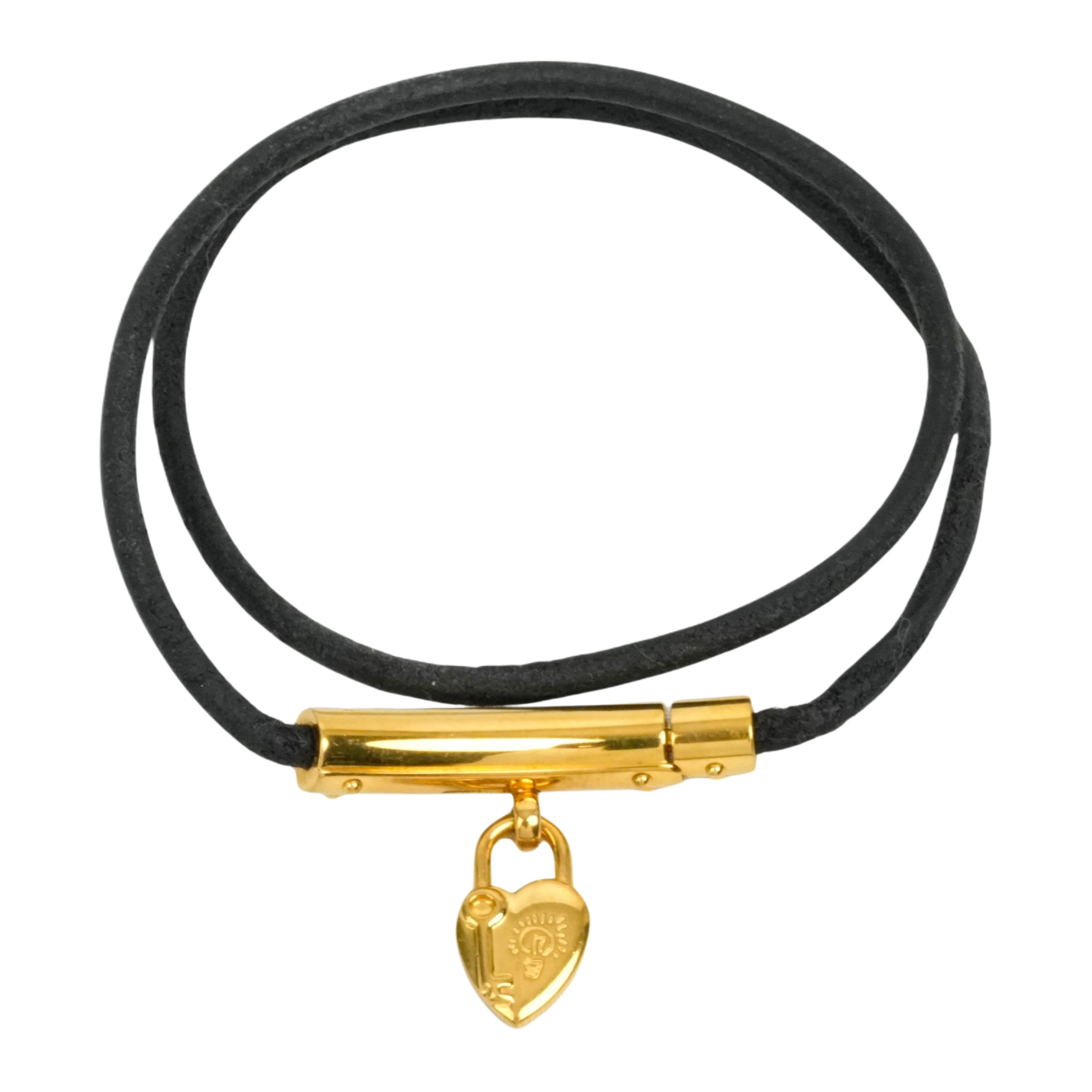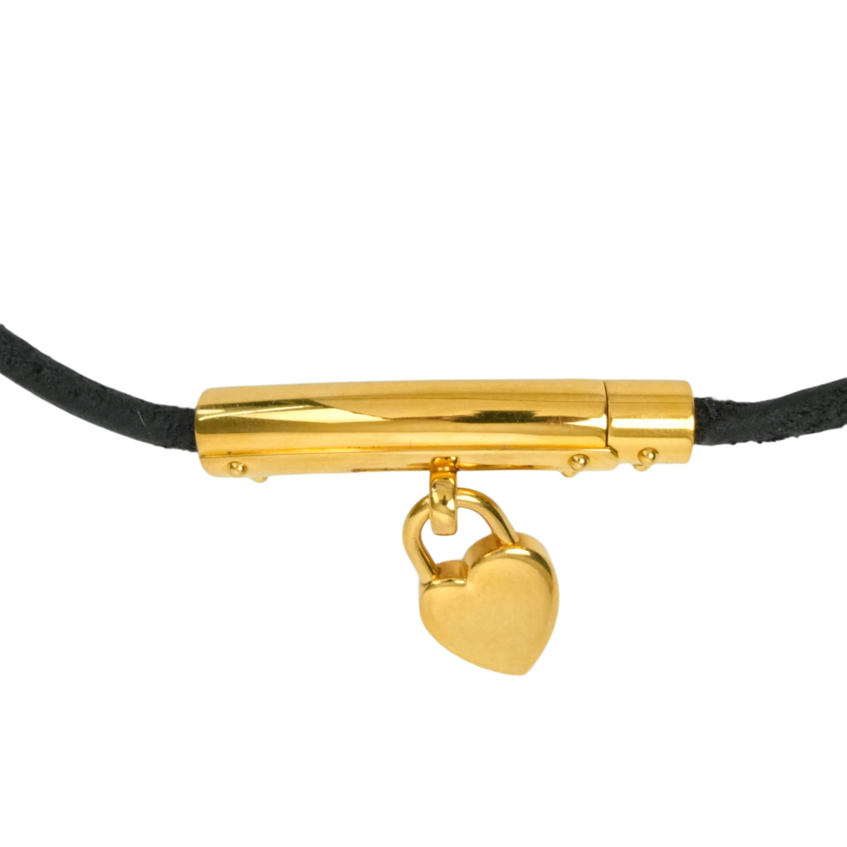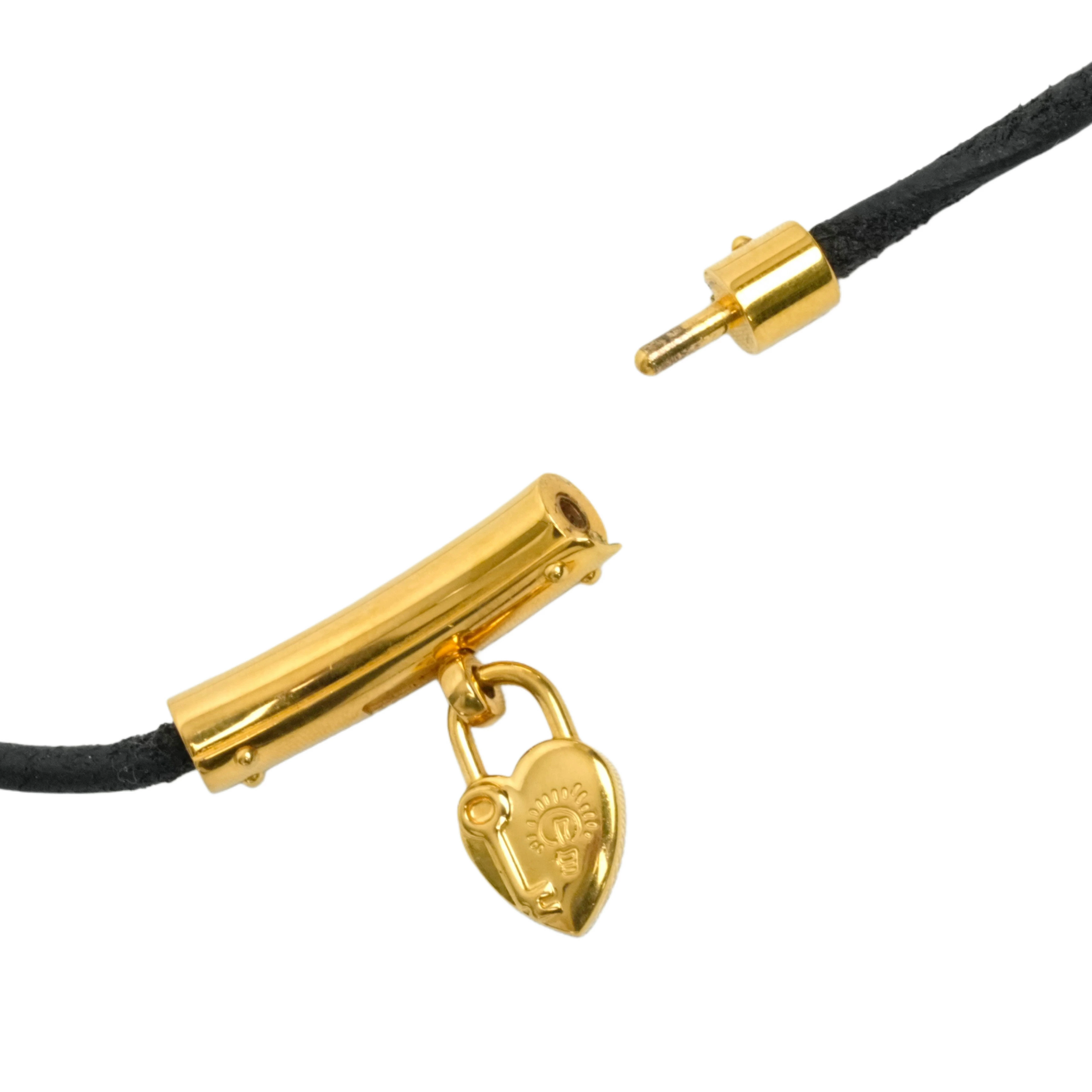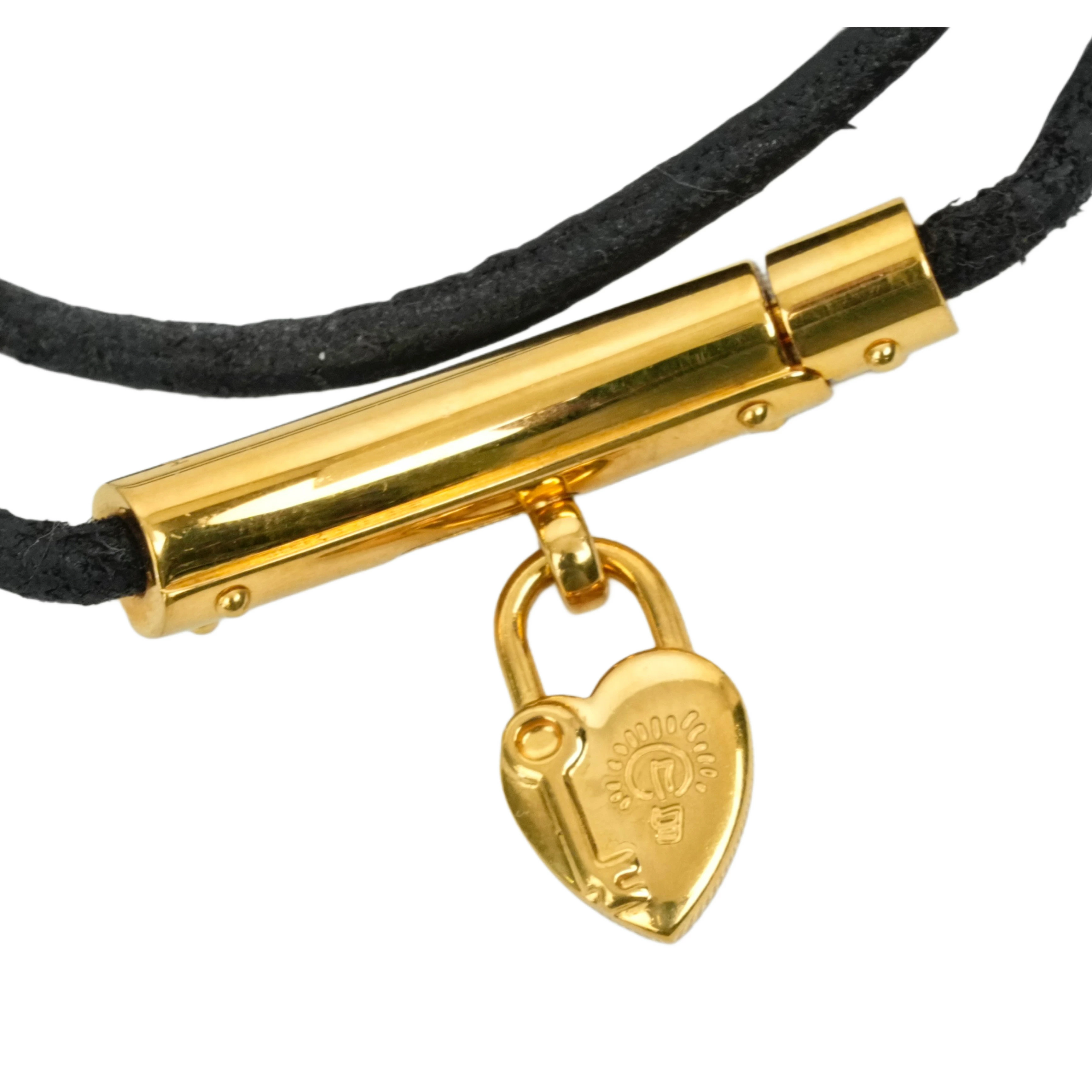【中古・VINTAGE】 HERMES エルメス ヴィヴィリデ ハートカデナ チョーカー ブラック ゴールド レザー ヴィンテージ Vivier Heart Padlock Choker