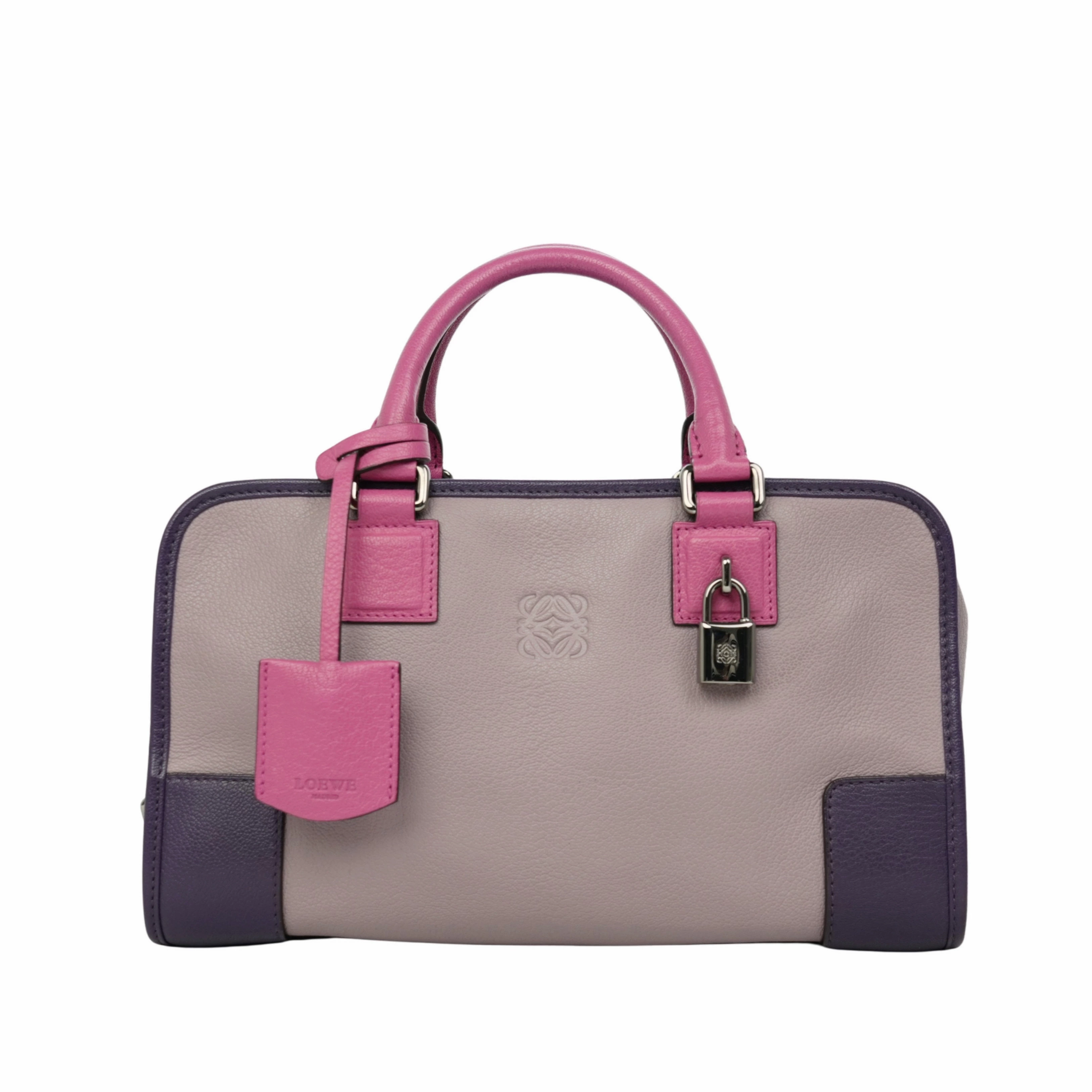 【中古・VINTAGE】LOEWE ロエベ アマソナ ハンドバッグ レザー パープル ピンク シルバー ヴィンテージ a Handbag