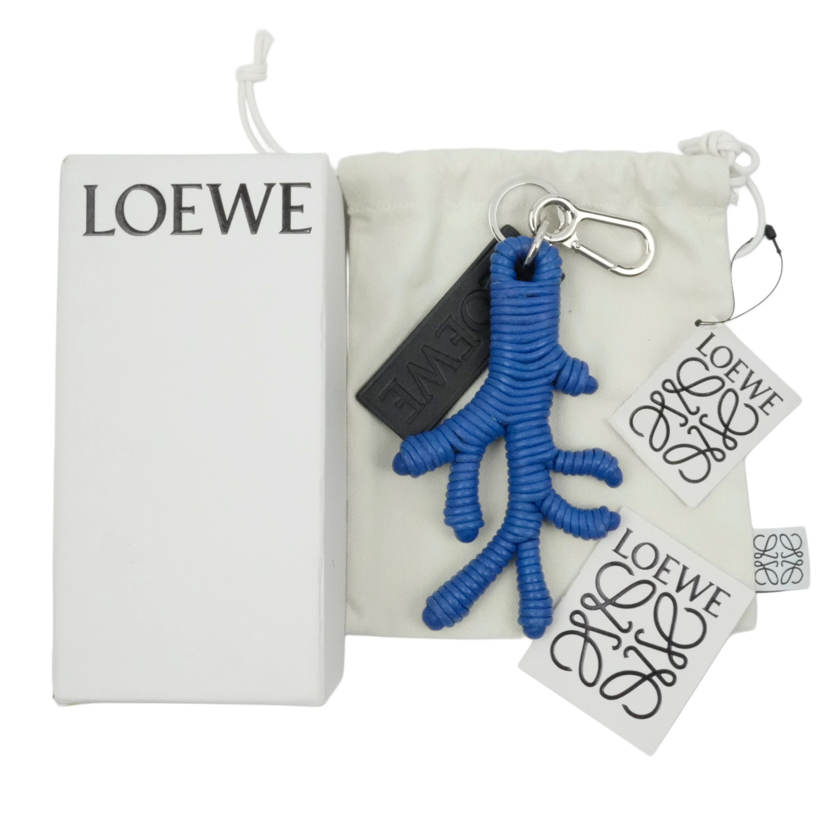 [Pre-owned/VINTAGE] LOEWE Coral Motif Keychain, Leather, Blue, Black, Silver, Vintage