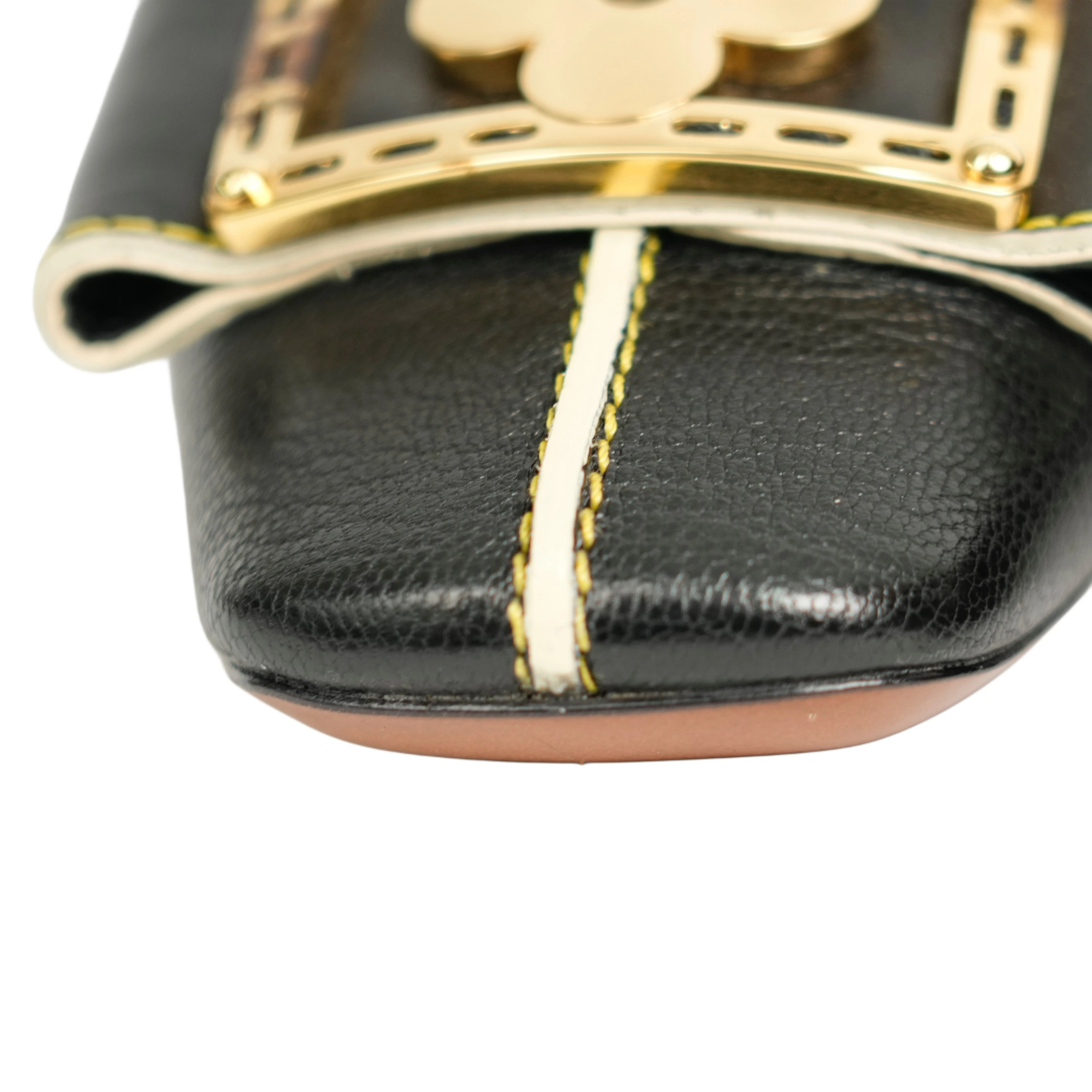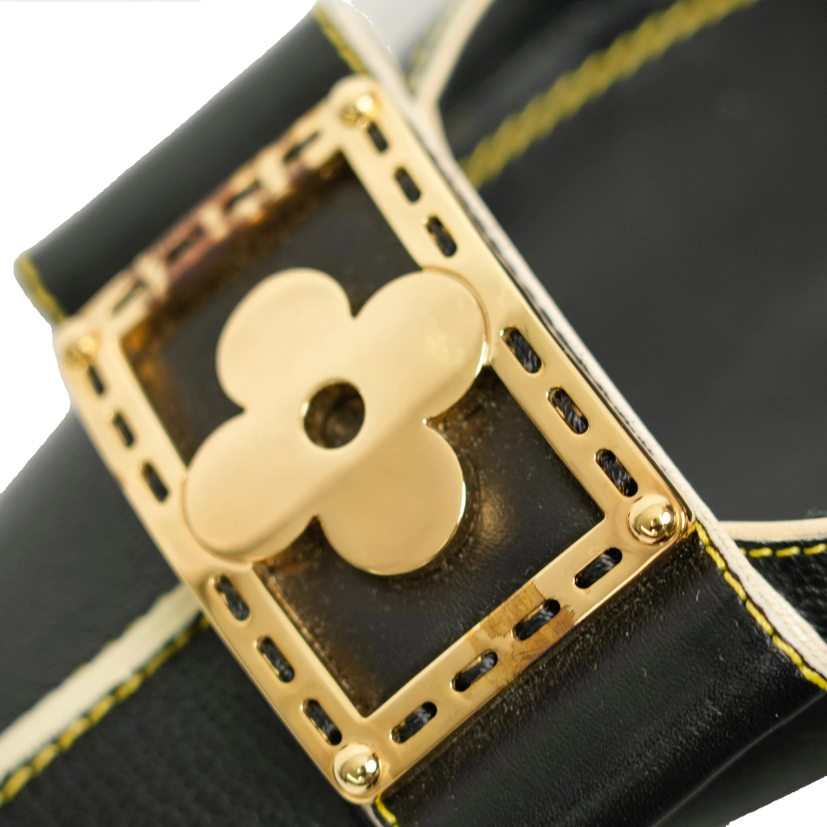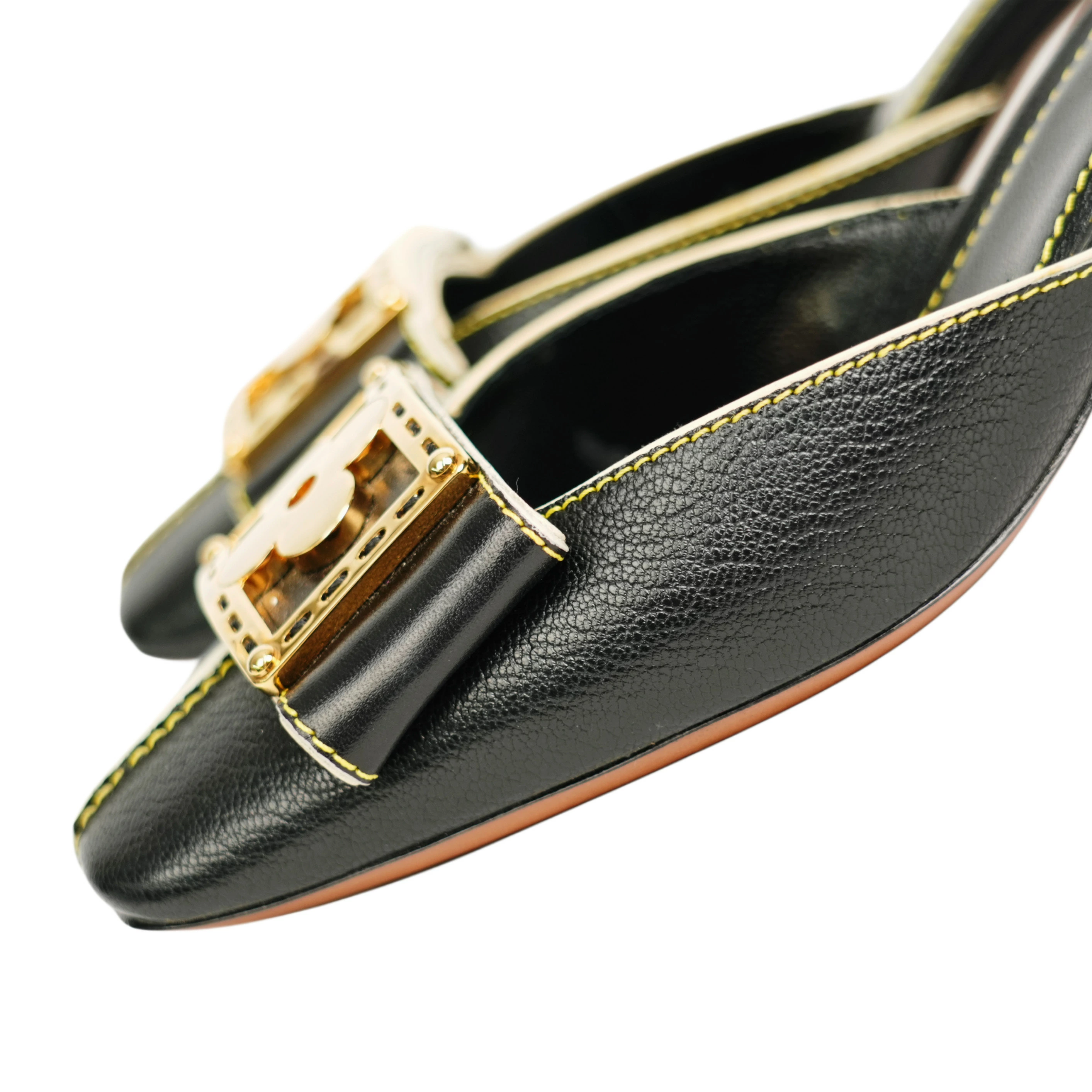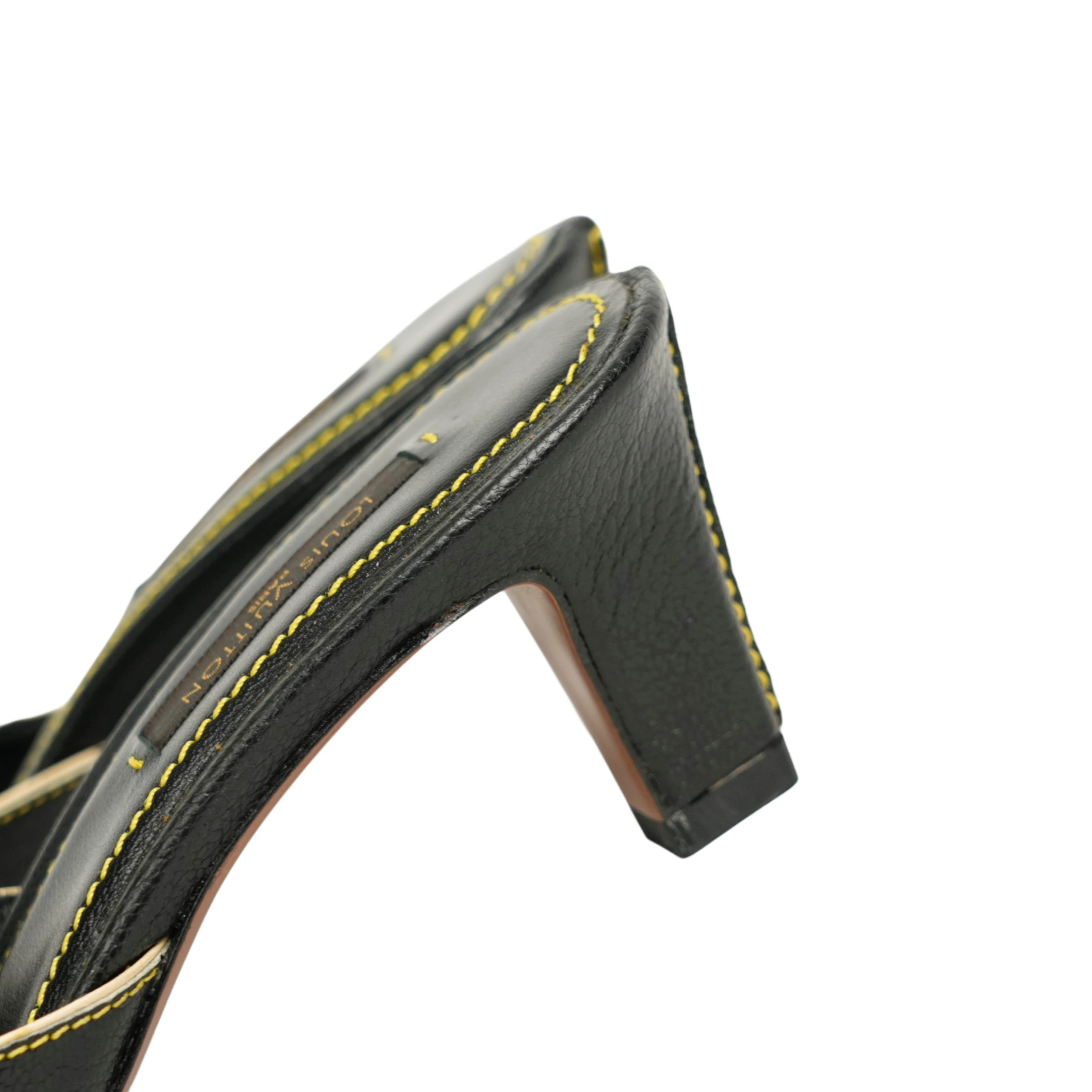 【中古・VINTAGE】 LOUIS VUITTON ルイヴィトン スハライン ミュール 23.5cm ブラック ホワイト ゴールド ヴィンテージ Suhali Line Mules