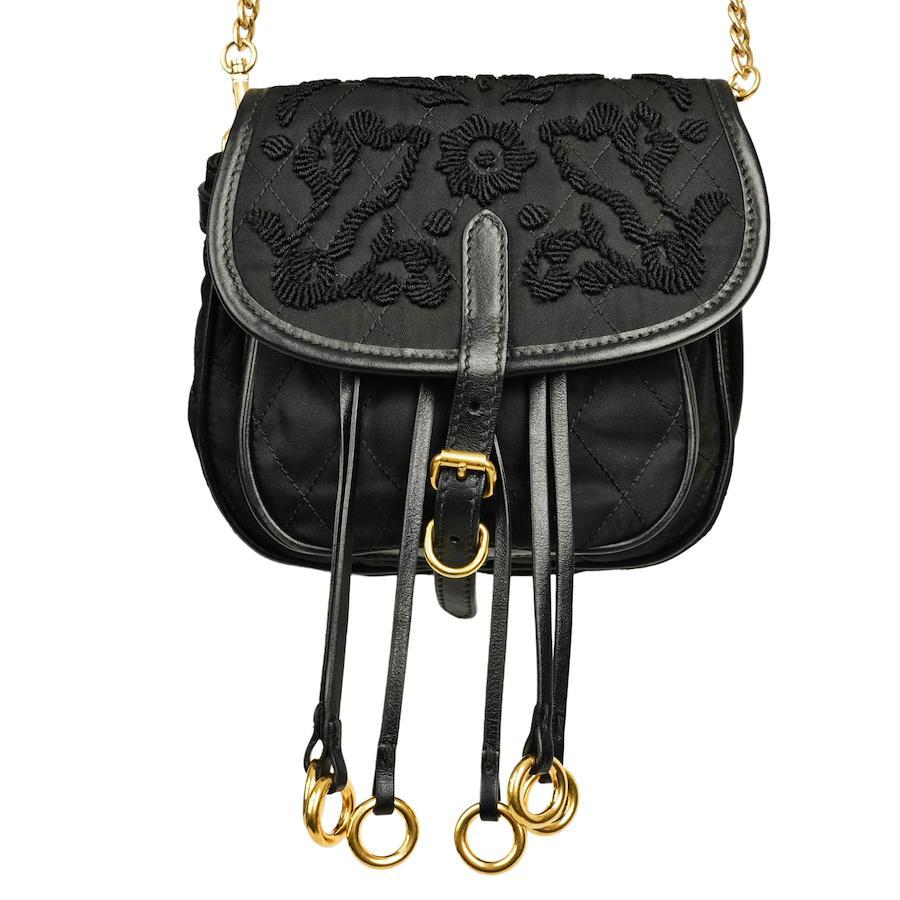 PRADA 刺繍 フラワー ナイロン ショルダーバッグ/ウェストバッグ