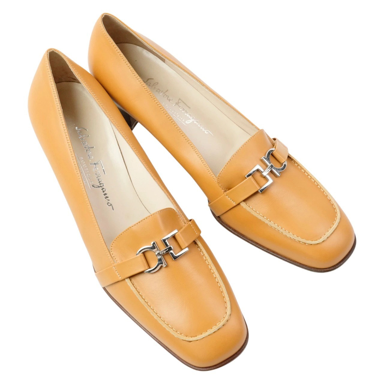 【中古・VINTAGE】 SALVATORE FERRAGAMO サルヴァトーレフェラガモ パンプス ベージュ レザー ヴィンテージ Pumps Shoes