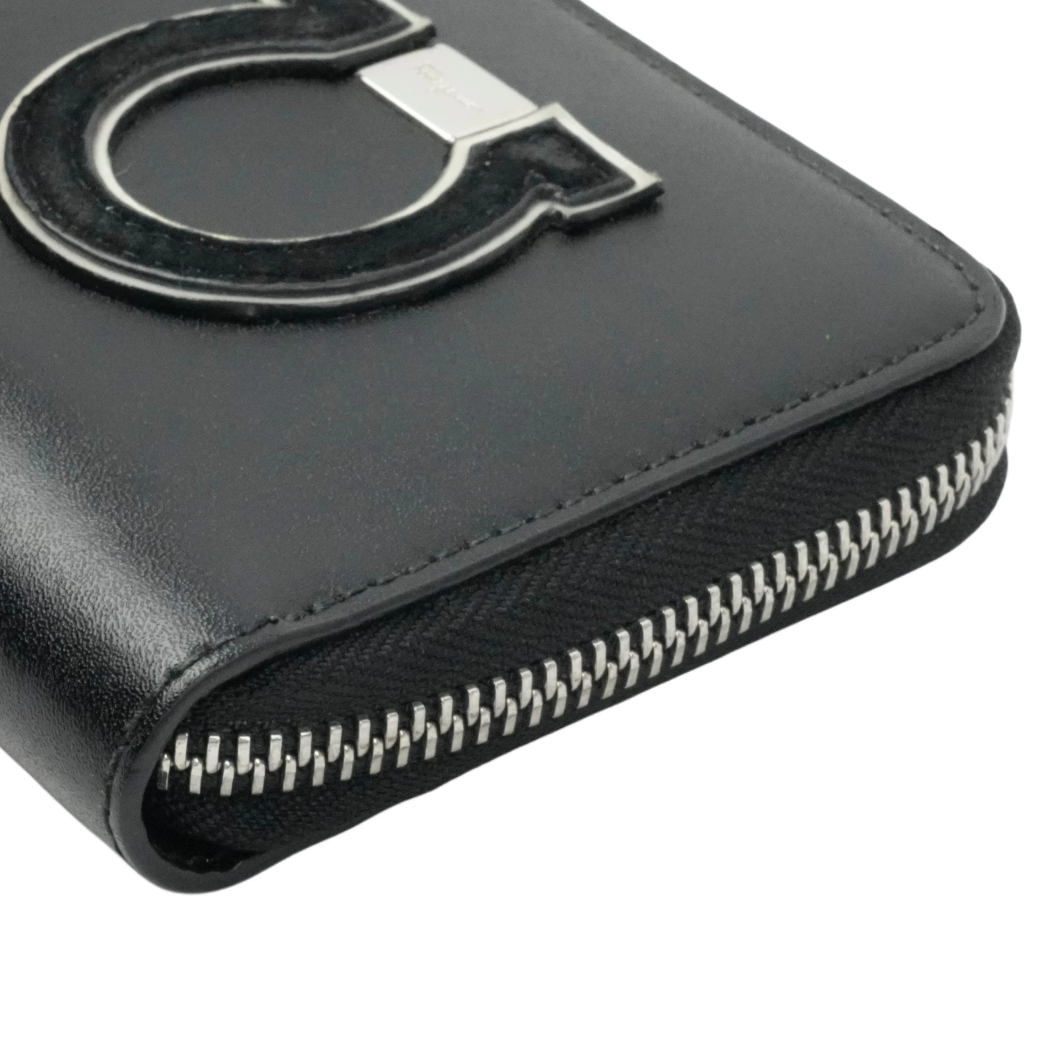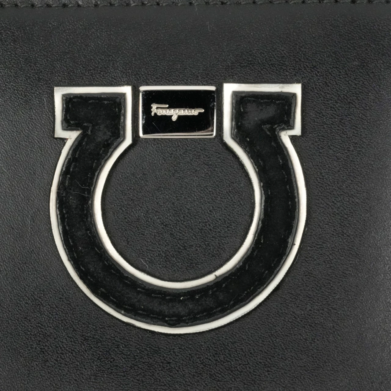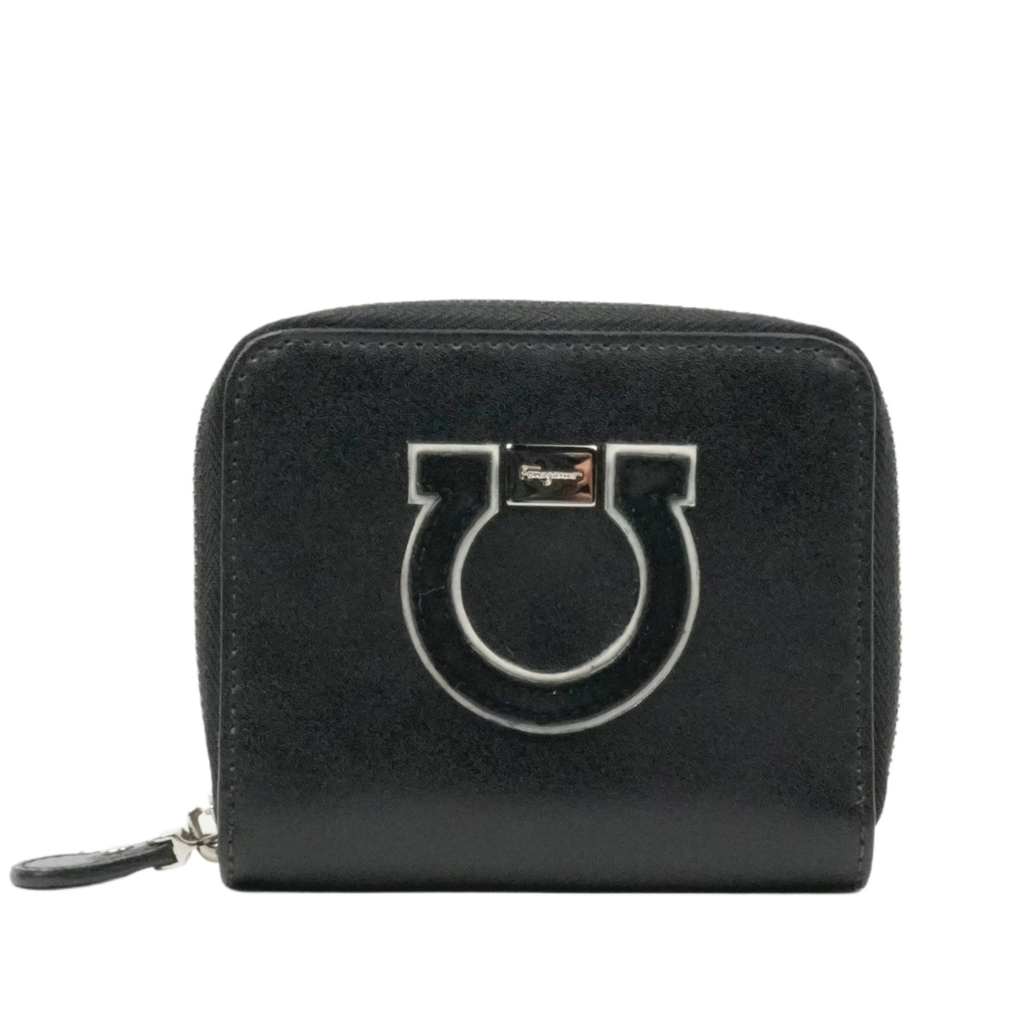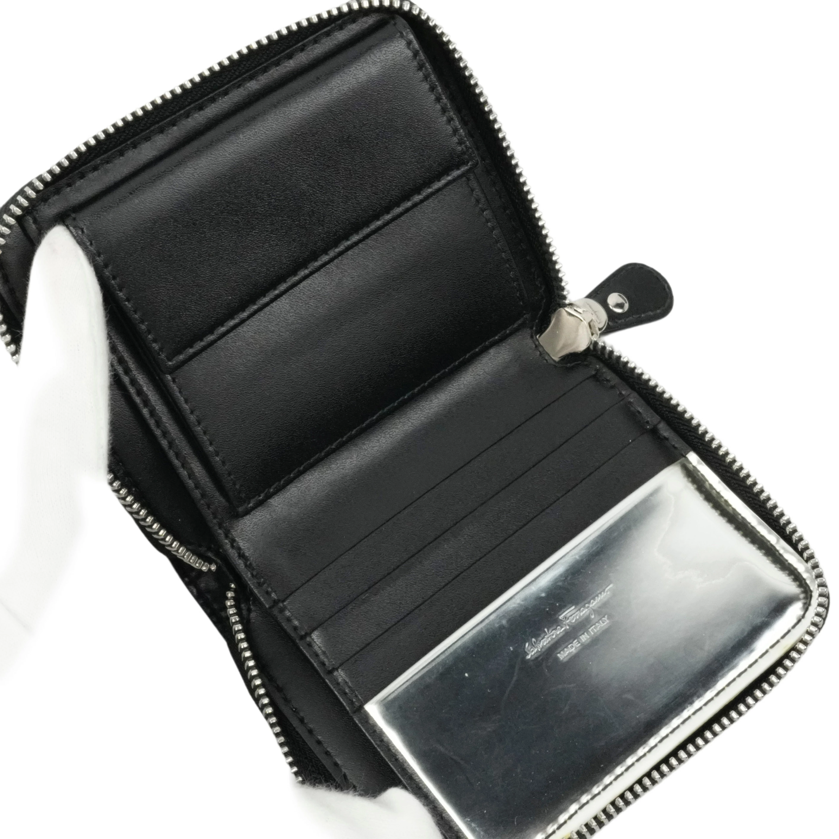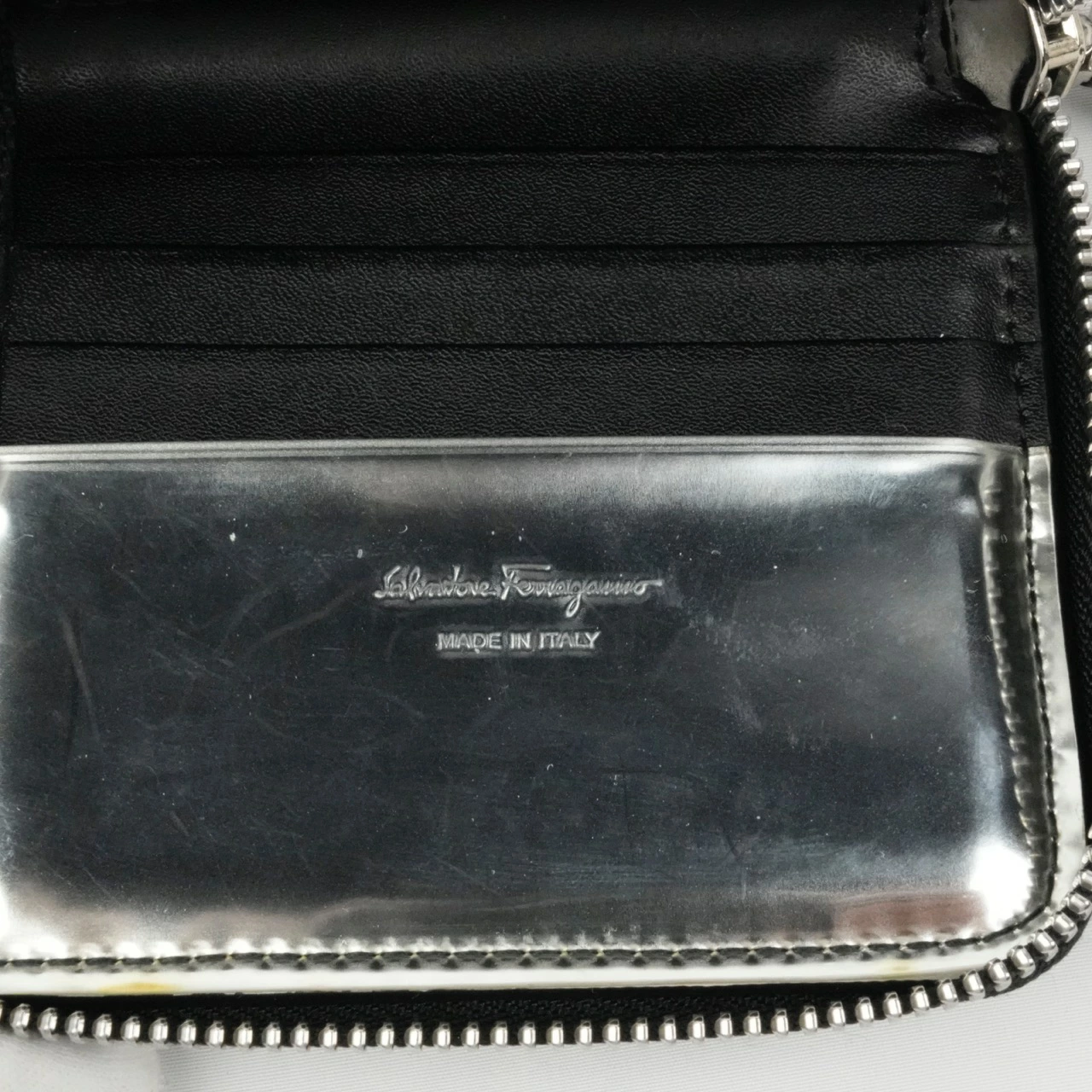 【中古・VINTAGE】 SALVATORE FERRAGAMO サルヴァトーレフェラガモ ガンチーニ 財布 ブラック シルバー レザー ヴィンテージ Gancini Wallet