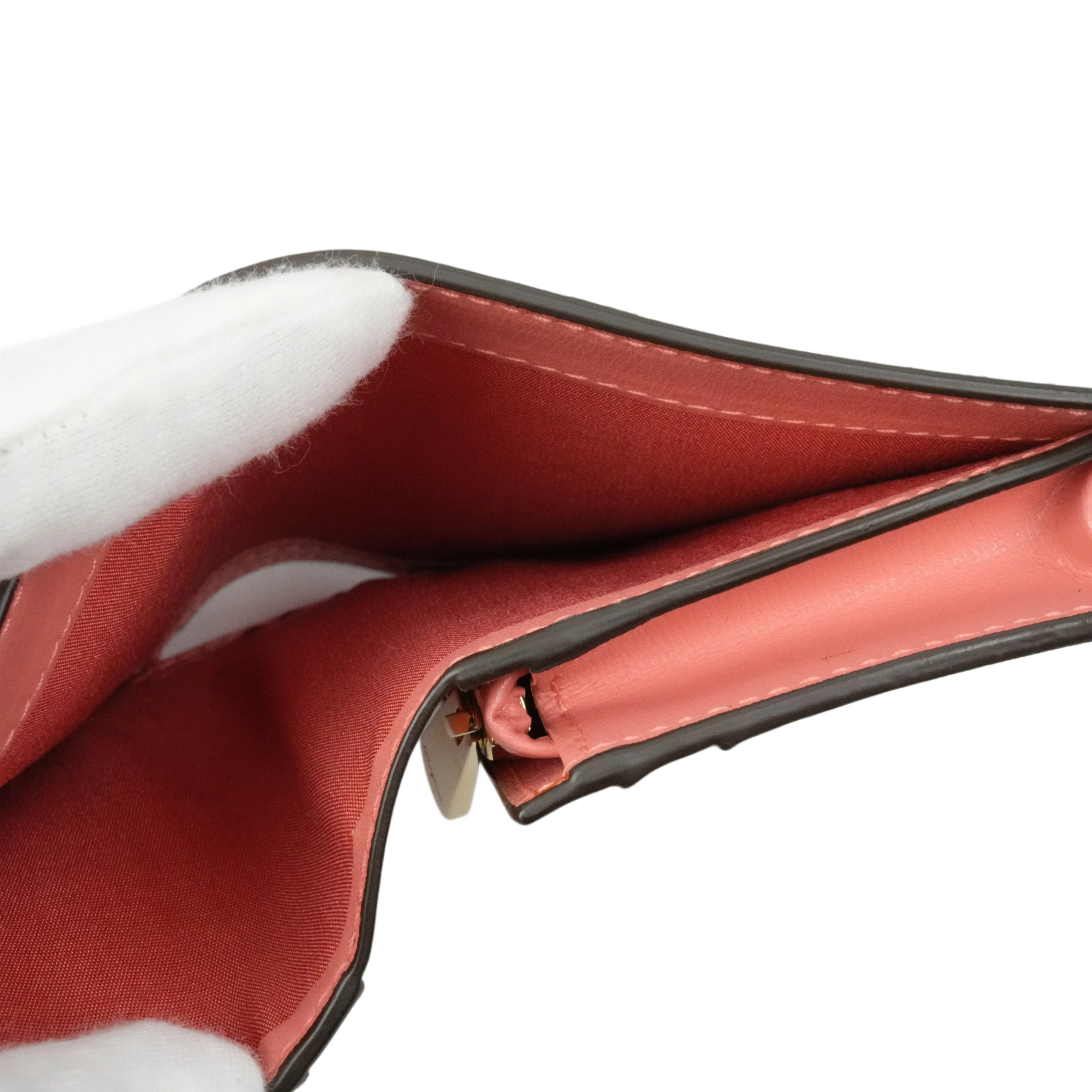 Pre-owned Vintage Salvatore Ferragamo Gancini Wallet in Dark Gray and Coral Pink Leather.