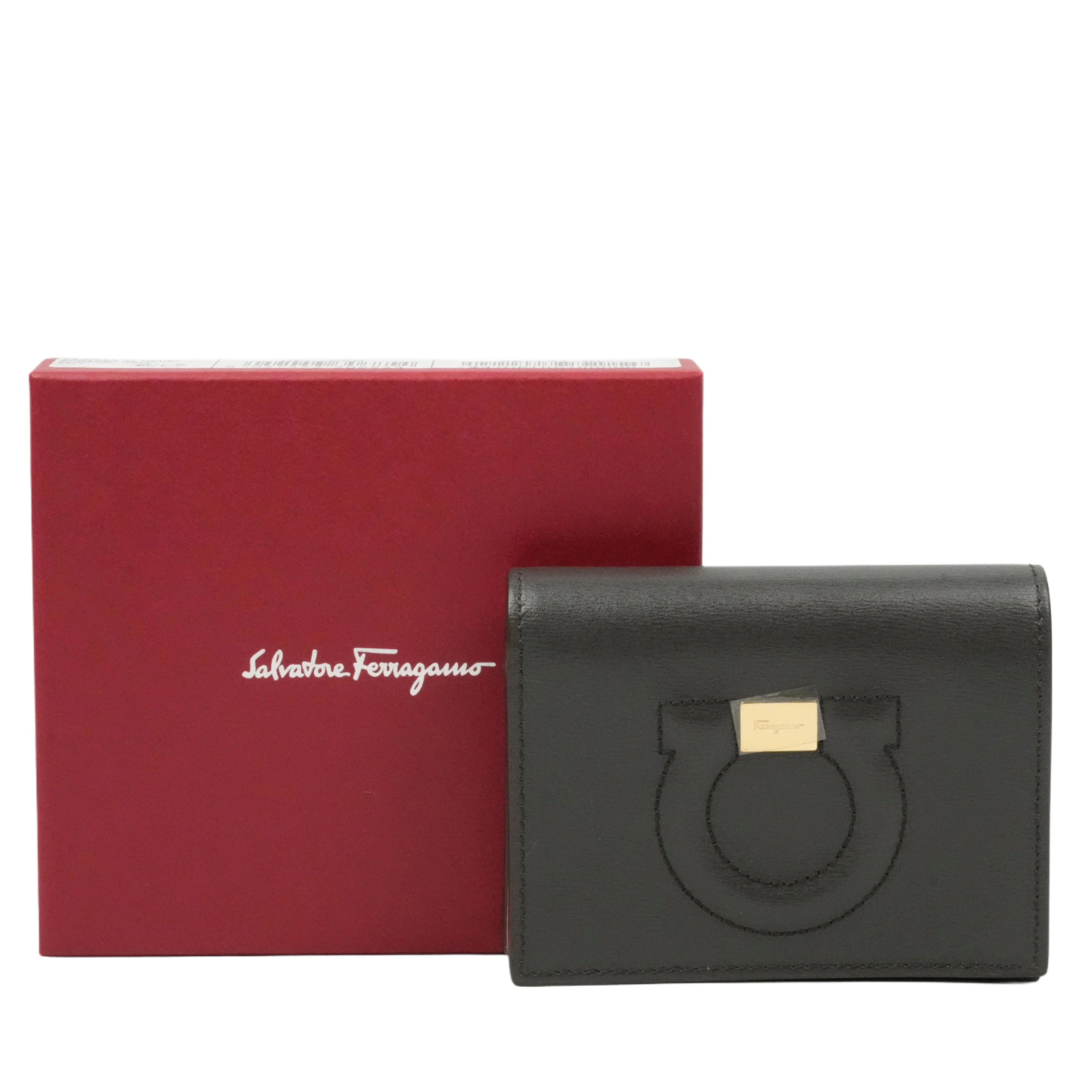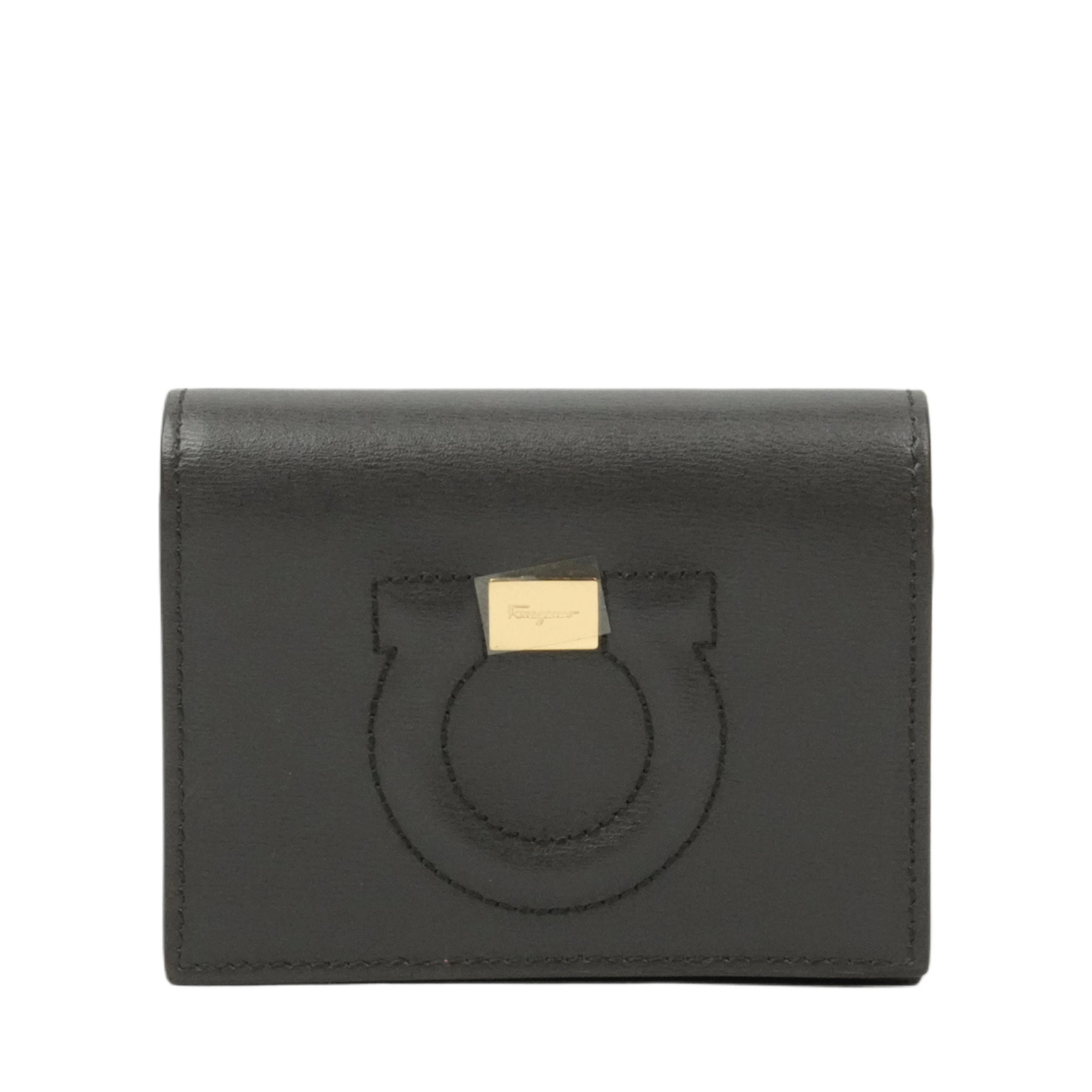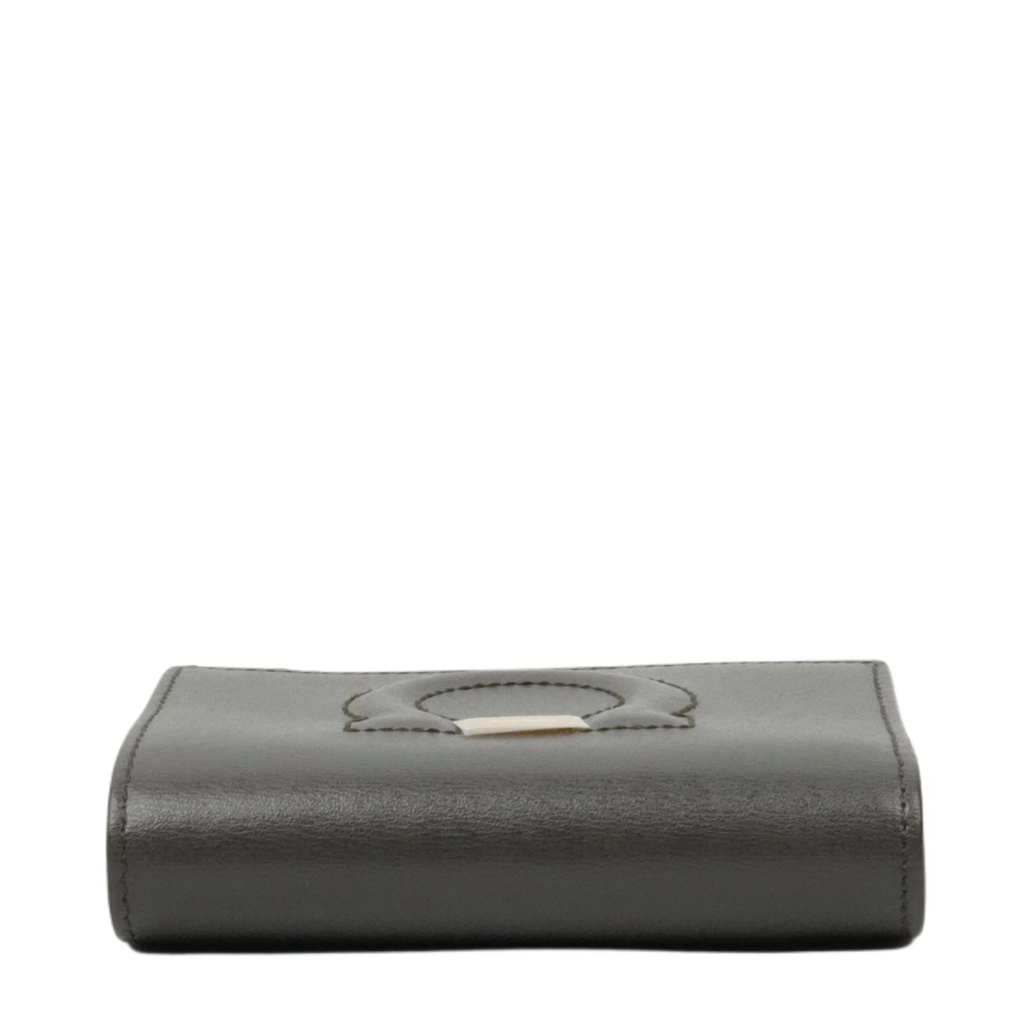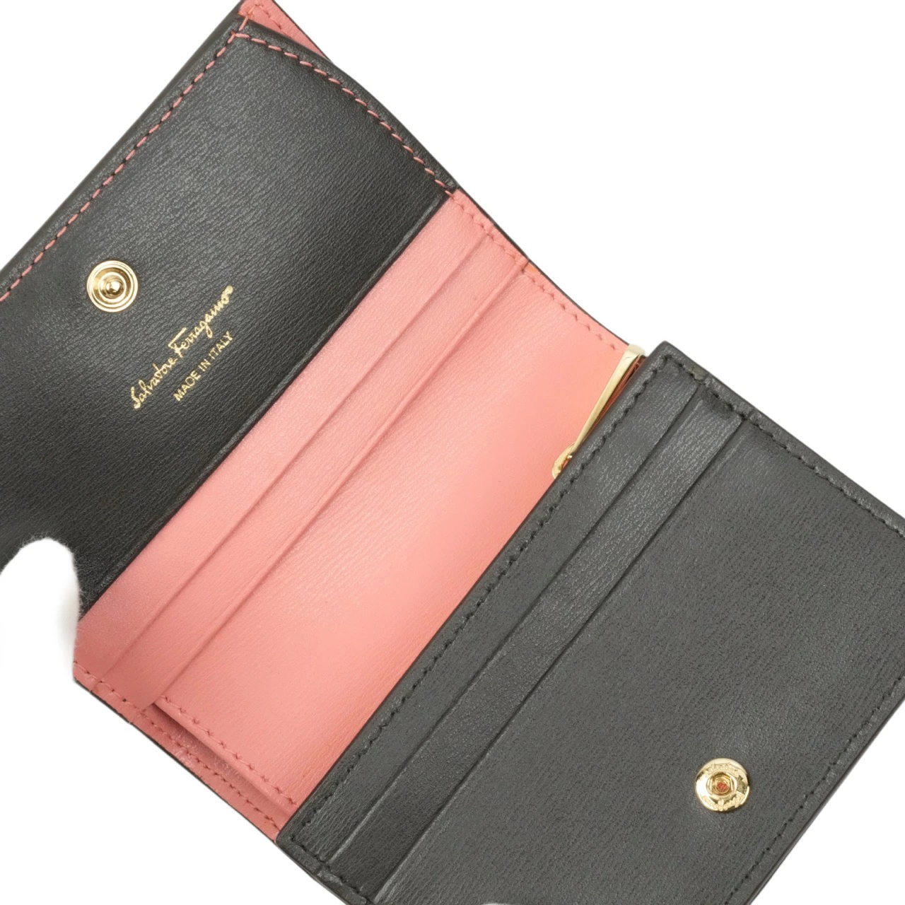【中古・VINTAGE】 SALVATORE FERRAGAMO サルヴァトーレフェラガモ ガンチーニ 財布 ダークグレー コーラルピンク レザー ヴィンテージ Gancini Wallet