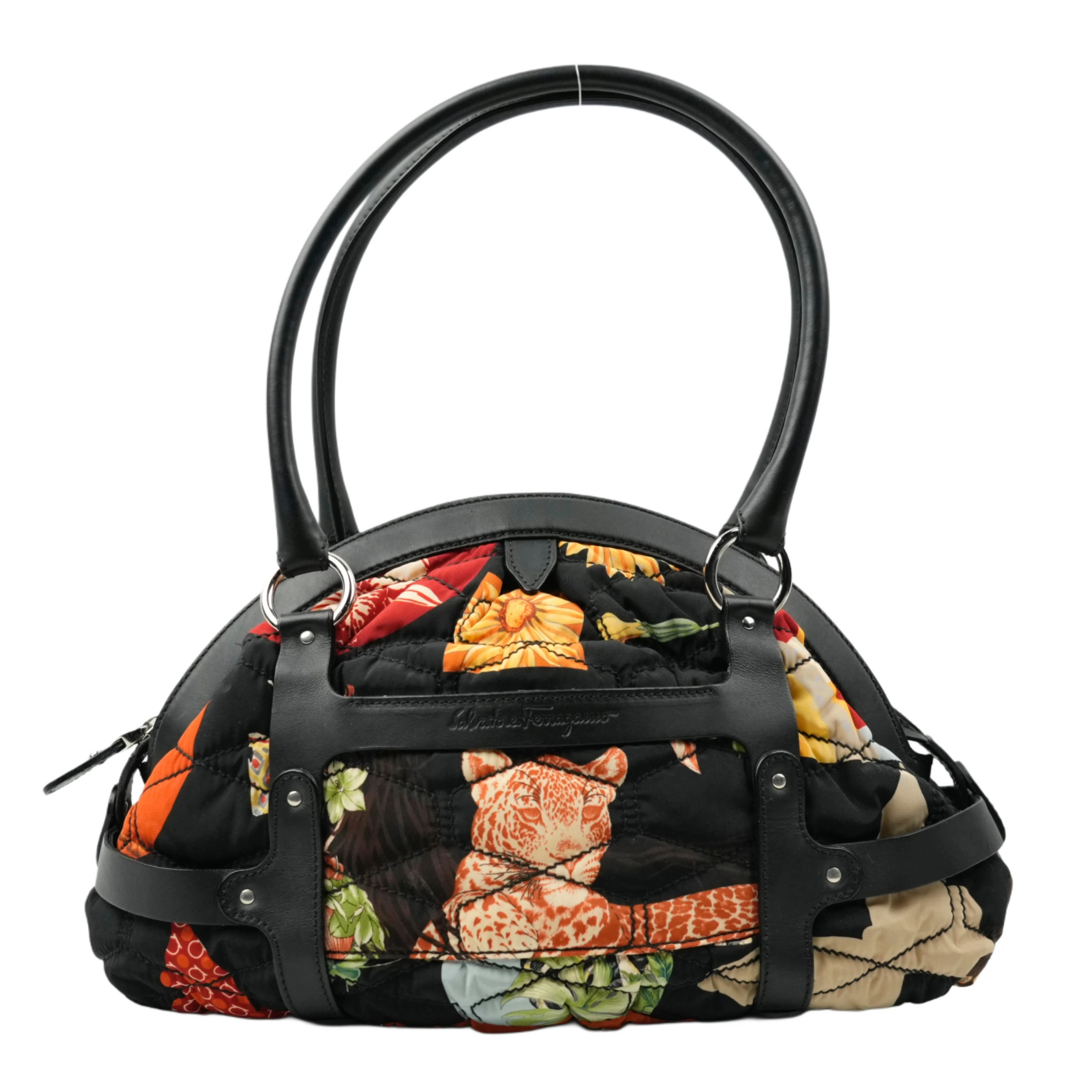 【中古・VINTAGE】 SALVATORE FERRAGAMO サルヴァトーレ フェラガモ ナイロン ショルダーバッグ ブラック マルチカラー ナイロン レザー ヴィンテージ Nylon Shoulder Bag