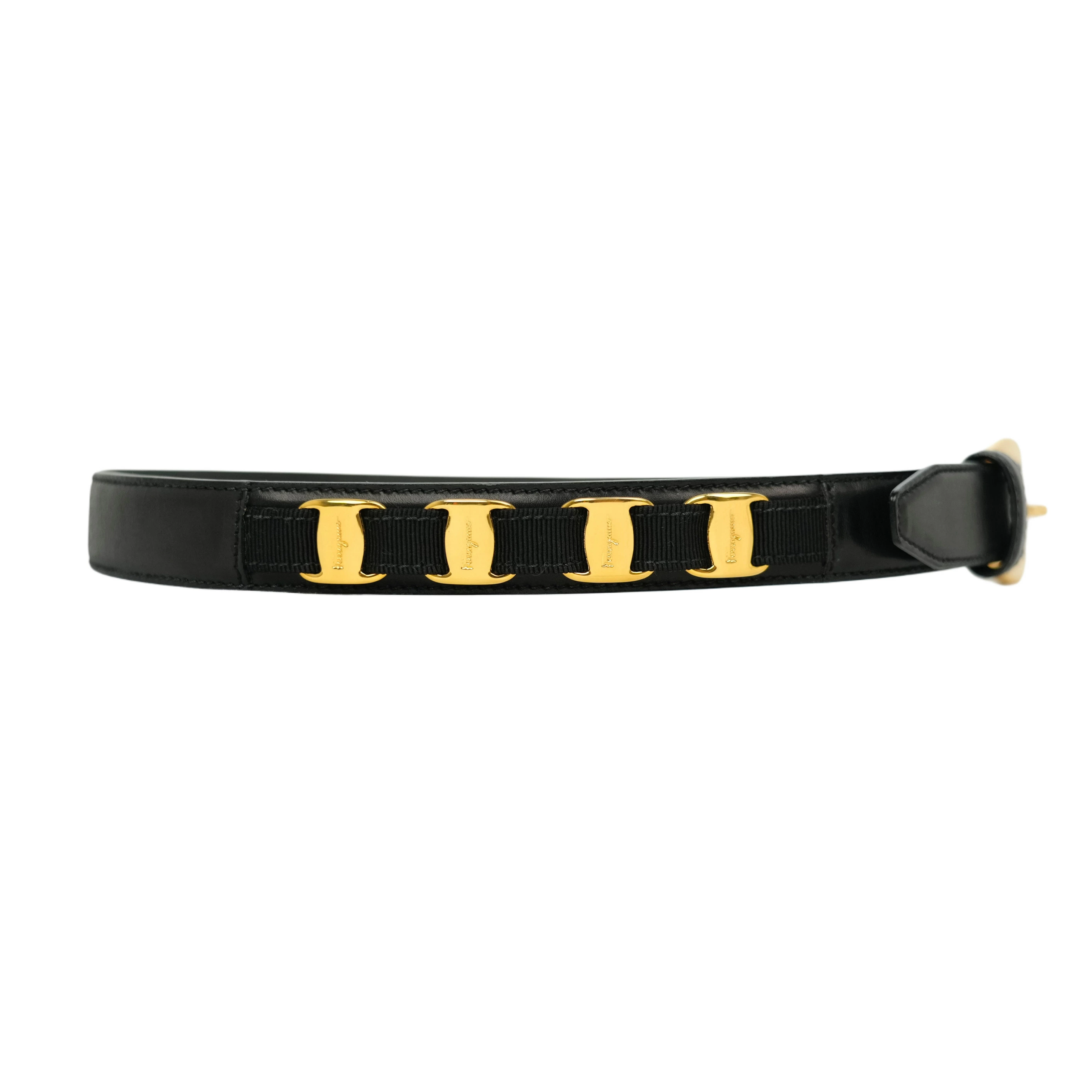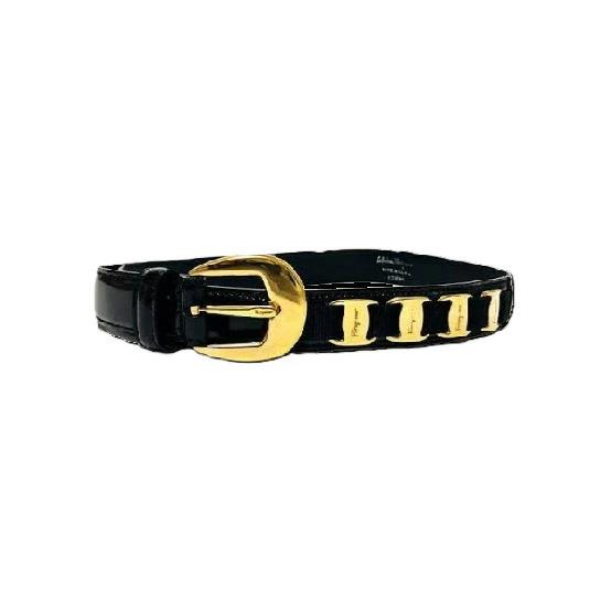 【中古・VINTAGE】 SALVATORE FERRAGAMO サルヴァトーレフェラガモ ヴァラ ベルト ブラック ゴールド レザー ヴィンテージ Vara Belt