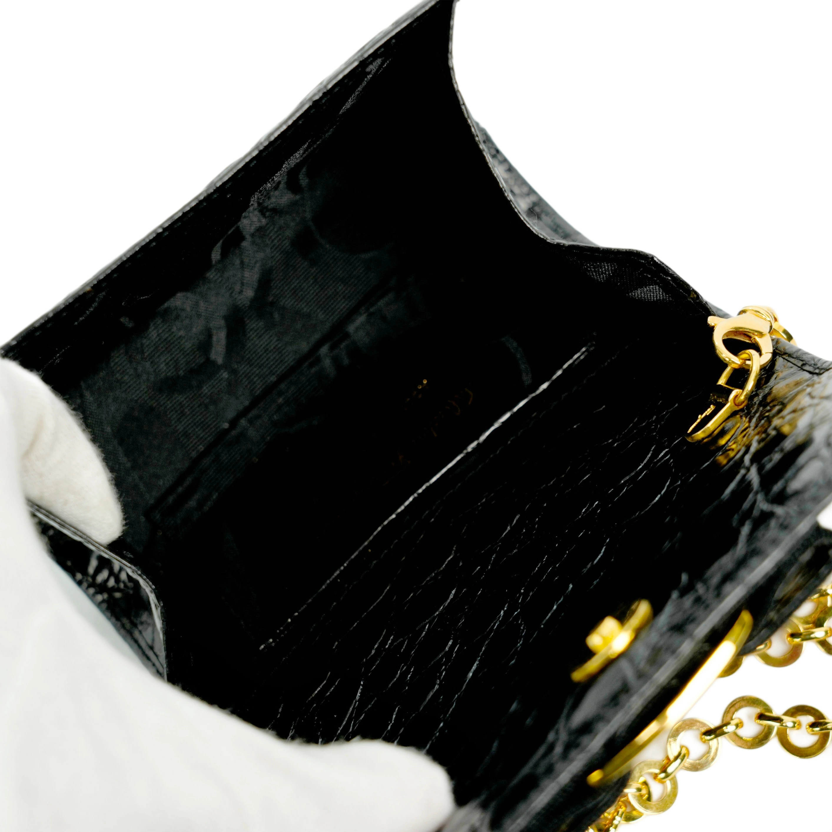 【中古・VINTAGE】 SALVATORE FERRAGAMO サルヴァトーレ フェラガモヴァラ ミニ チェーンクラッチバッグ/ショルダーバッグ 2WAY ブラック ゴールド レザー ヴィンテージ Vara Mini Chain Belt Bag/Shoulder Bag 2-Way