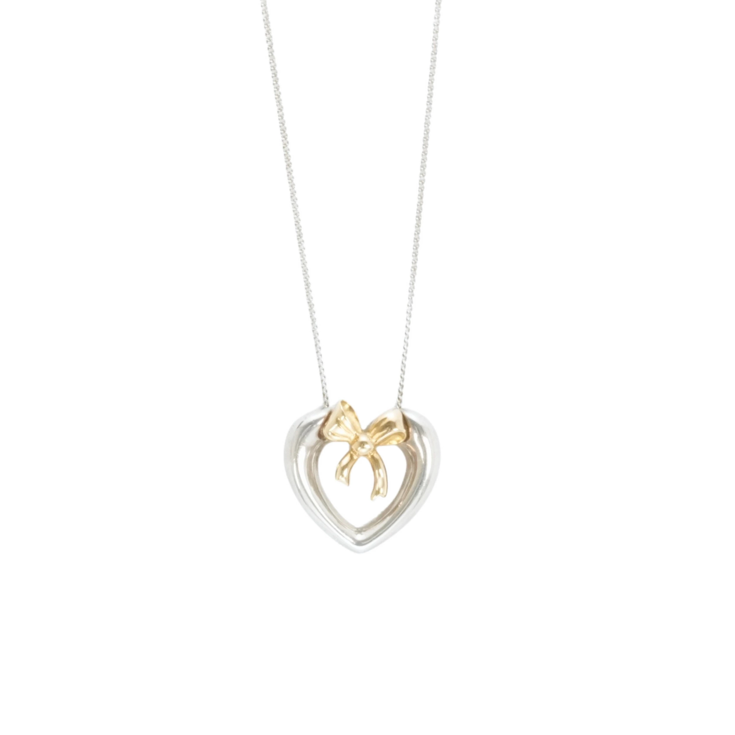 【中古・VINTAGE】ティファニー ハート リボン ネックレス SV925 K18YG シルバー ゴールド ヴィンテージ TIFFANY & CO. SV925 K18YG Heart Ribbon Necklace