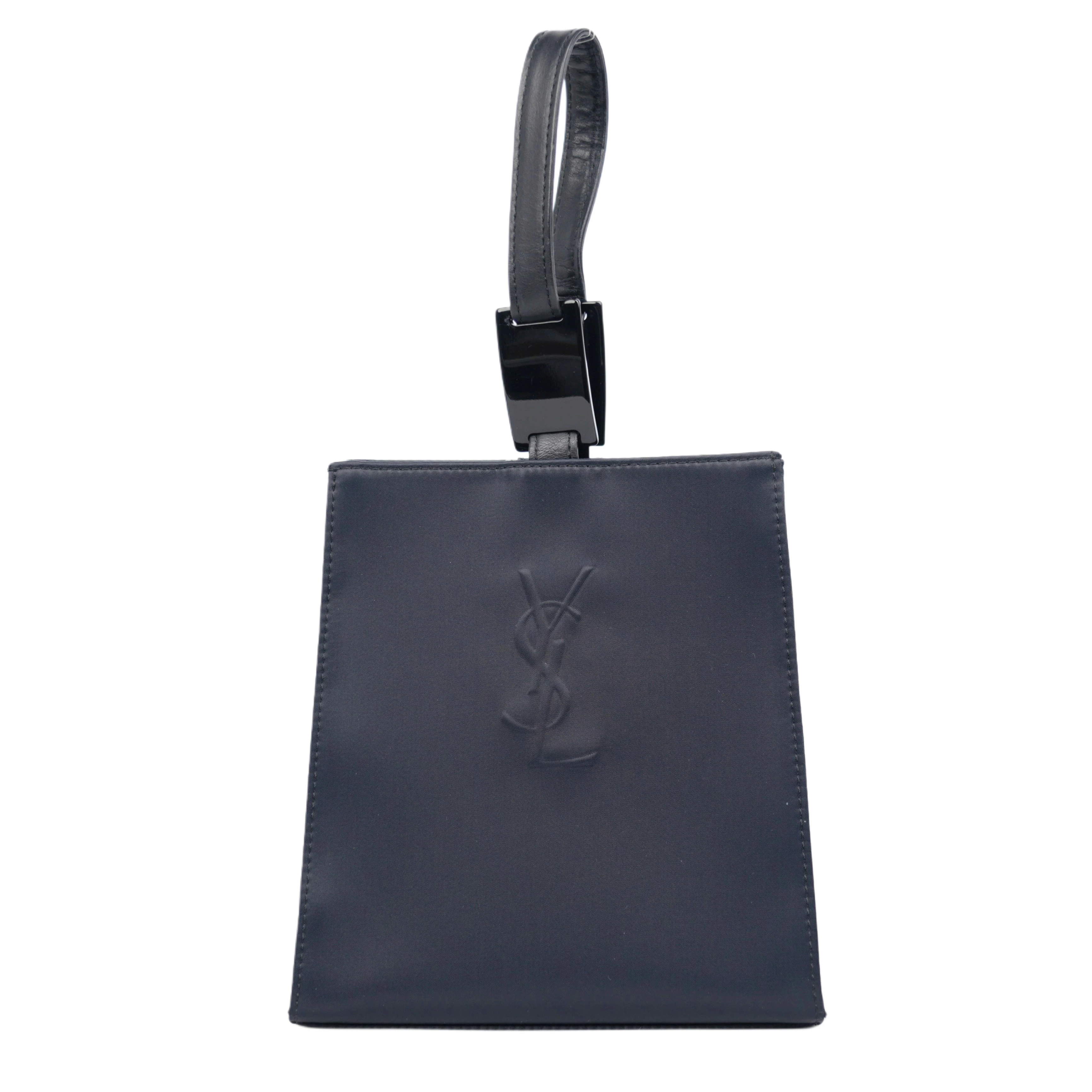 【中古・VINTAGE】 YVES SAINT LAURENT イヴサンローラン ハンドバッグ ネイビー ナイロン レザー ヴィンテージ Handbag