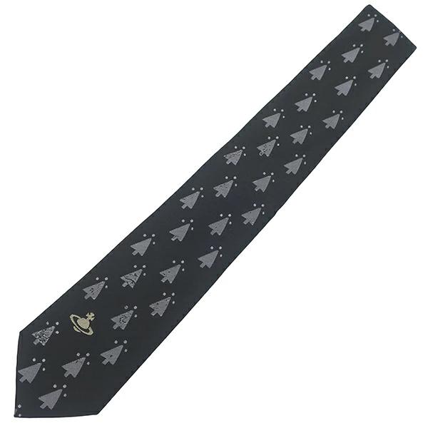 ヴィヴィアンウエストウッド Vivienne Westwood ネクタイ ツリー柄 7cm シルク ブラック×グレー 黒 オーブ - メンズ定番 人気 美品 【中古】