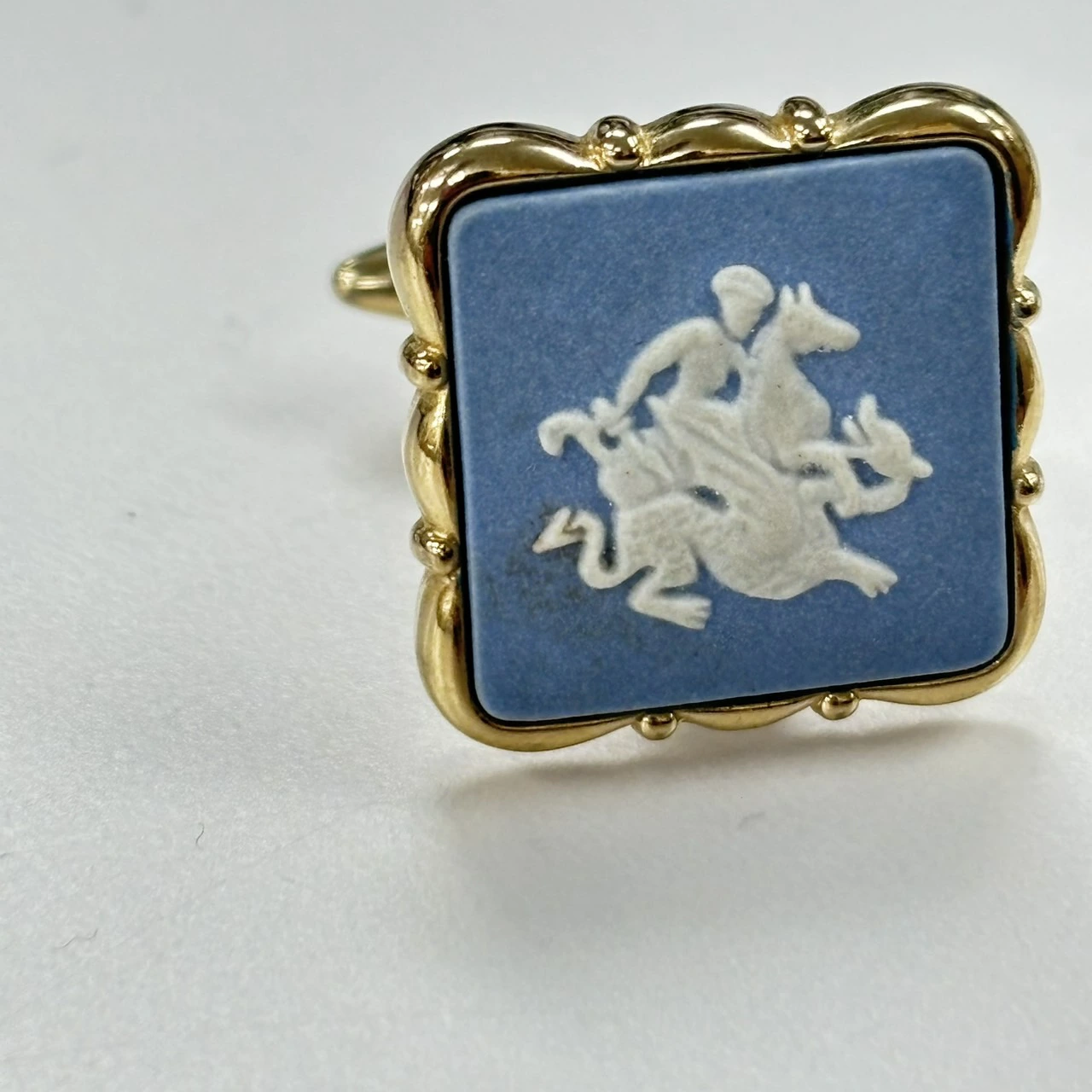 Pre-owned Wedgwood Cufflinks, Metal Gold, Gold Plated, Horseback Riding, Men's Accessories, Wedgwood