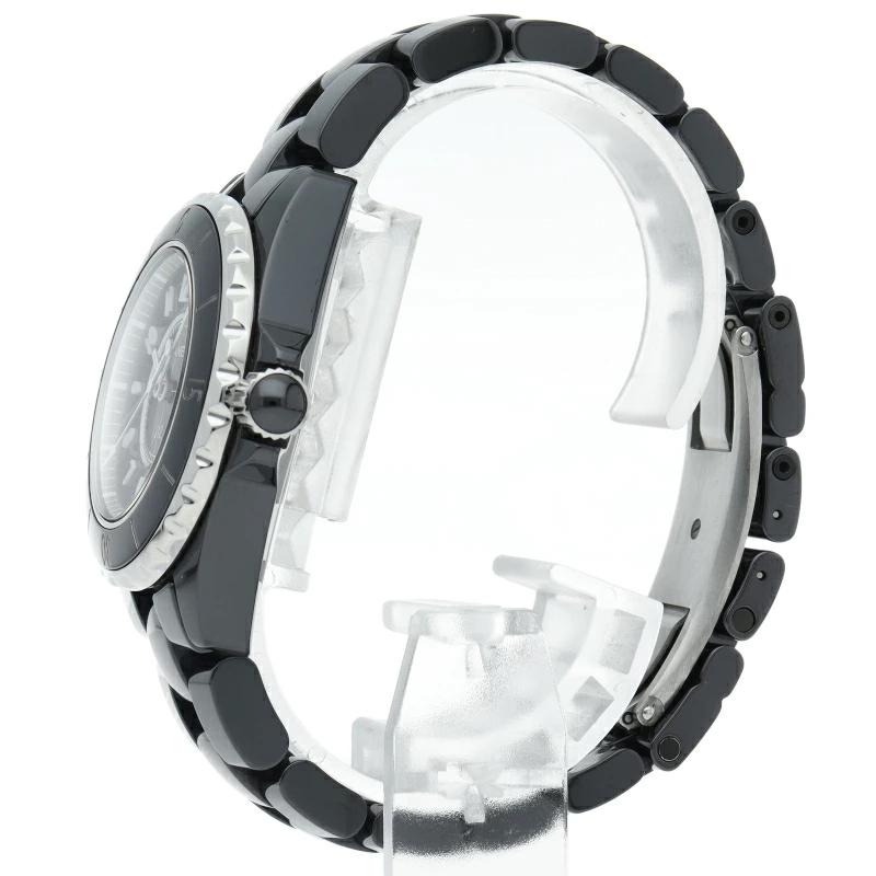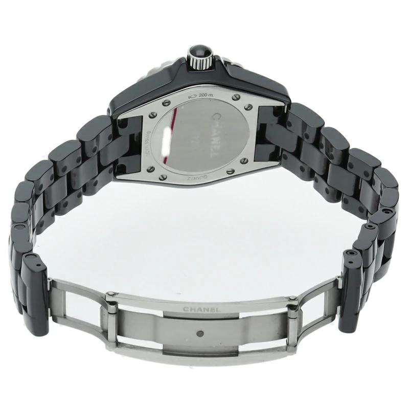 | シャネルの人気フラッグシップウォッチで「J12」。異素材で傷がつきにくく独特な光沢感をもつセラミックとラバーをうまくデザインに融合させた1本。 |