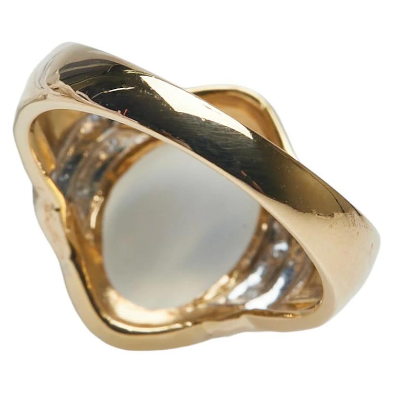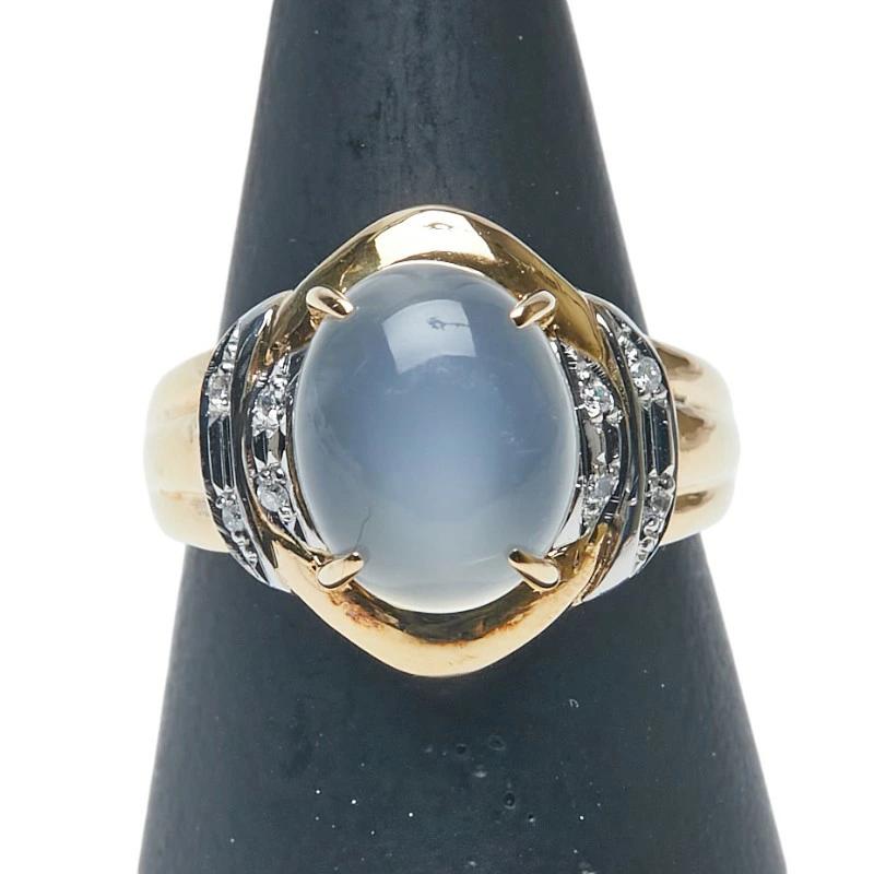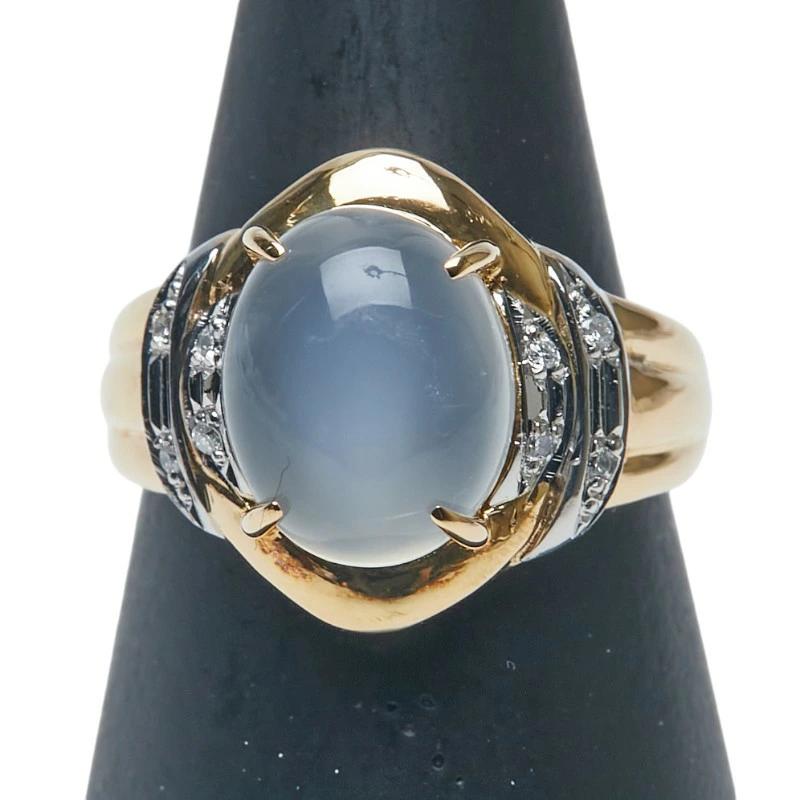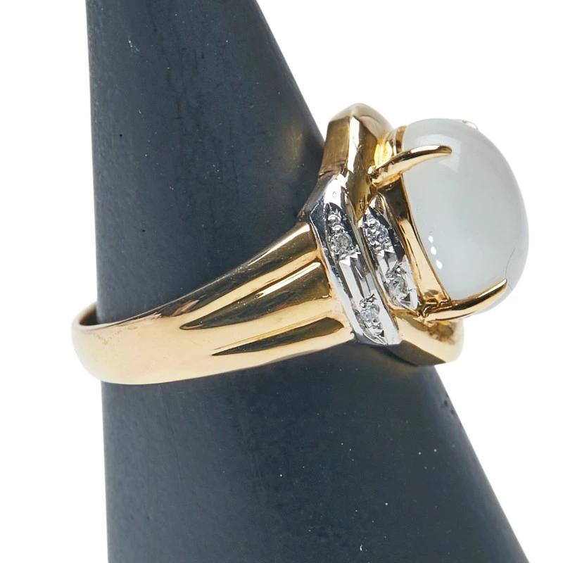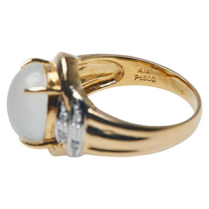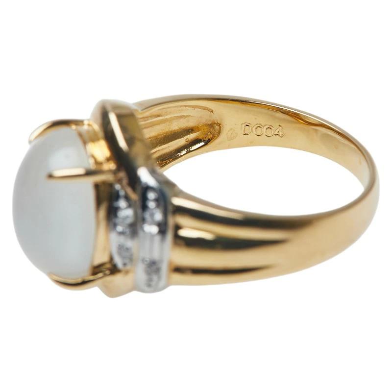 Pre-owned women's ring in 18K yellow gold (Pt900) platinum, featuring a combination moonstone and 0.04ct diamonds, size 12.