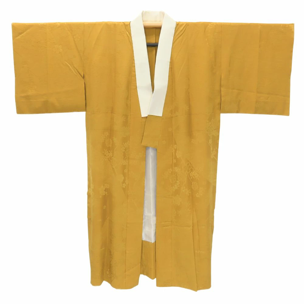 [Pre-owned] Yamato Silk Undershirt, Nagajuban, Mustard, Cherry Blossom Design, Stylish, Kimono, Women's