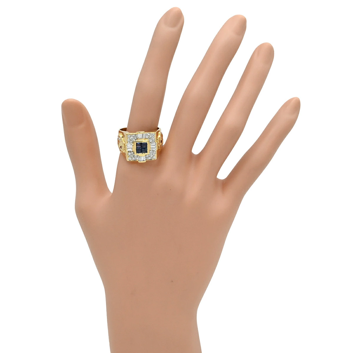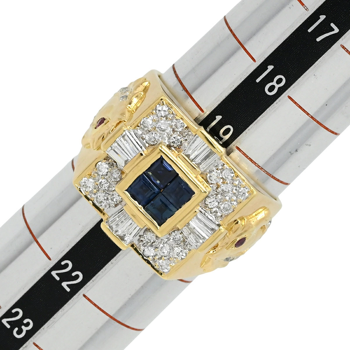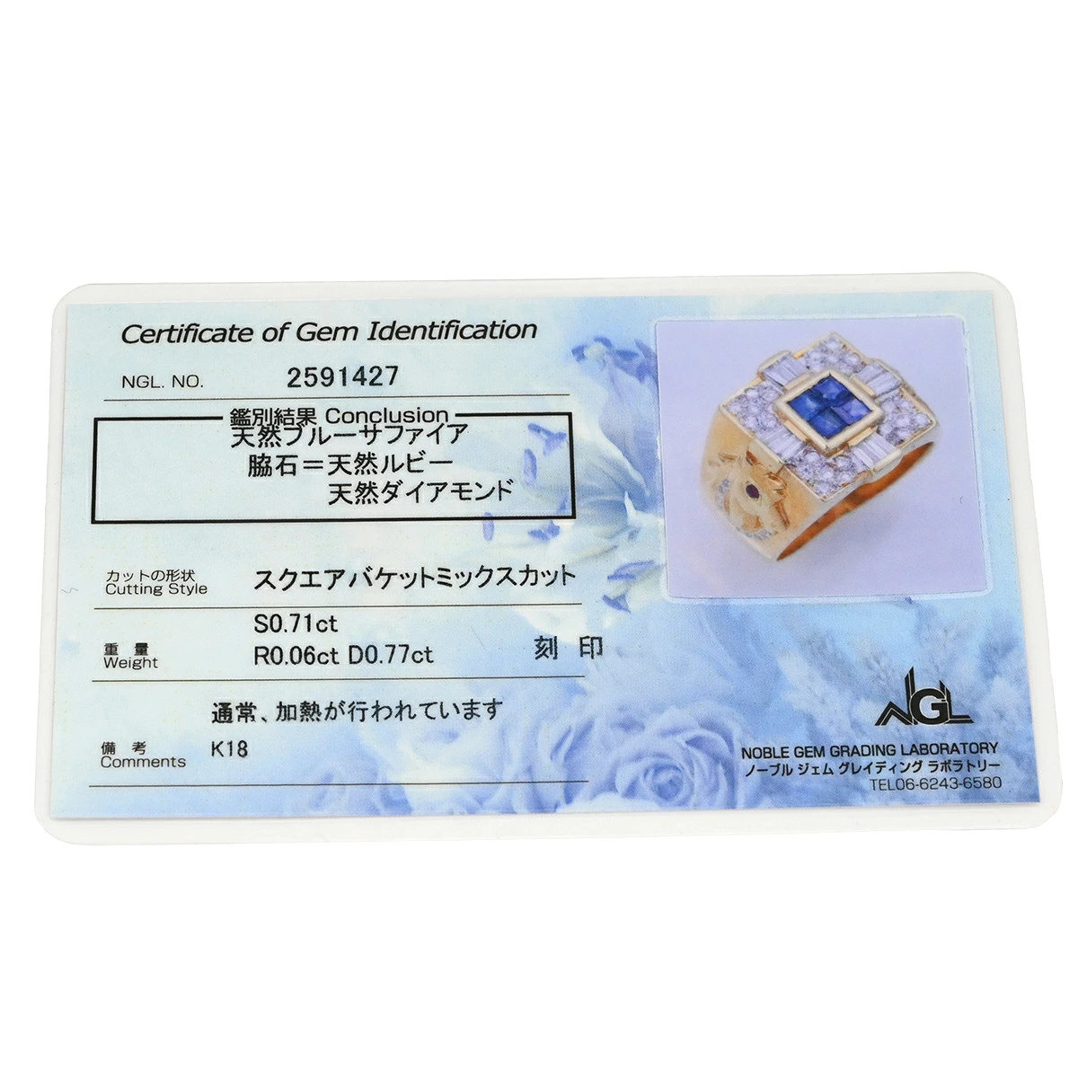 ノンブランド NON BRAND リング 指輪 ブルーサファイア ルビー ダイヤ 印台リング K18YG サファイア ルビー ダイヤモンド イエローゴールド 青 ブルー スクエア 馬 スクエアバケットミックスカット 20号 メンズ 【中古】