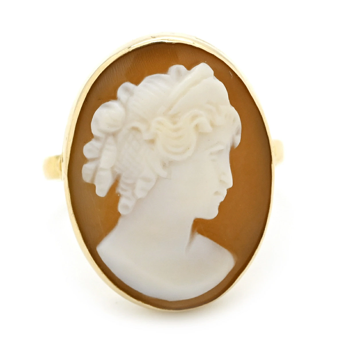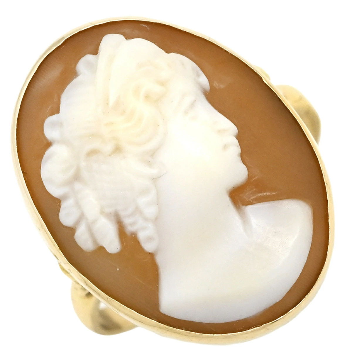 ノンブランド NON BRAND リング 指輪 カメオリング K14YG シェル イエローゴールド シェル 彫刻 585 10号 レディース定番 人気 美品 【中古】