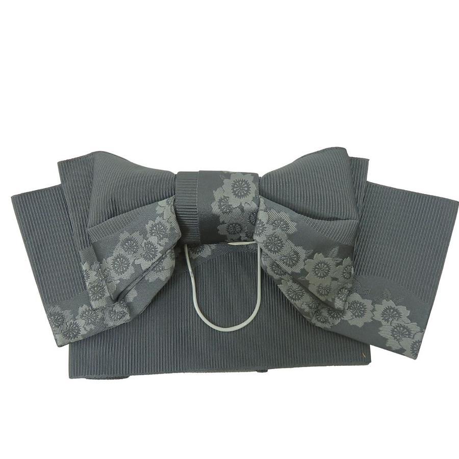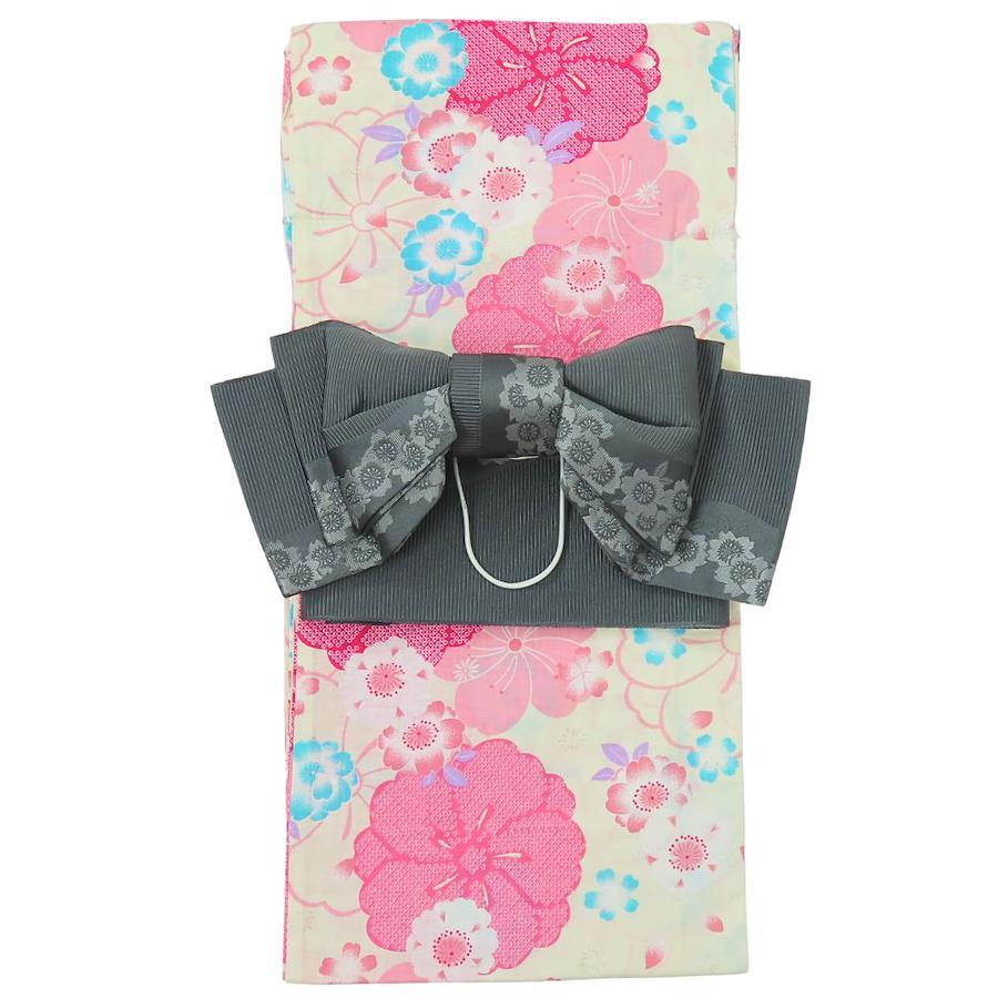 | 品名 | 【中古】 浴衣 セット 作り帯 桜柄 綿 ポリエステル クリーム系 ダークグレー マルチカラー ラメ入り リボン 大人可愛い レディース 女性 |