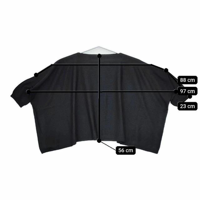 | 実寸サイズ | 肩幅:約88cm 着丈:約56cm 身幅:約97cm 袖丈:約23cm 備考 身幅はおおよその採寸 ※採寸画像がある商品はハンガーに吊るした状態での計測のため、平置きでの採寸とは差が生じる場合がございます。平置きでの実寸サイズをご希望の場合は、ご購入前に必ずご質問ください。 ※記載以外のサイズが合わないことを理由とした返品はできませんので、 記載部分以外で実寸サイズの気になる箇所があれば必ず購入前にご質問ください。 |