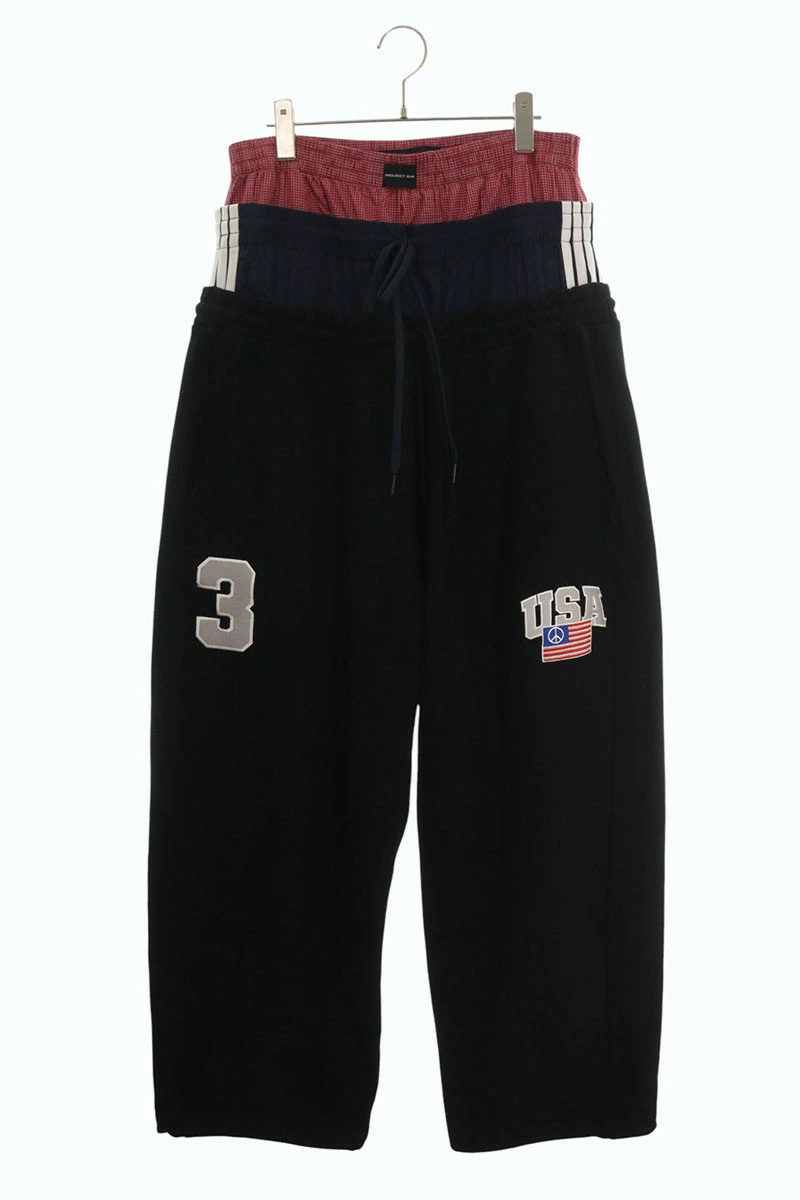 ランク:B (使用感がある商品)状態備考:裾、フロント上部、サイドライン等に汚れがあります全体的に若干の色褪せ、毛羽立ちがありますブランド:プロジェクトジーアールサイズ:2色:ブラック×ネイビー×レッド実寸:ウエスト幅39cm 股上50.5cm ワタリ幅40.5cm 股下75cm 裾幅29cm重さ:-素材:(表地) コットン (表地2) ナイロン付属品:なしその他特徴:-管理番号:10829-251113-0010
