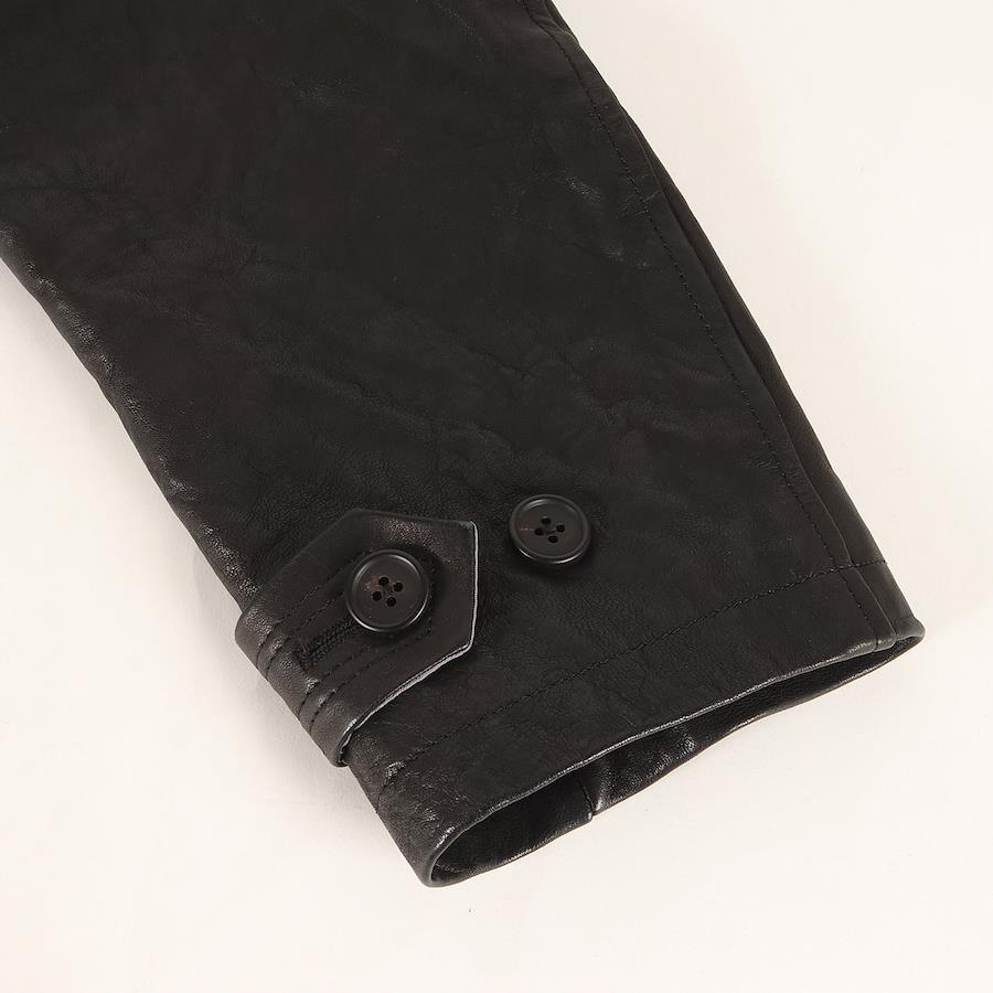| 商品説明 | ・ラムレザー素材 ・ダブルブレスト ・フロント6つボタン ・センターベント仕様 |
