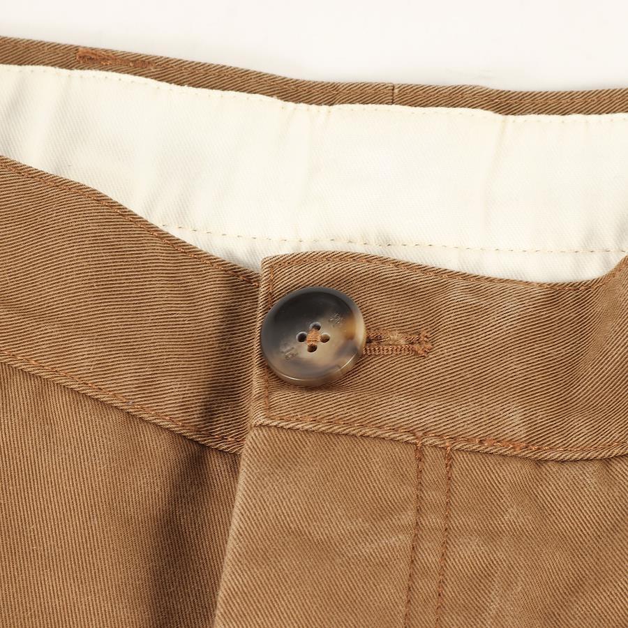 | 商品説明 | コットン/ナイロン混紡のタフなツイル生地を使用したボタンフライペインターパンツです。ワイドなテーパードシルエットで仕上げた一本になります。 |