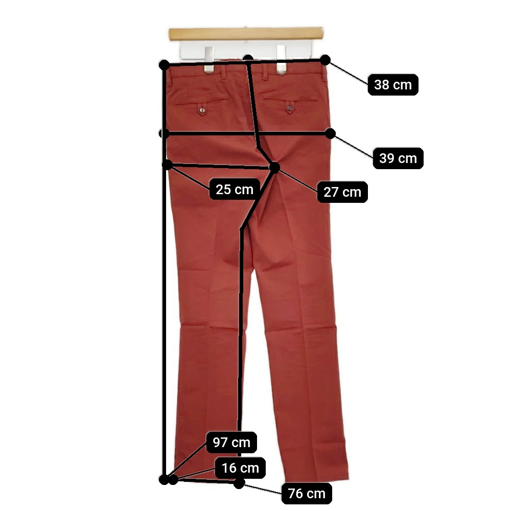 | 実寸サイズ | 総丈:約97cm ウエスト:約38cm 股上:約27cm 股下:約76cm ヒップ:約39cm ワタリ幅:約25cm 裾幅:約16cm ※採寸画像がある商品はハンガーに吊るした状態での計測のため、平置きでの採寸とは差が生じる場合がございます。平置きでの実寸サイズをご希望の場合は、ご購入前に必ずご質問ください。 ※記載以外のサイズが合わないことを理由とした返品はできませんので、 記載部分以外で実寸サイズの気になる箇所があれば必ず購入前にご質問ください。  |