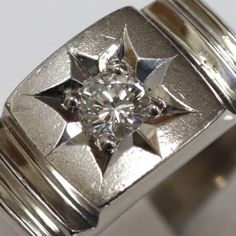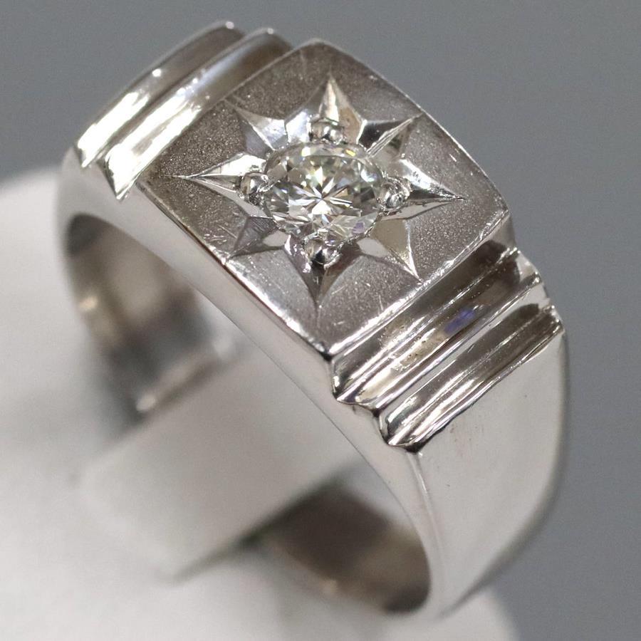 Pt900ダイヤモンドリングの中古品です。ダイヤモンドが1粒セットされた印台リングです。ダイヤモンドはインクルージョンが非常に少なく、照りよく輝きます。底部にサイズ直しの跡があります。地金には傷があります。+---+---+---+---+---+。{状態}AB{素材}Pt900,ダイヤモンド{サイズ}当店計測約#21{リング幅}約4-10mm。{その他}D0.30ct,18.5g。{付属品}なし(サービス箱をお付けします){お問合せ商品番号}25043046+---+---+---+---+---+。