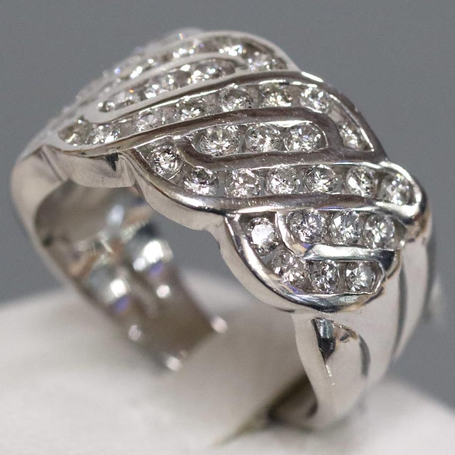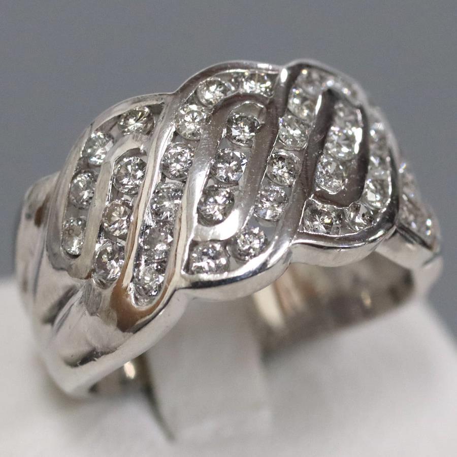 Pt900ダイヤモンドリングの中古品です。1カラットのダイヤモンドがレールセッティングで留められています。ダイヤモンドはややカーボン状のインクルージョンなどがありますが、肉眼ではわかりません。ダイヤモンドは照りよく輝きます。地金には小傷があります。+---+---+---+---+---+。{状態}AB{素材}Pt900,ダイヤモンド{サイズ}当店計測約#12.5{リング幅}約3-10mm。{その他}D1.00ct,10.8g。{付属品}なし(サービス箱をお付けします){お問合せ商品番号}9878020+---+---+---+---+---+。
